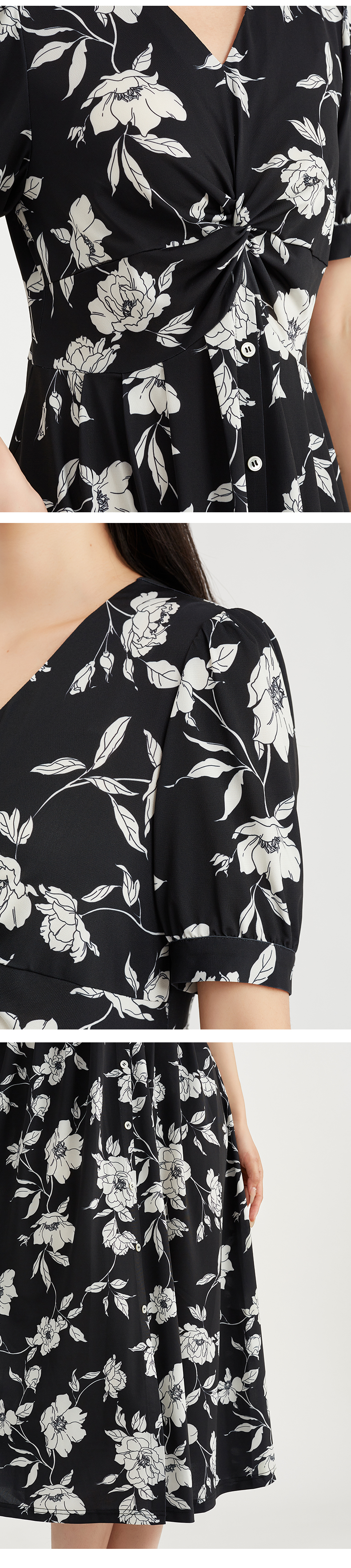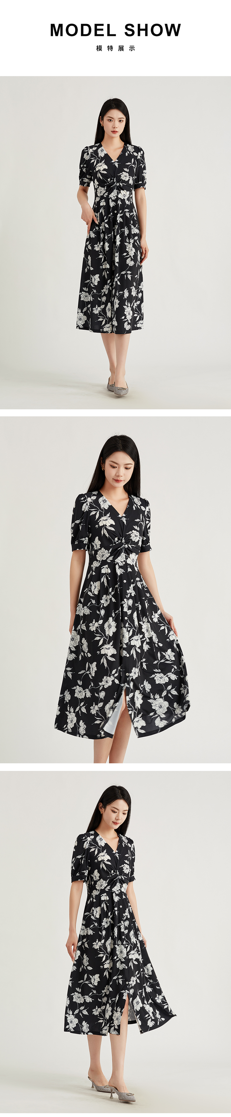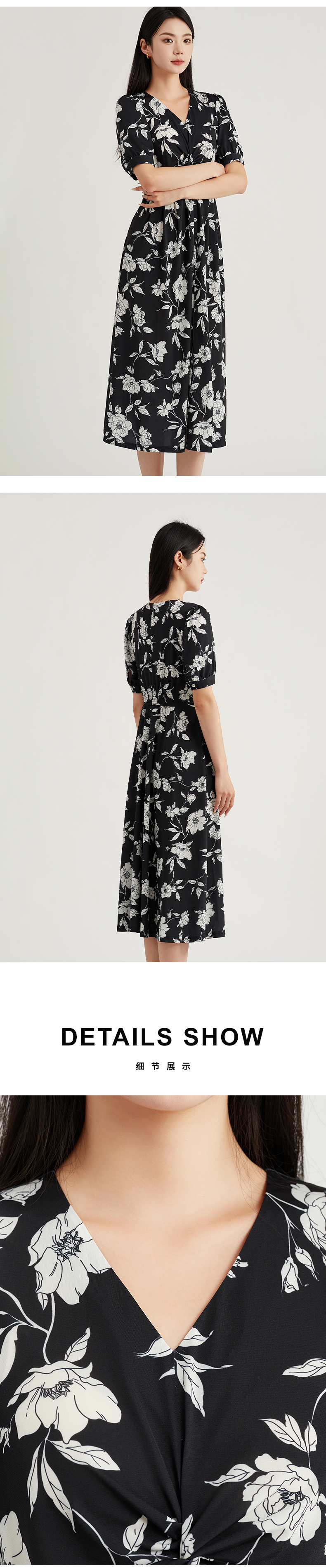 【商场同款】阿菁娜优雅黑白印花连衣裙A29C112010
