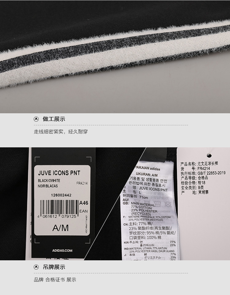 小李子:专柜正品ADIDAS阿迪达斯尤文图斯运动训练长裤FR4214