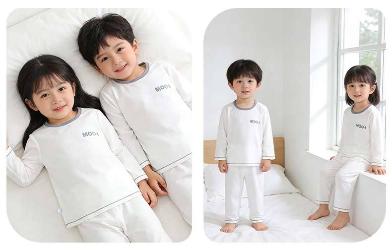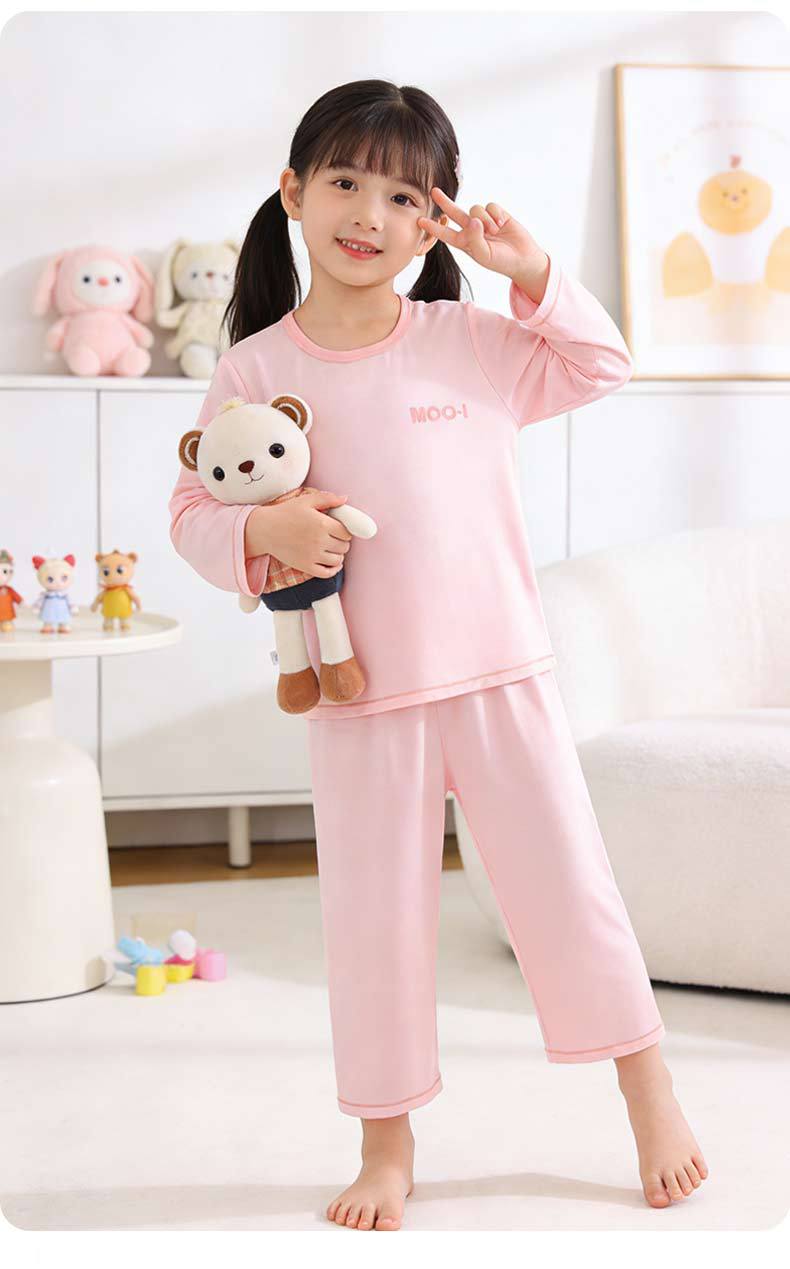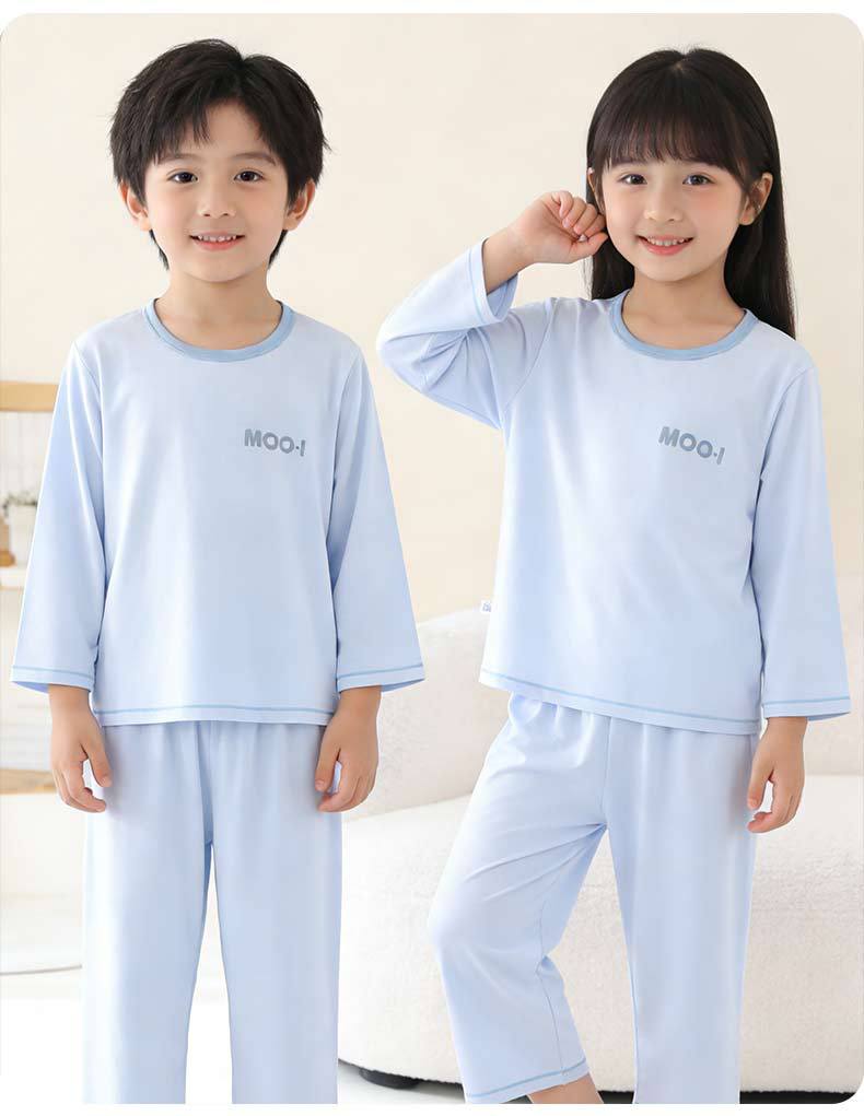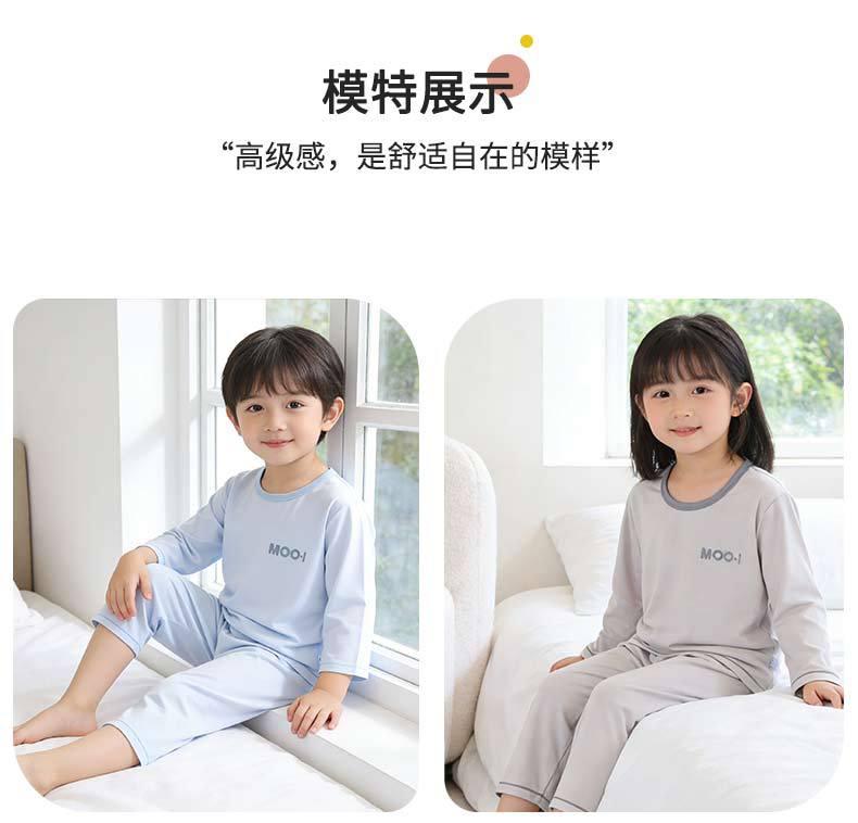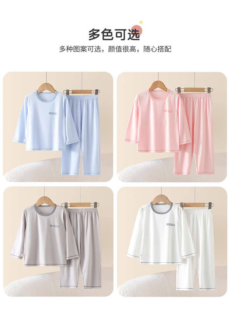【舒适弹力!透气不闷】儿童A类莱赛尔家居服套装透气凉爽九分袖睡衣男女童夏季薄款抗菌。xa