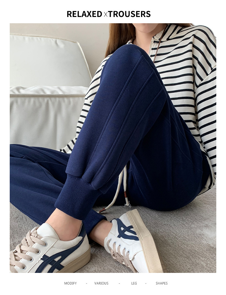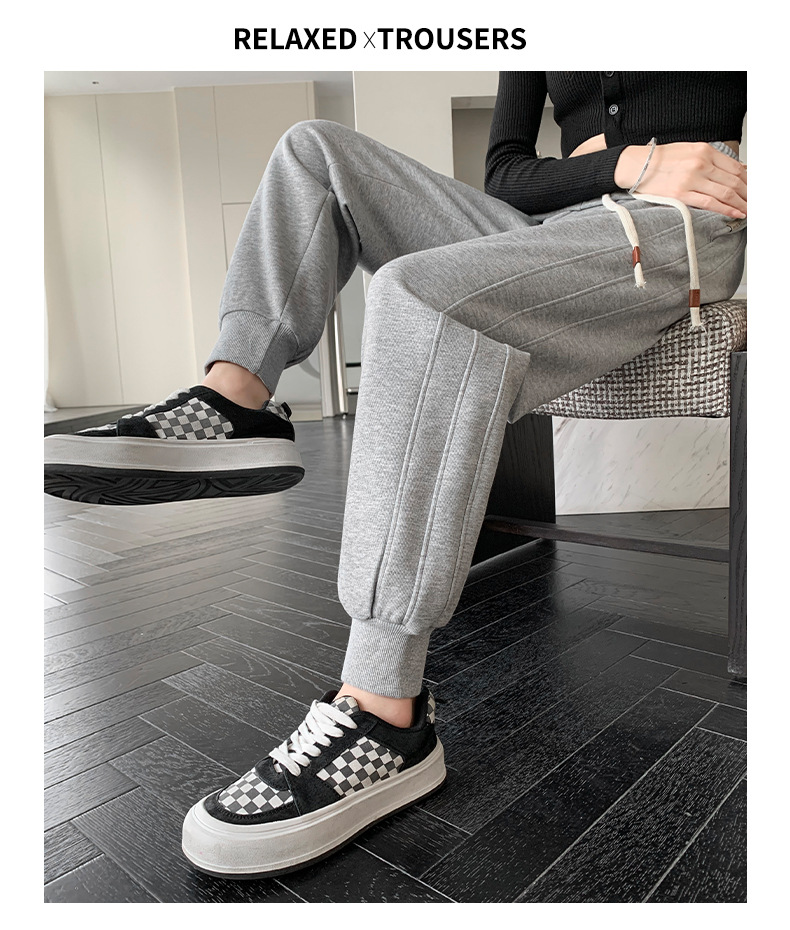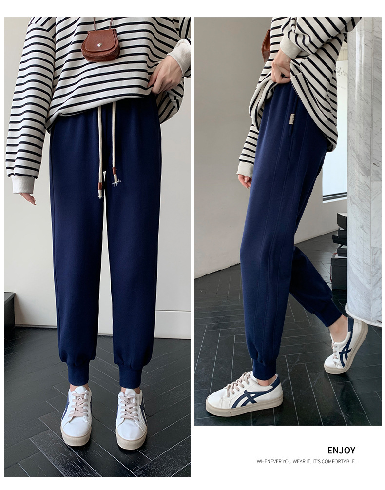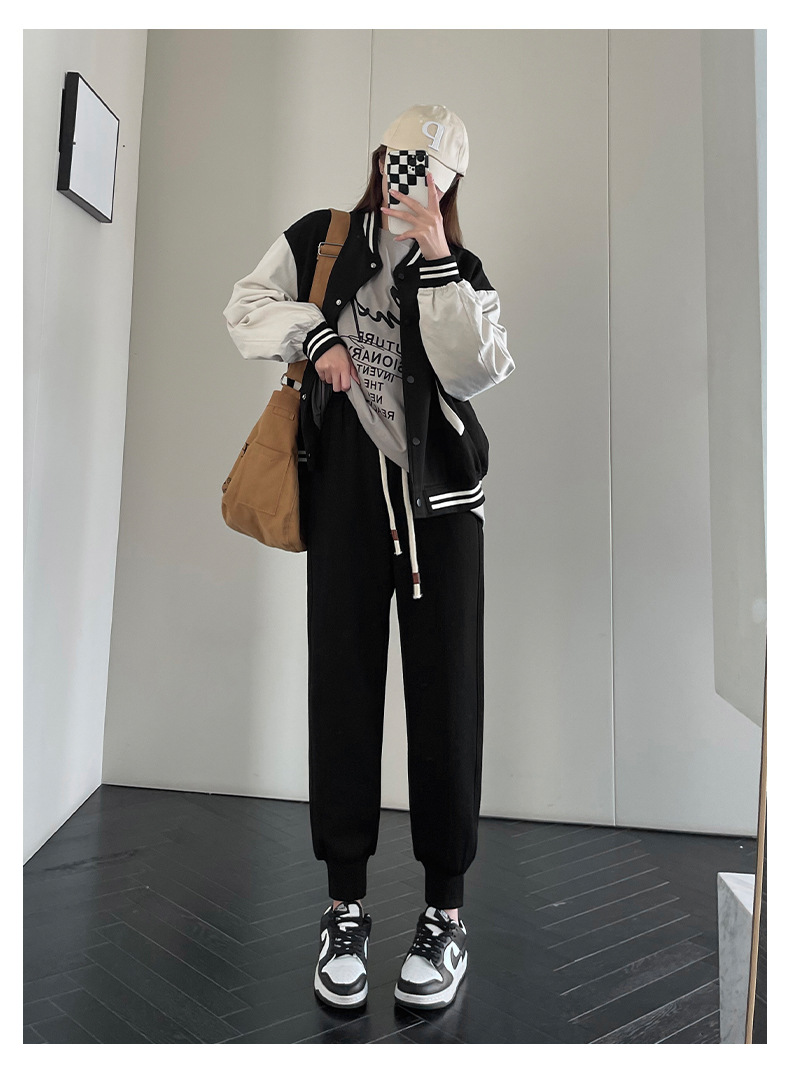 春秋拼接运动裤 高腰显瘦休闲束脚百搭卫裤