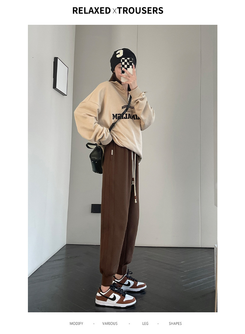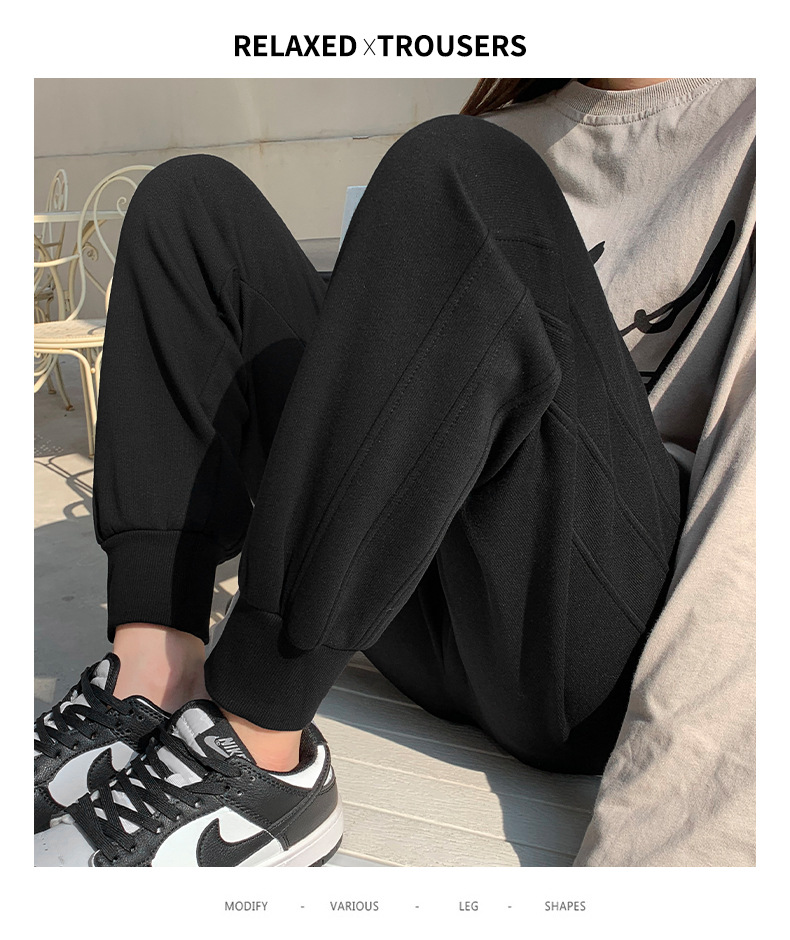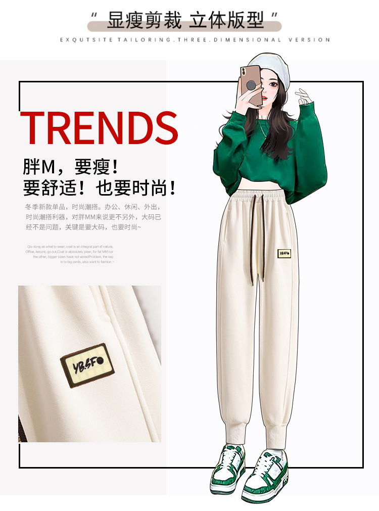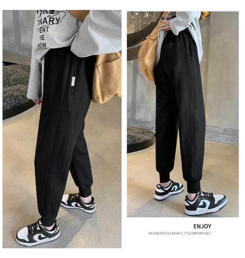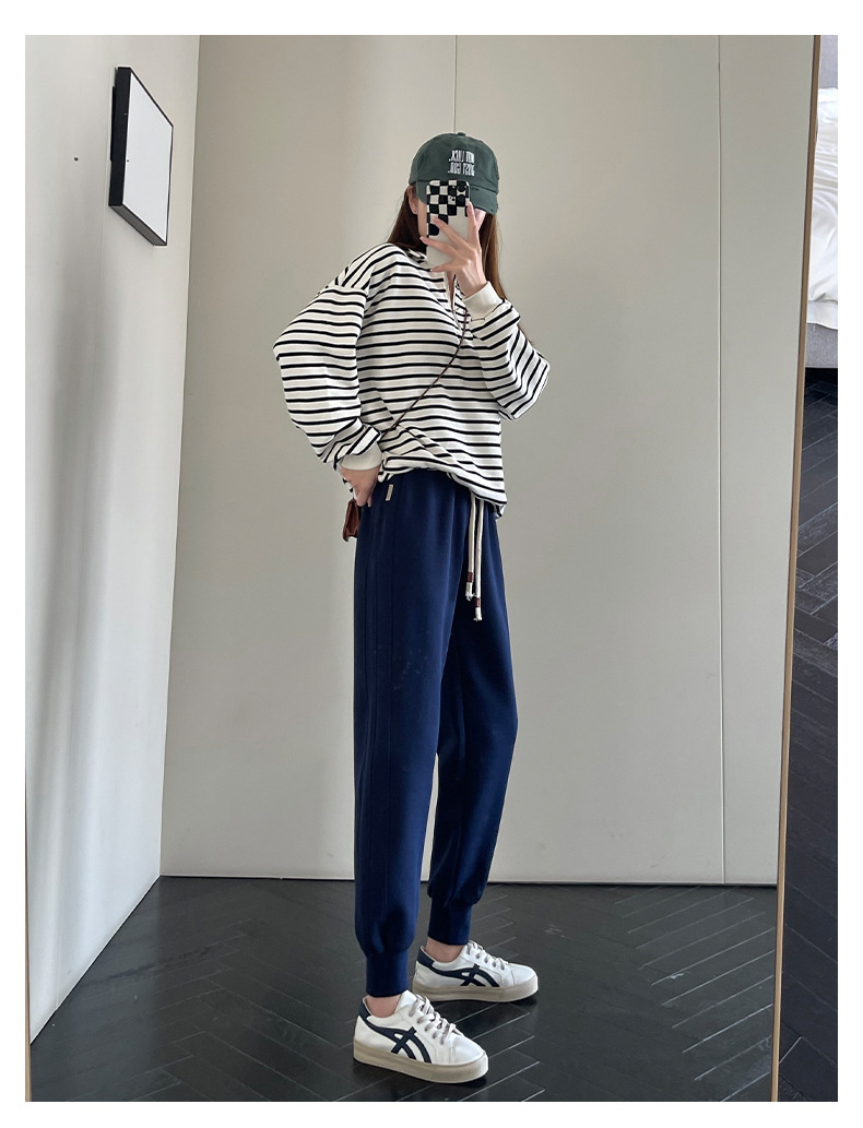 春秋拼接运动裤 高腰显瘦休闲束脚百搭卫裤