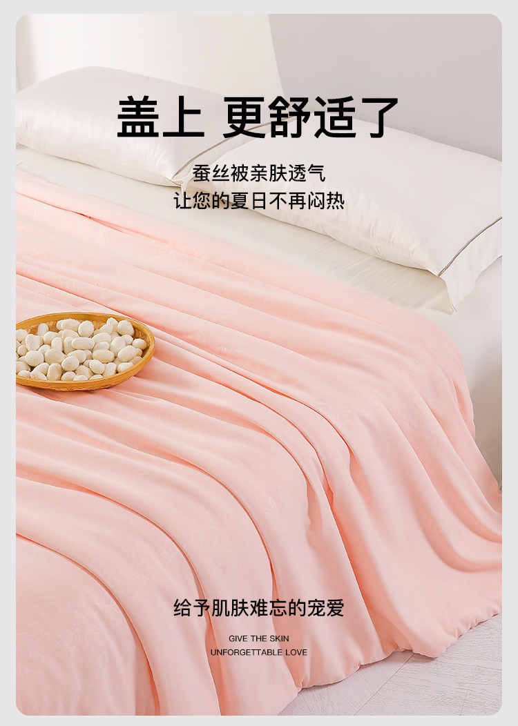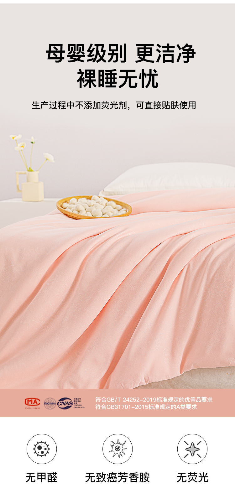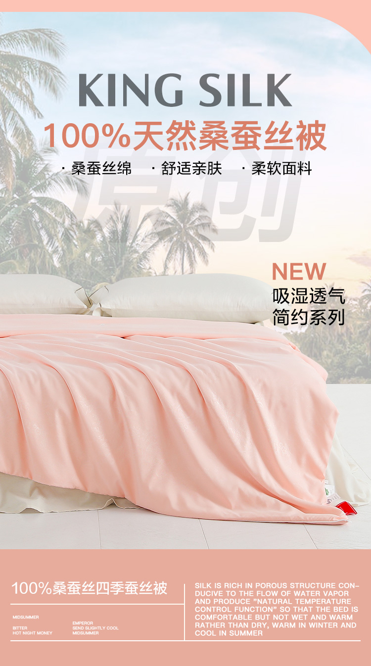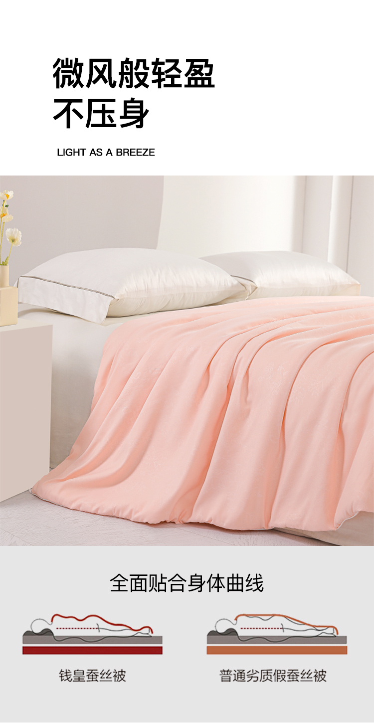 「农科5号双宫茧桑蚕丝 长丝棉」钱皇 花时白/花时粉 桑蚕丝被 冬被子母被 一床盖四季