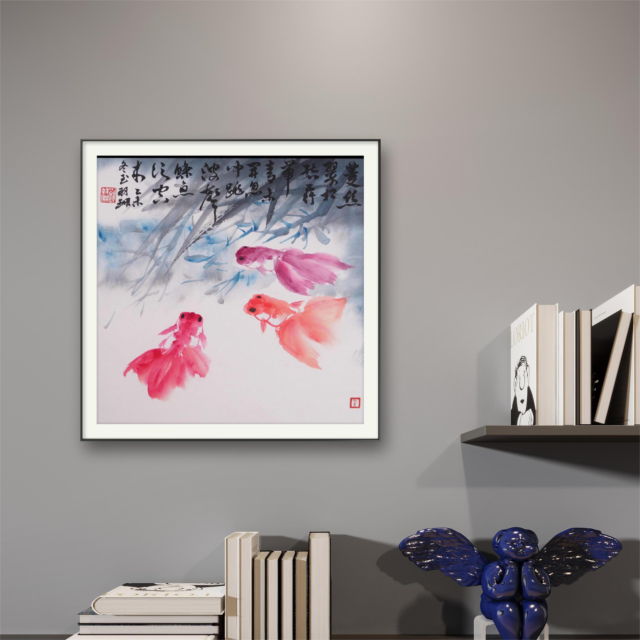 刘羽珊《菱丝游鱼图》国画花鸟 34CM*34CM 约1平尺 纸本(已托底)【原作编号GH0010】