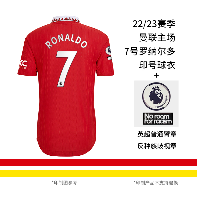 ADIDAS/阿迪达斯 MUFC H AU JSY 22-23曼联主场球员版短袖球衣H13889+7#C罗+英超普通臂章+反种族歧视章