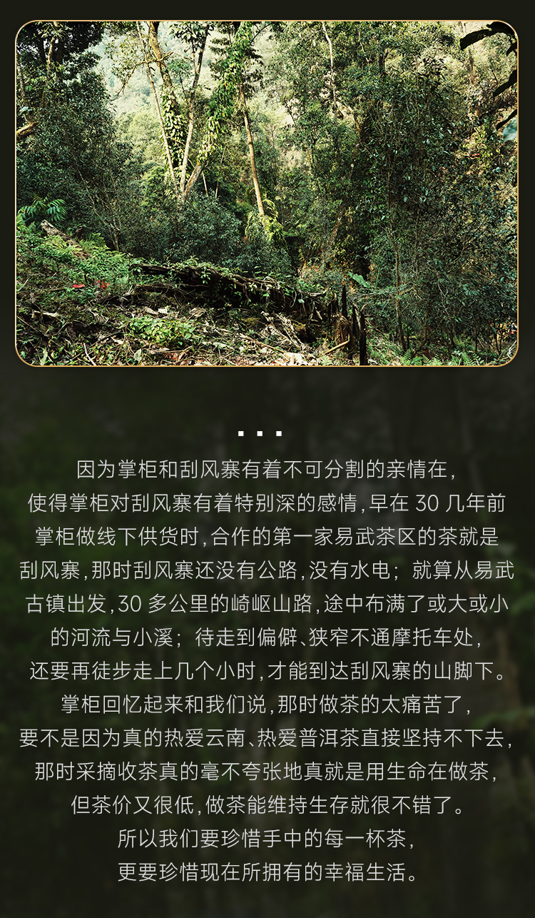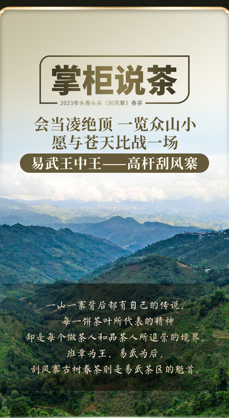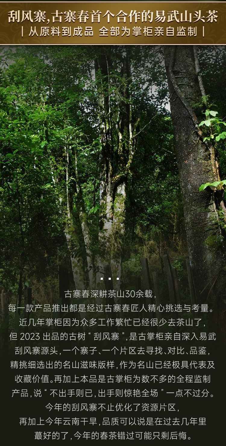 【刮风寨】2023年头春头采今年掌柜首款巨作,全部为挑采不低于20米高杆古树茶,掌柜出手比出好茶357克/饼