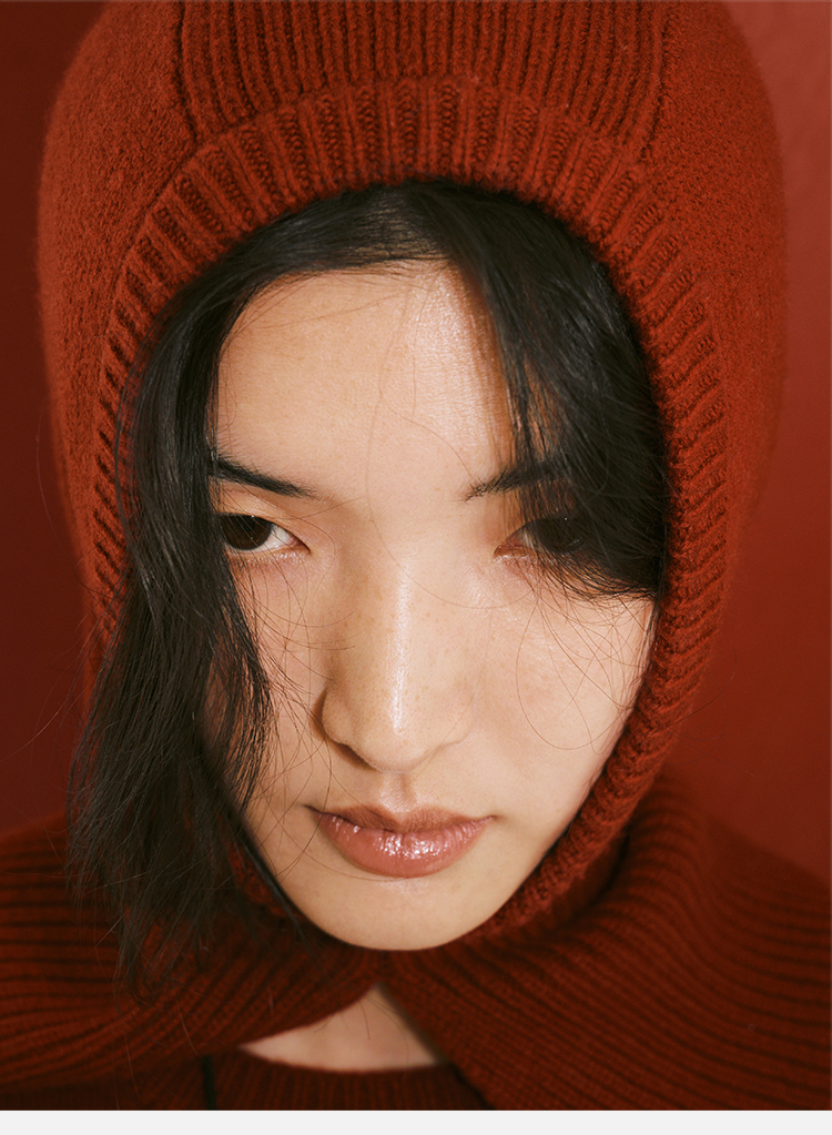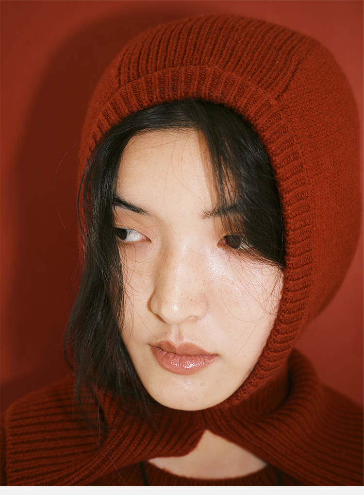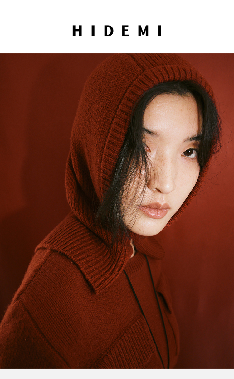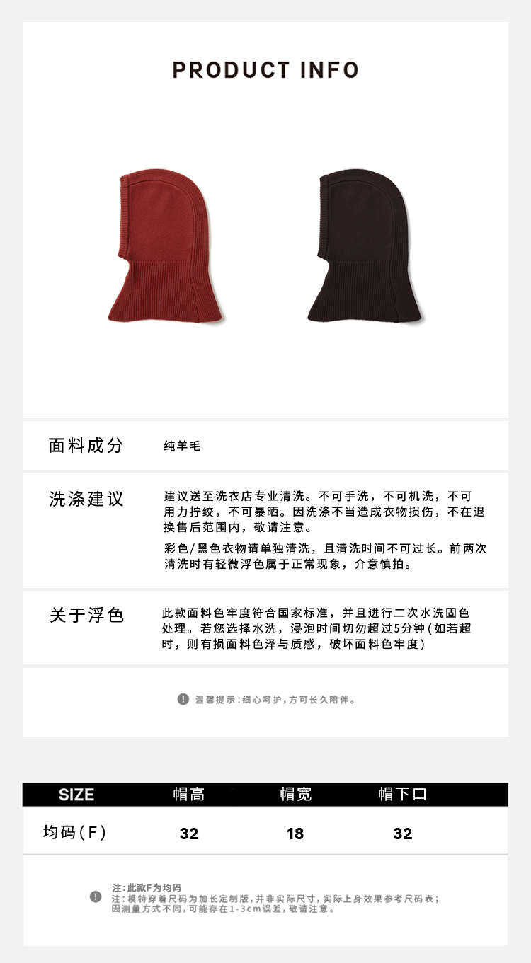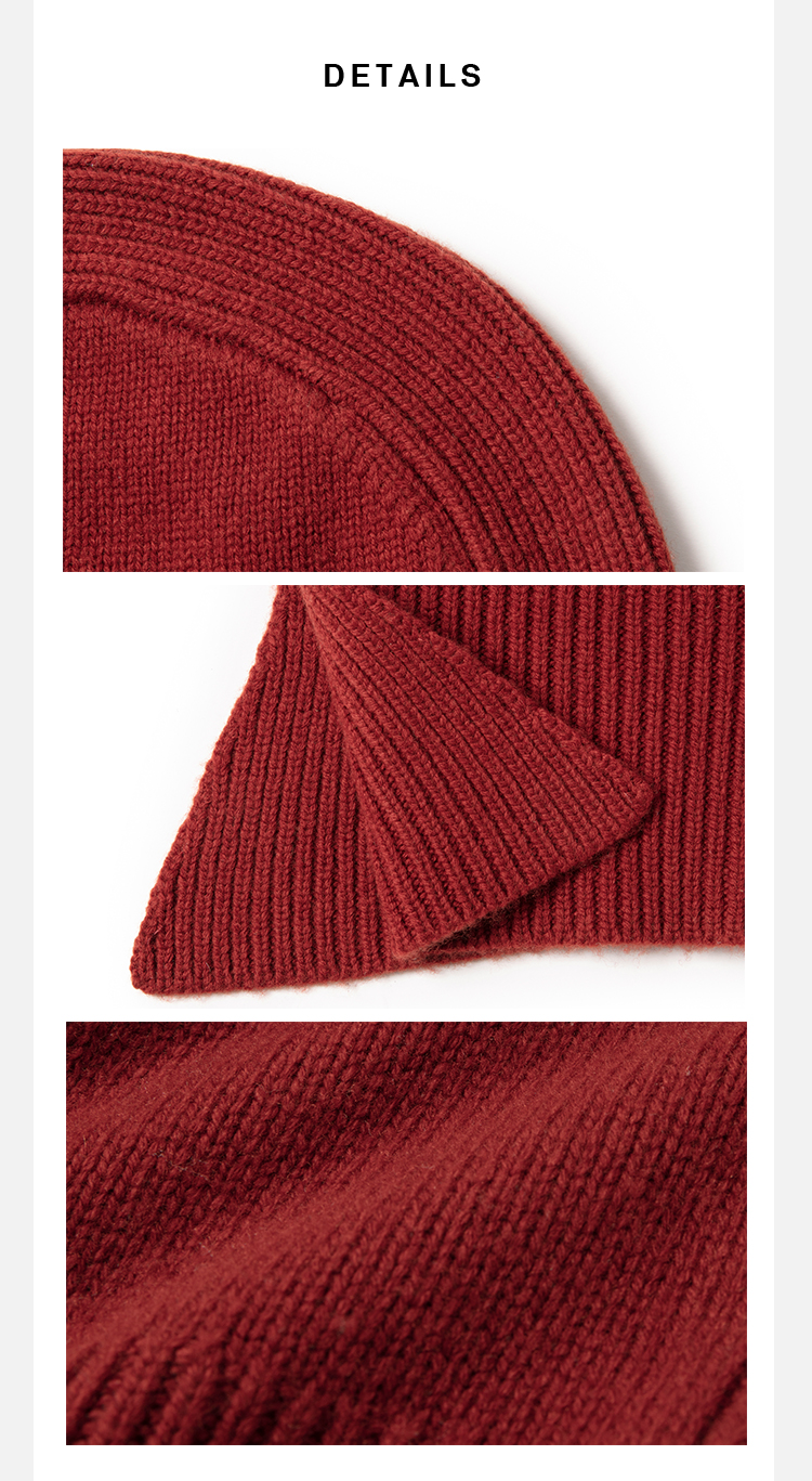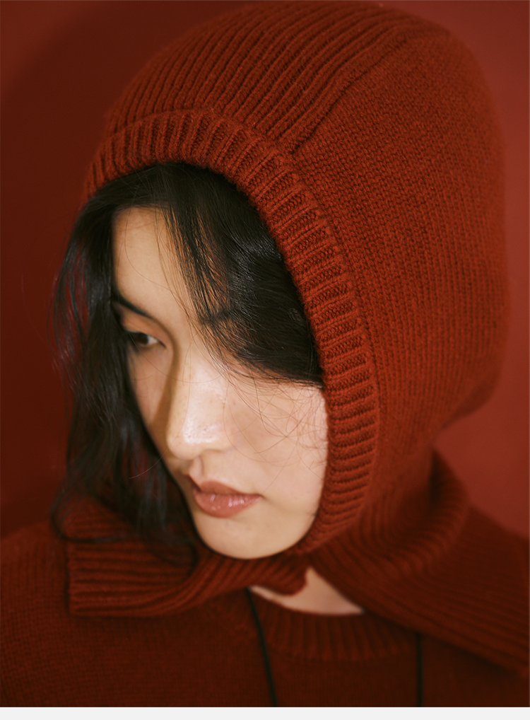 HIDEMI 节日系列美利奴羊毛脖套设计感针织帽圆帽 深巧棕/车厘子红