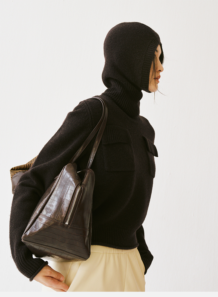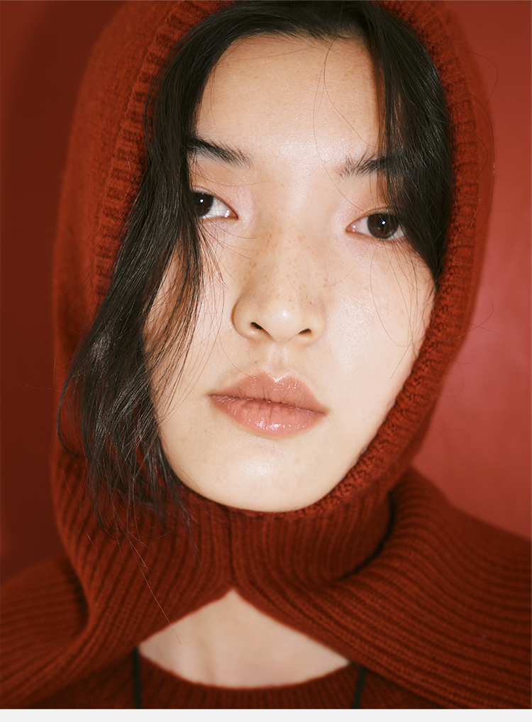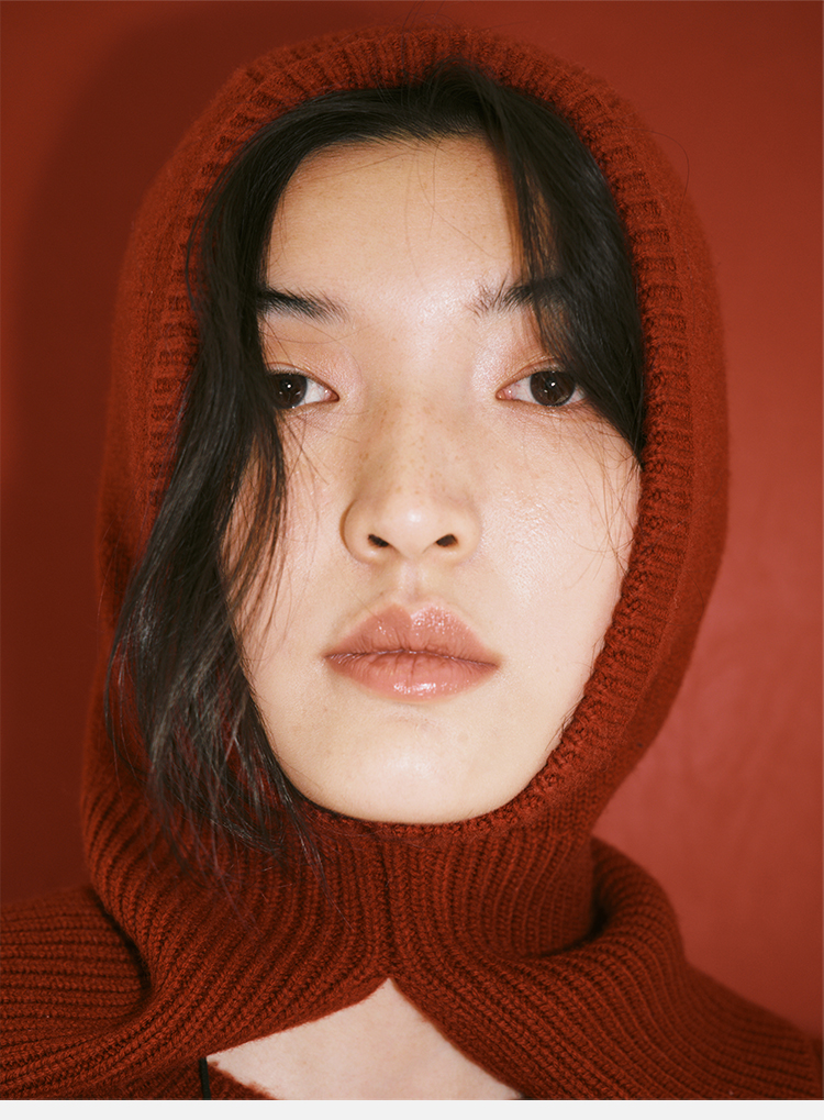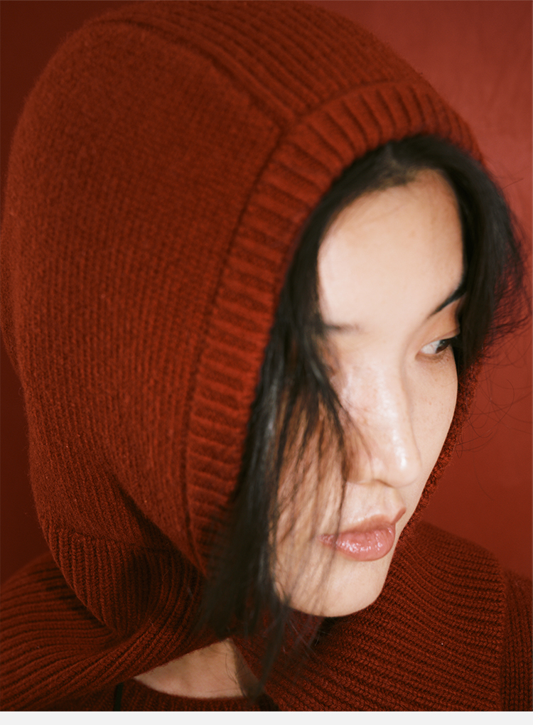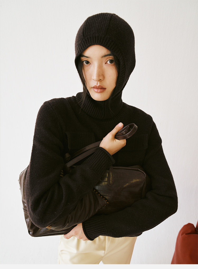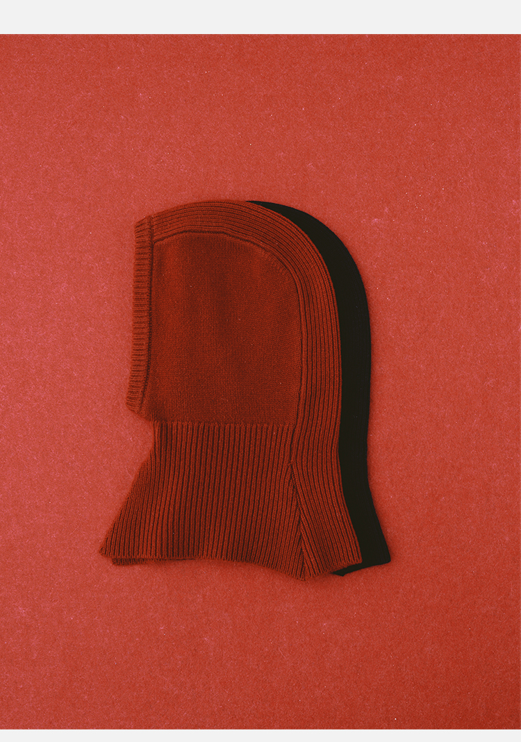 HIDEMI 节日系列美利奴羊毛脖套设计感针织帽圆帽 深巧棕/车厘子红