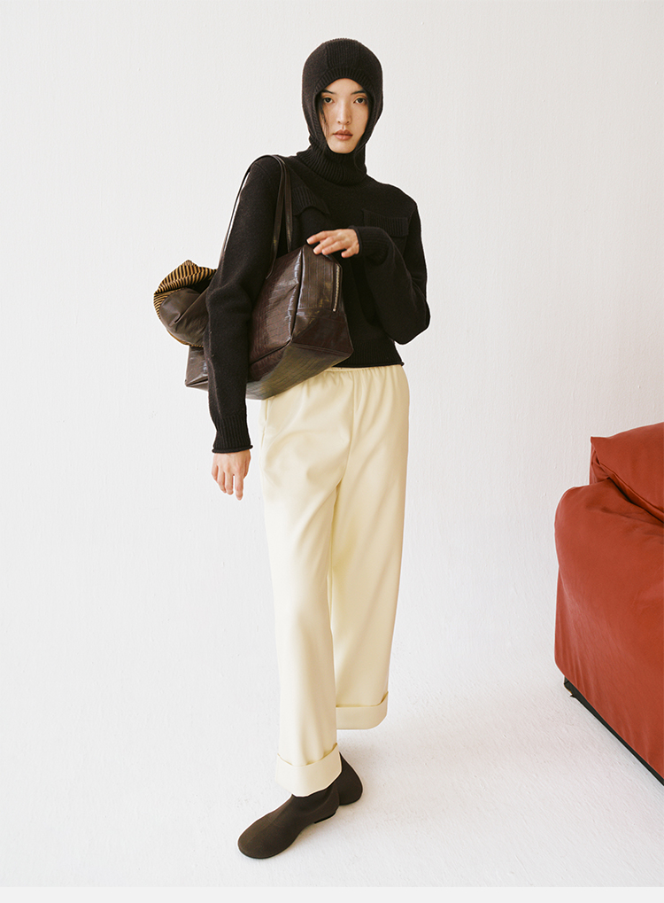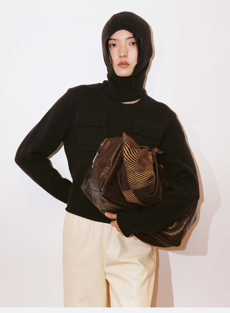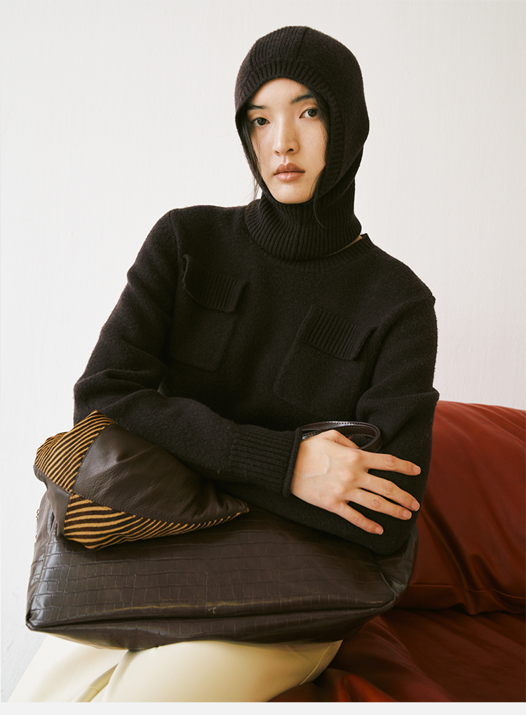 HIDEMI 亲肤柔润感涟漪堆堆领针织上衣 米色/藕粉色/灰蓝色