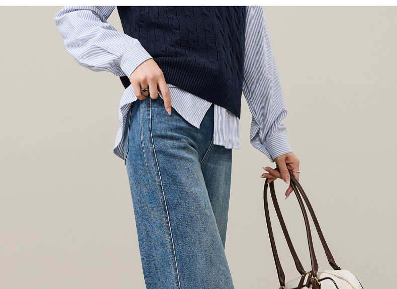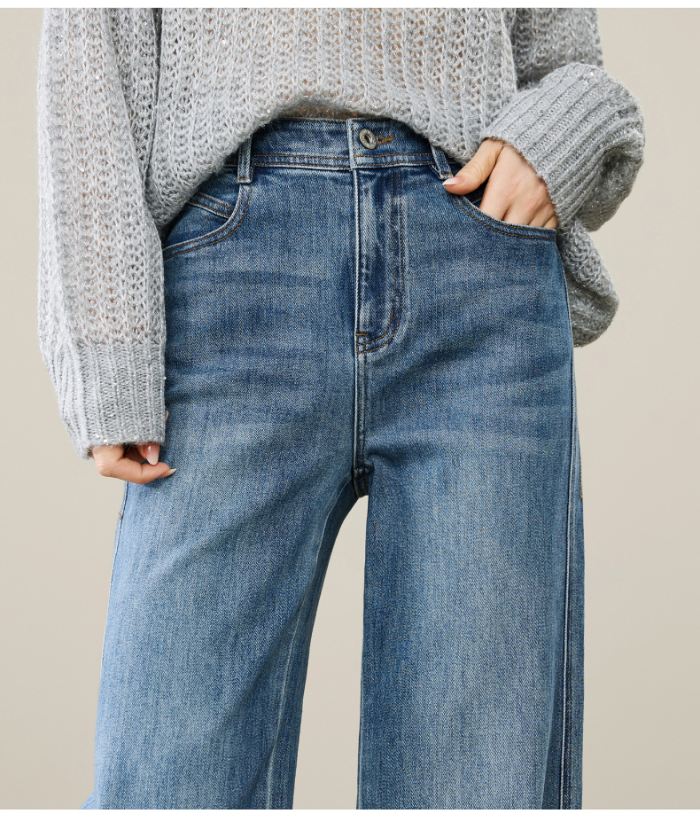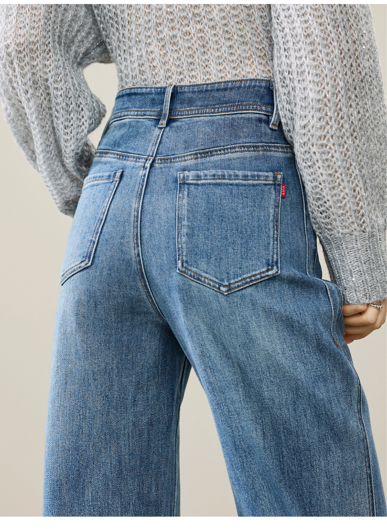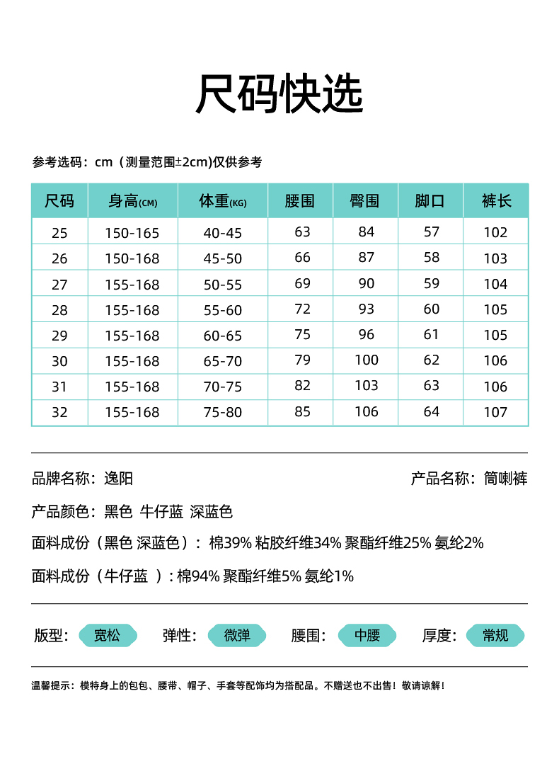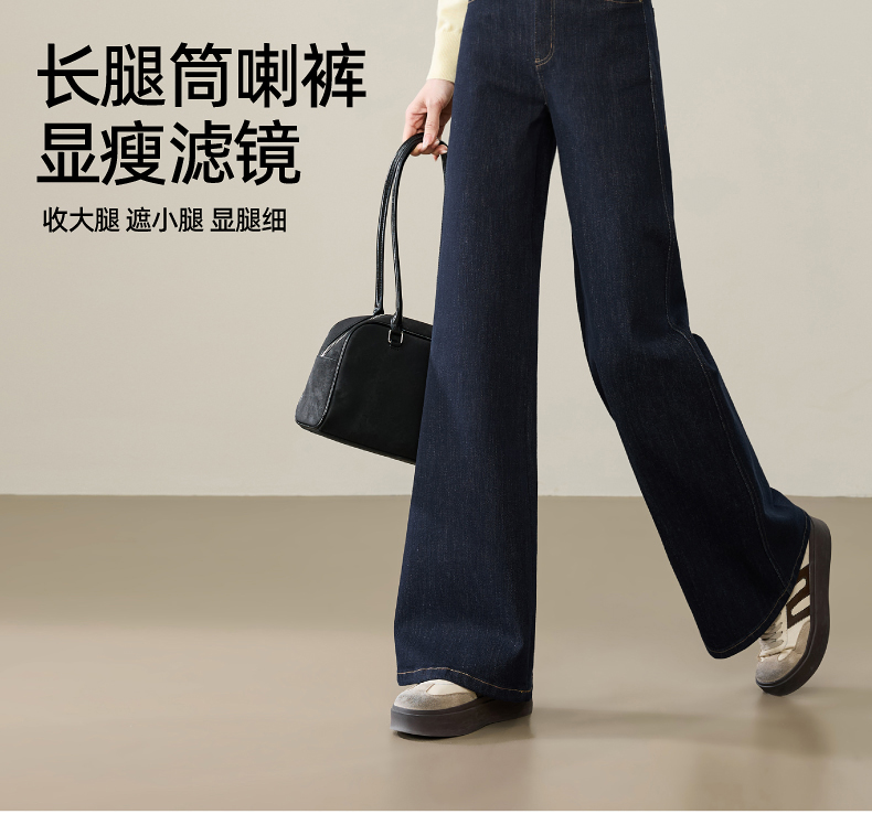 【春新品!A版-女神筒喇裤】逸阳春季新款不易褪色莱卡弹力微喇直筒牛仔裤8233