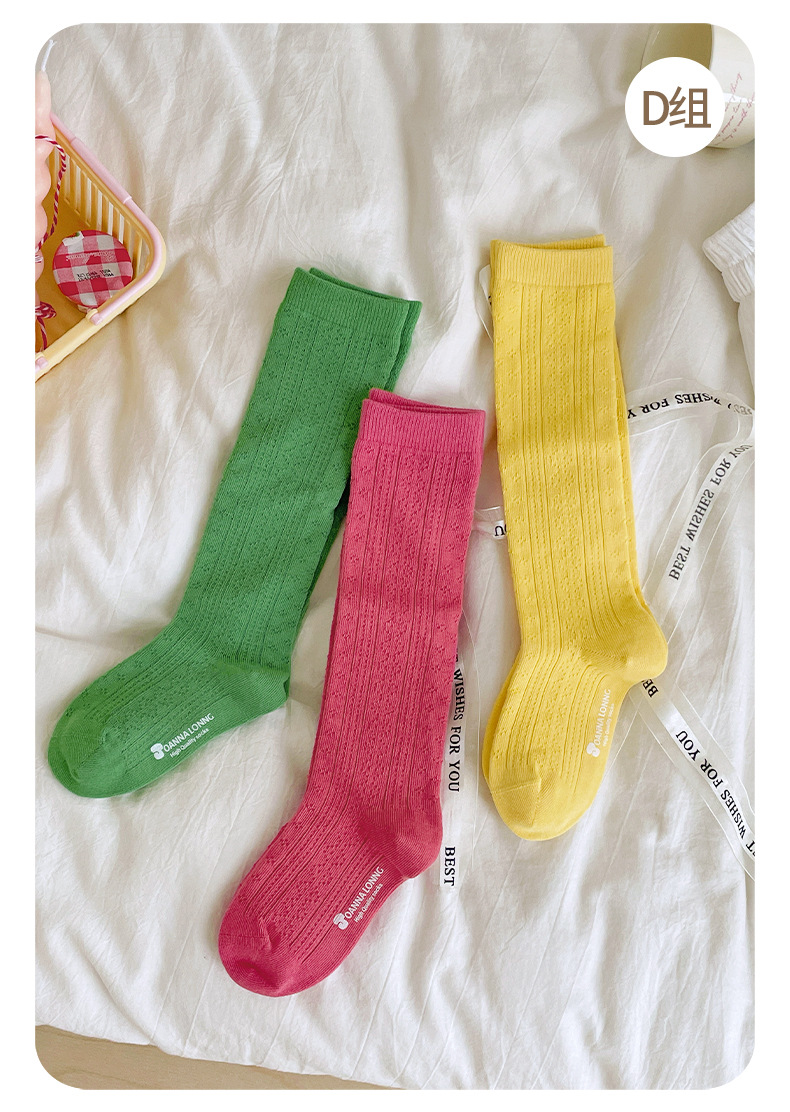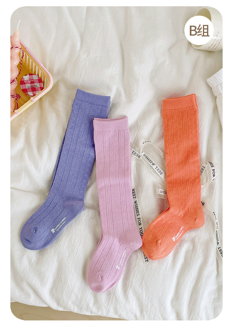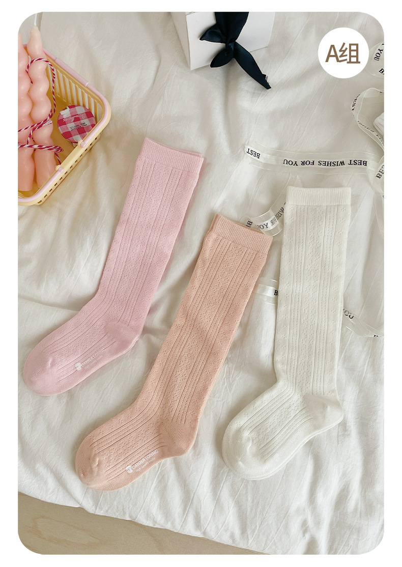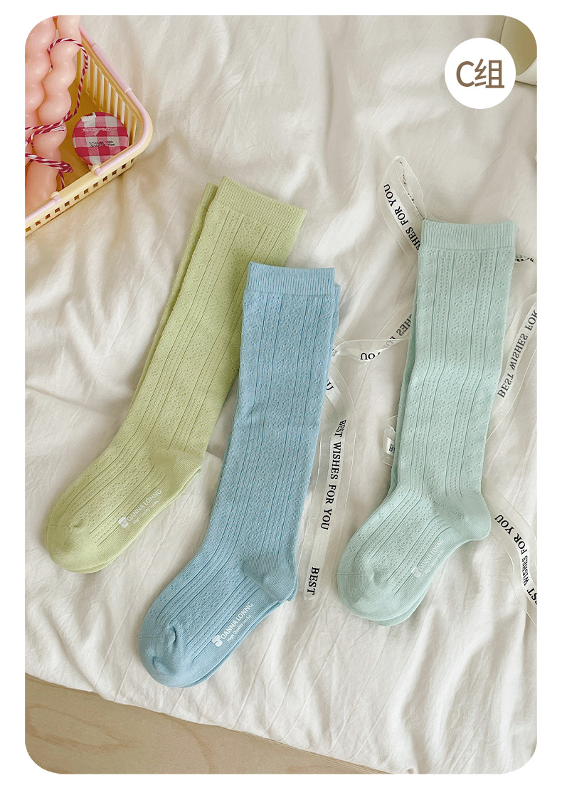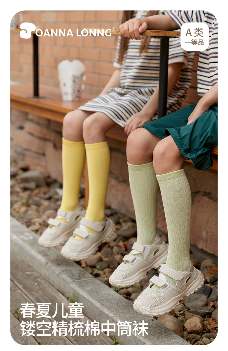 JOANNALONNG Kid's 春夏儿童A类精梳棉无骨镂空网眼中筒袜3双装