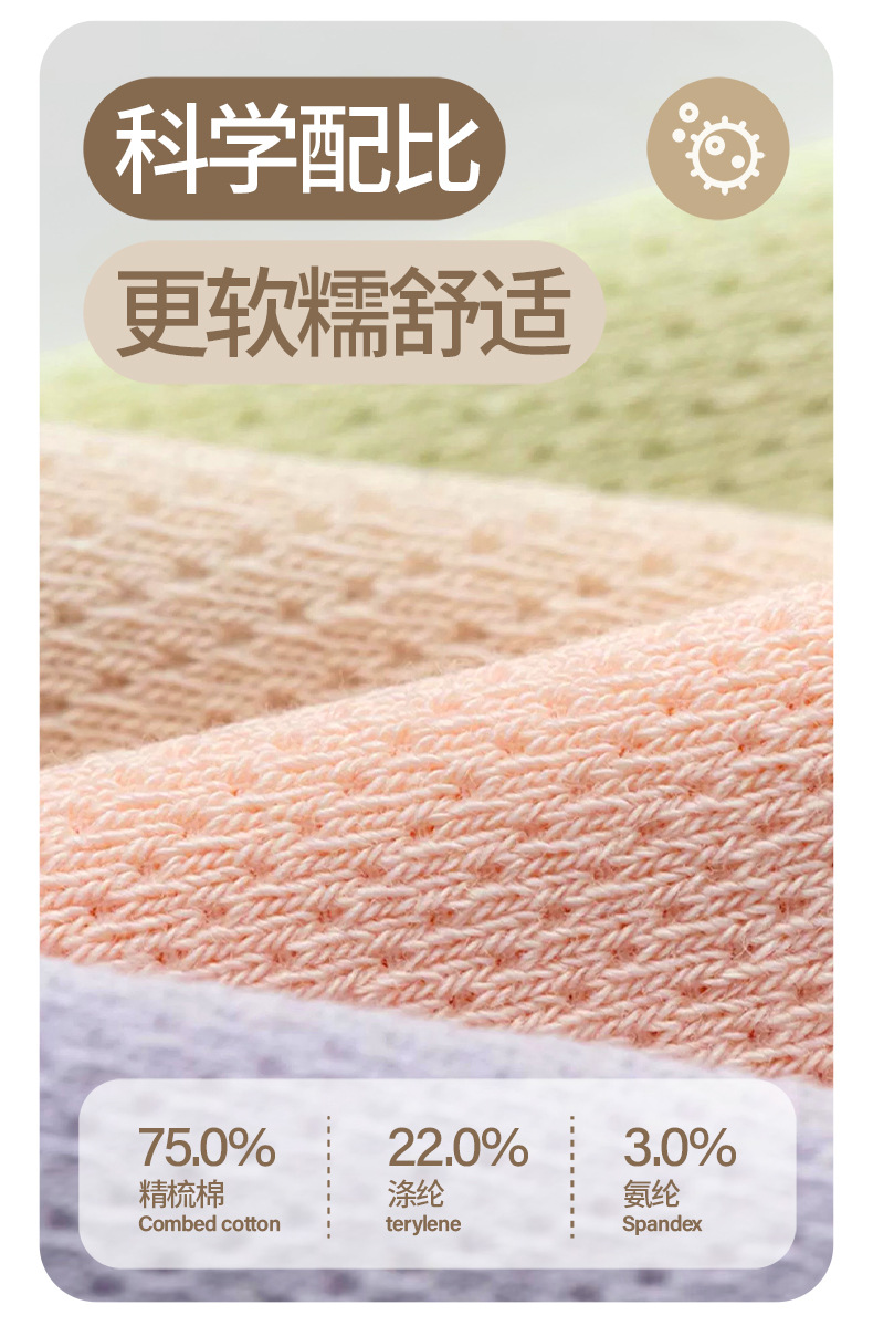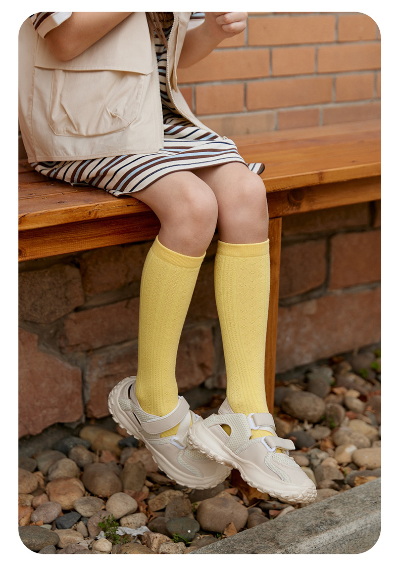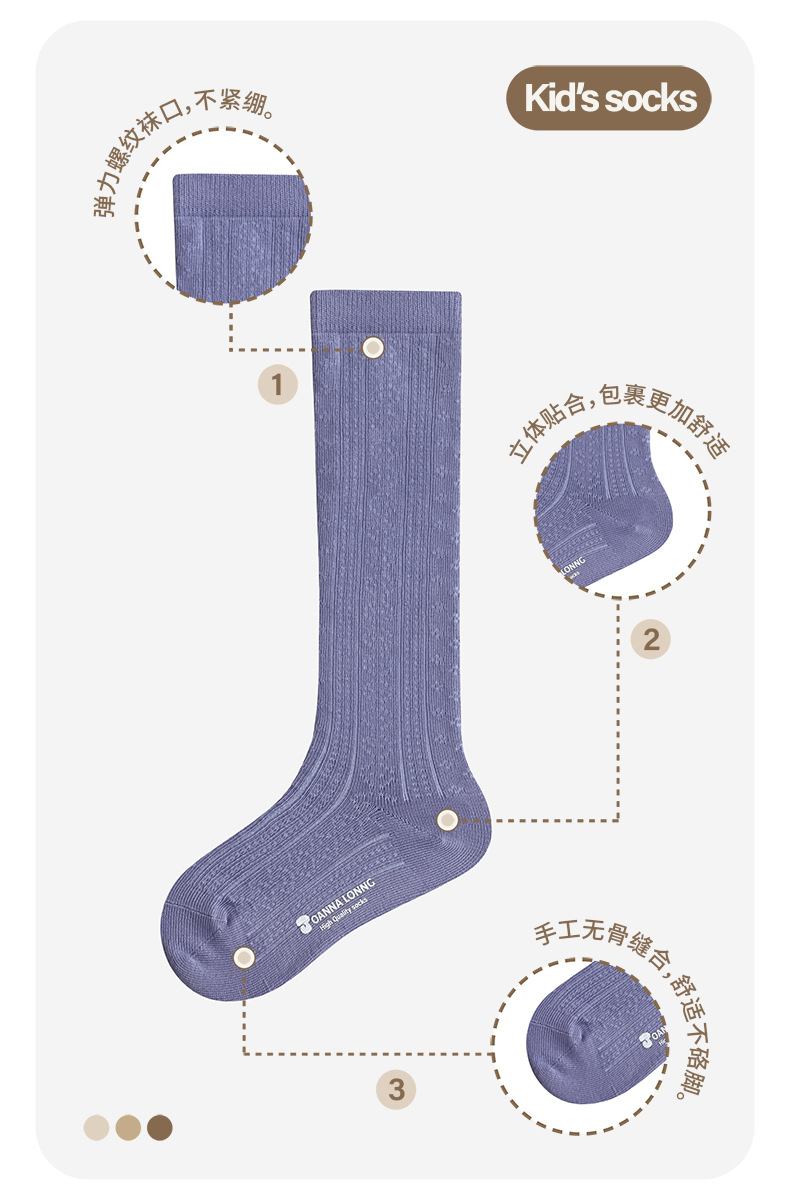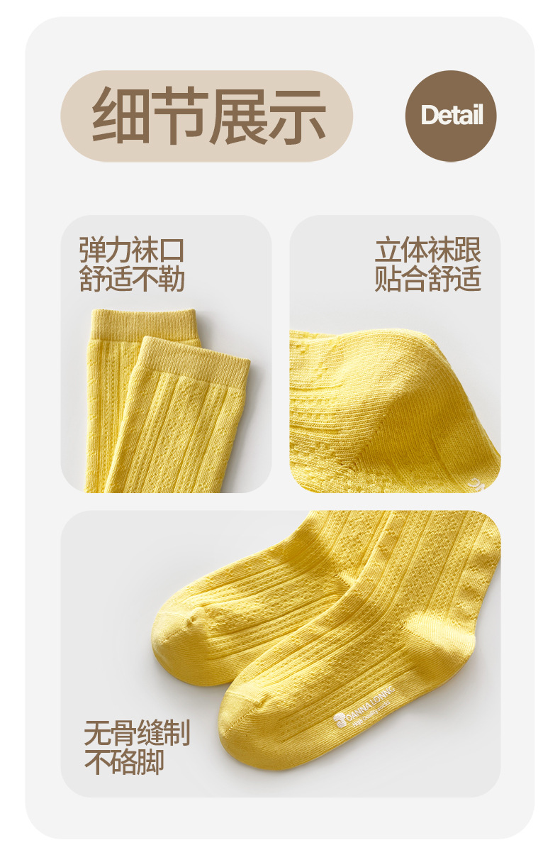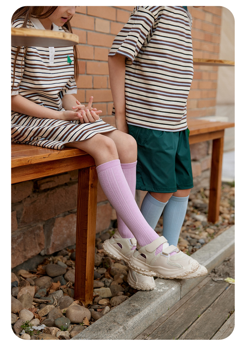 JOANNALONNG Kid's 春夏儿童A类精梳棉无骨镂空网眼中筒袜3双装