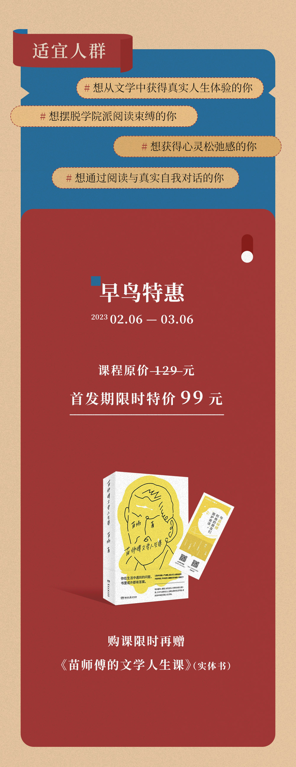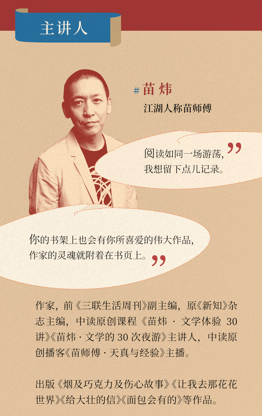 新课上线《苗炜·文学的30种滋味》,限时赠送《苗师傅的文学人生课》实体书,前100单享苗师傅签名版