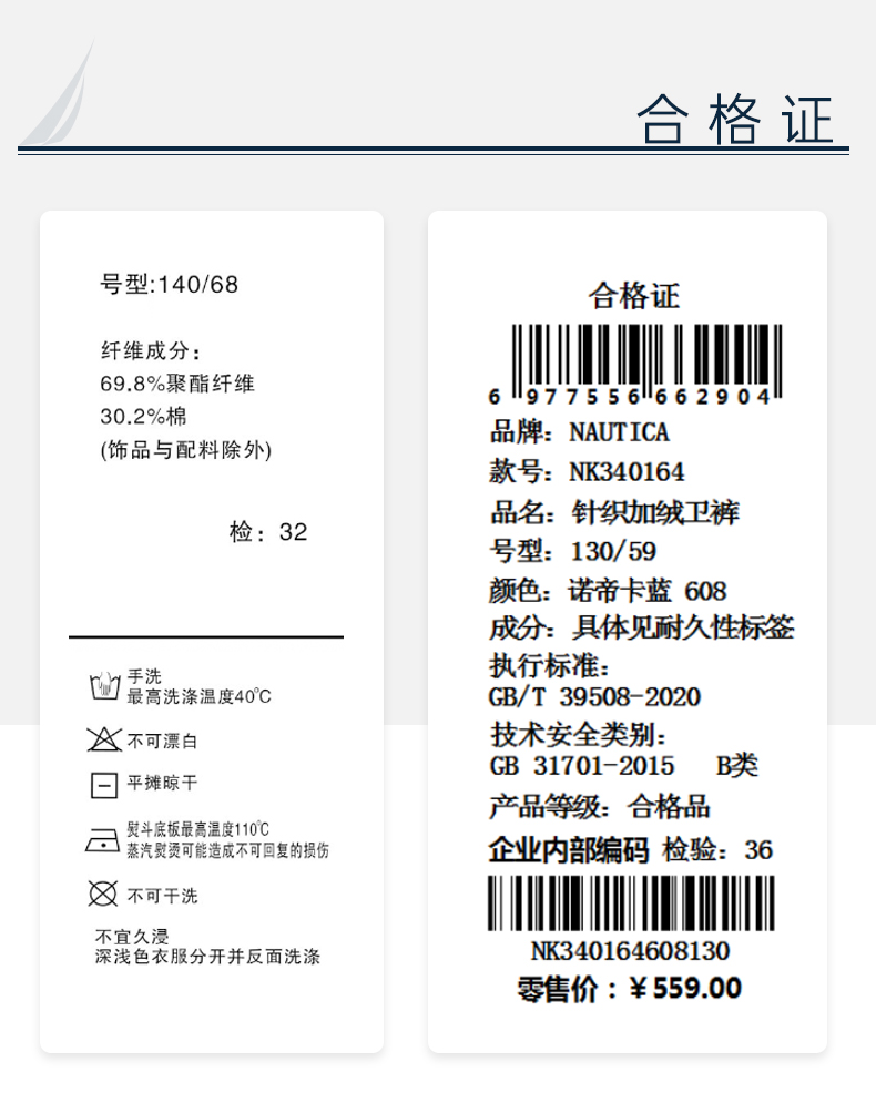 NAUTICA诺帝卡童装 针织加绒卫裤 NK340164 商品图7