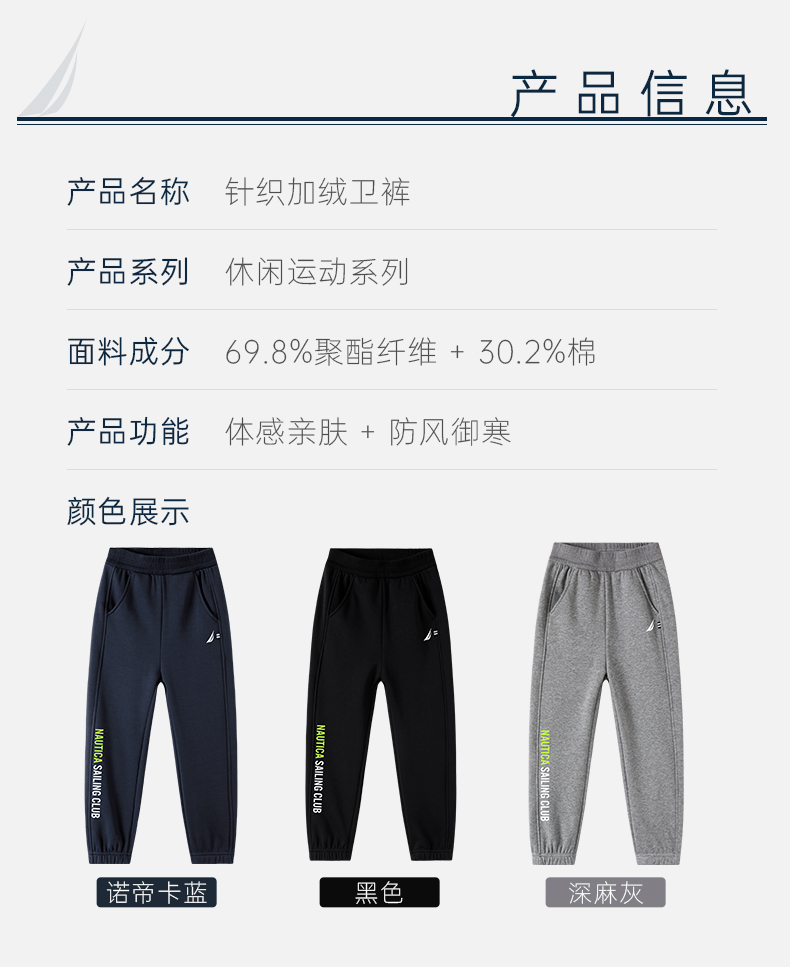 NAUTICA诺帝卡童装 针织加绒卫裤 NK340164 商品图5