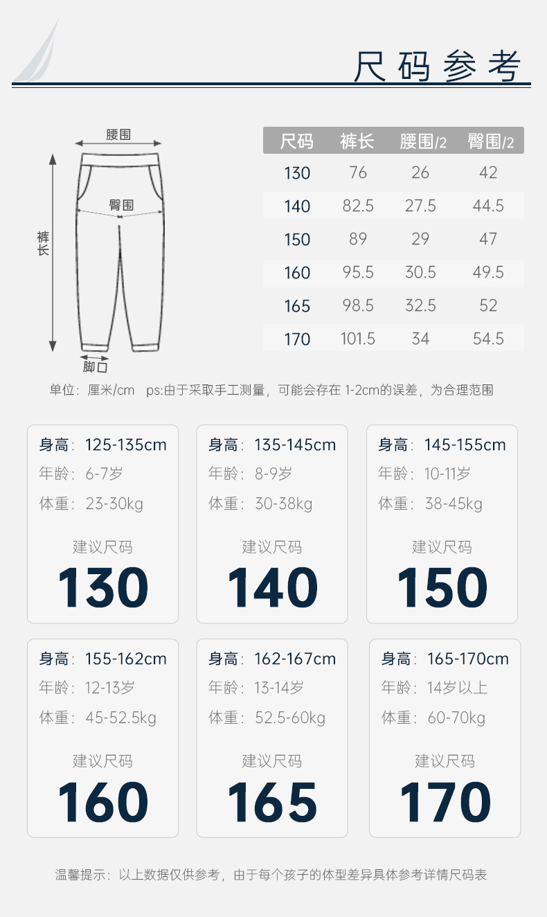 NAUTICA诺帝卡童装 针织加绒卫裤 NK340164