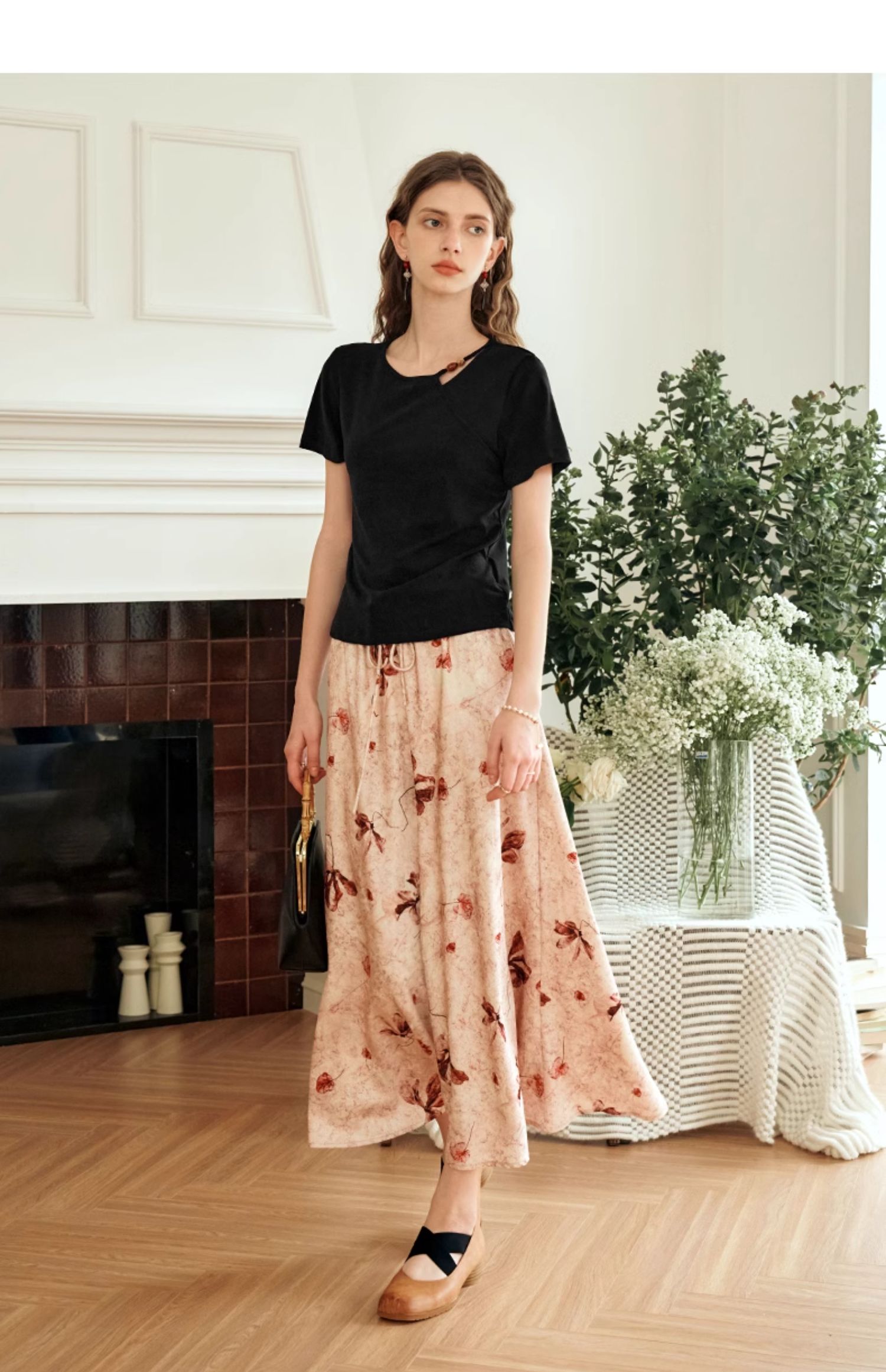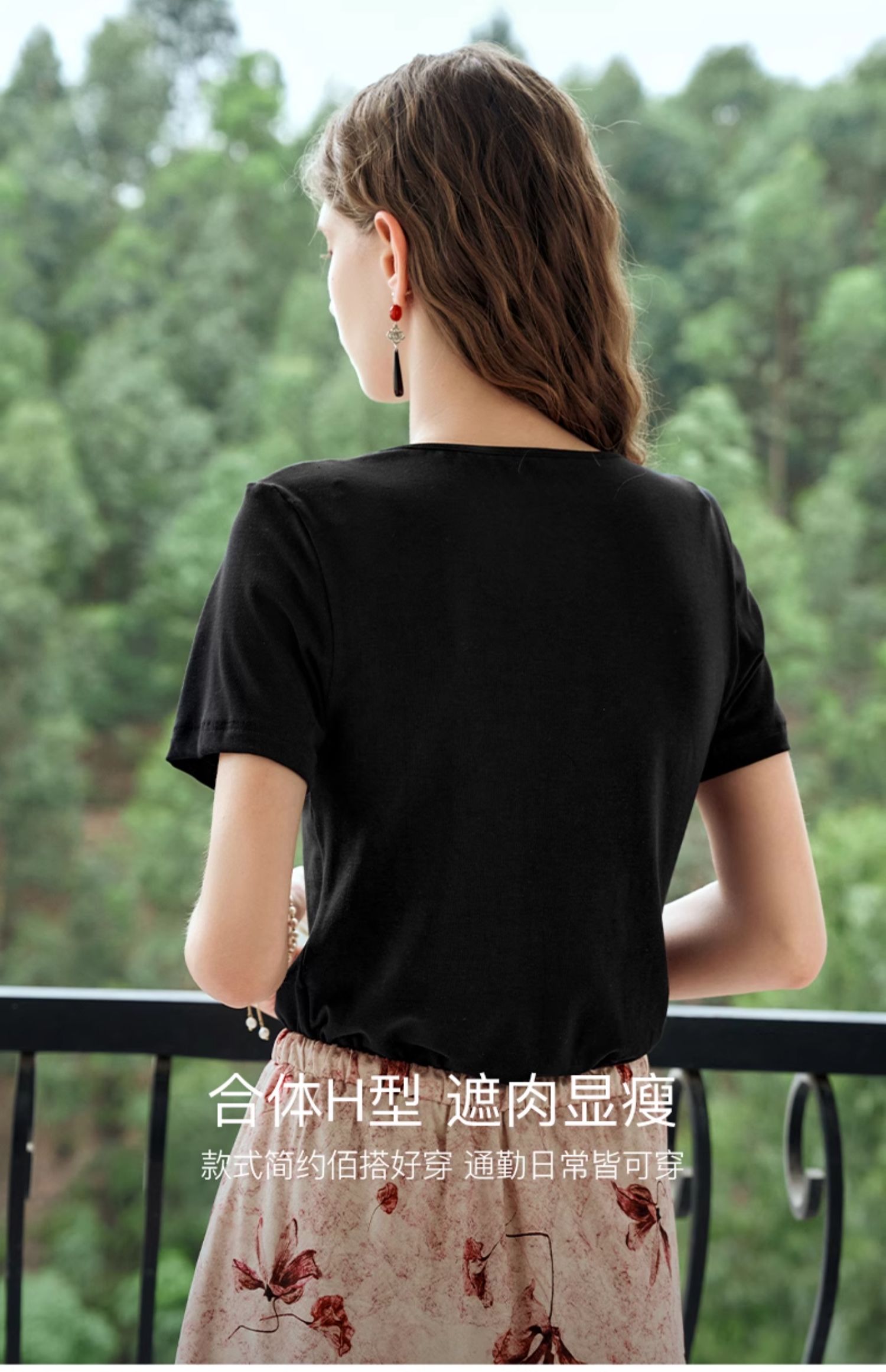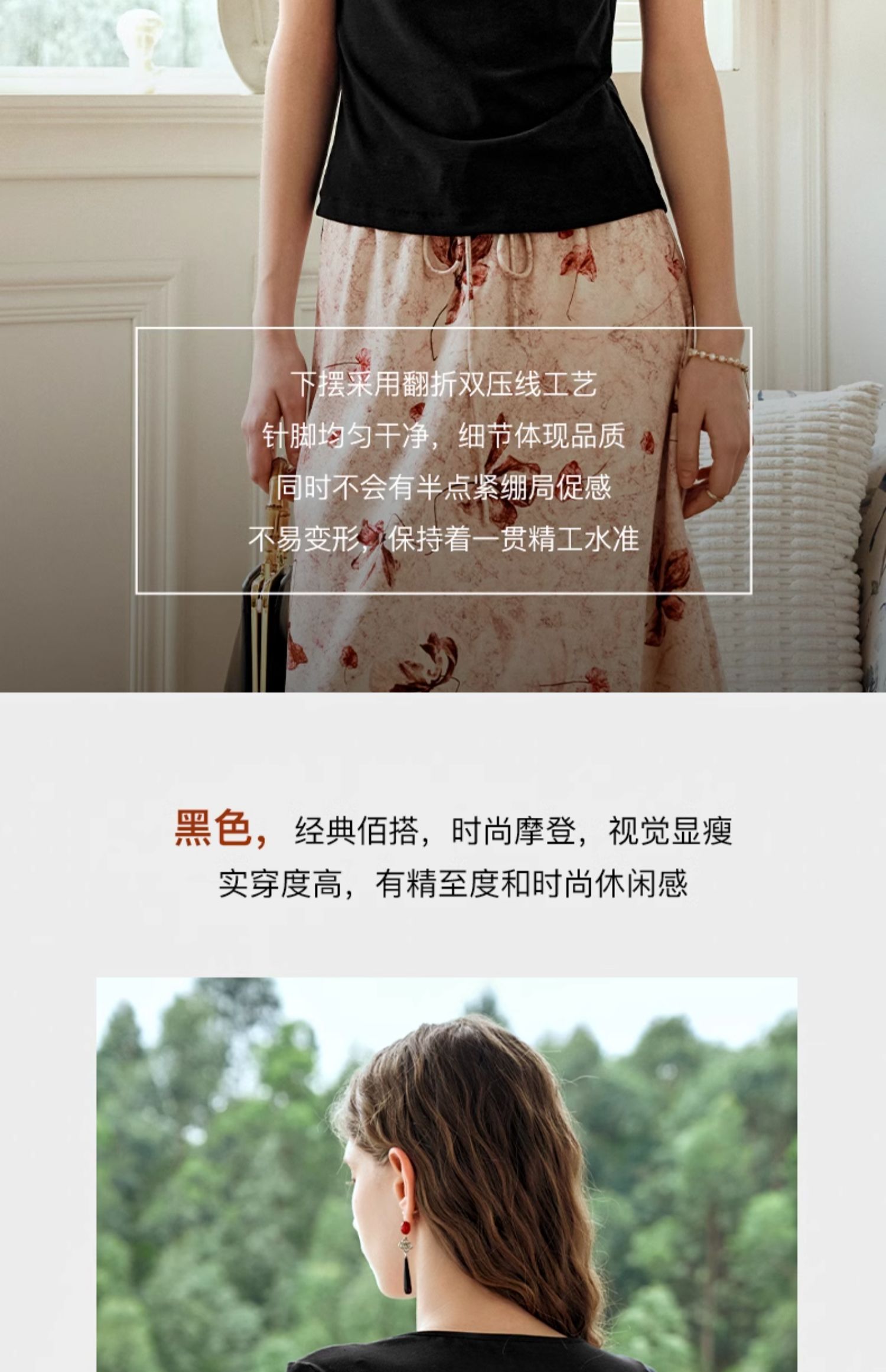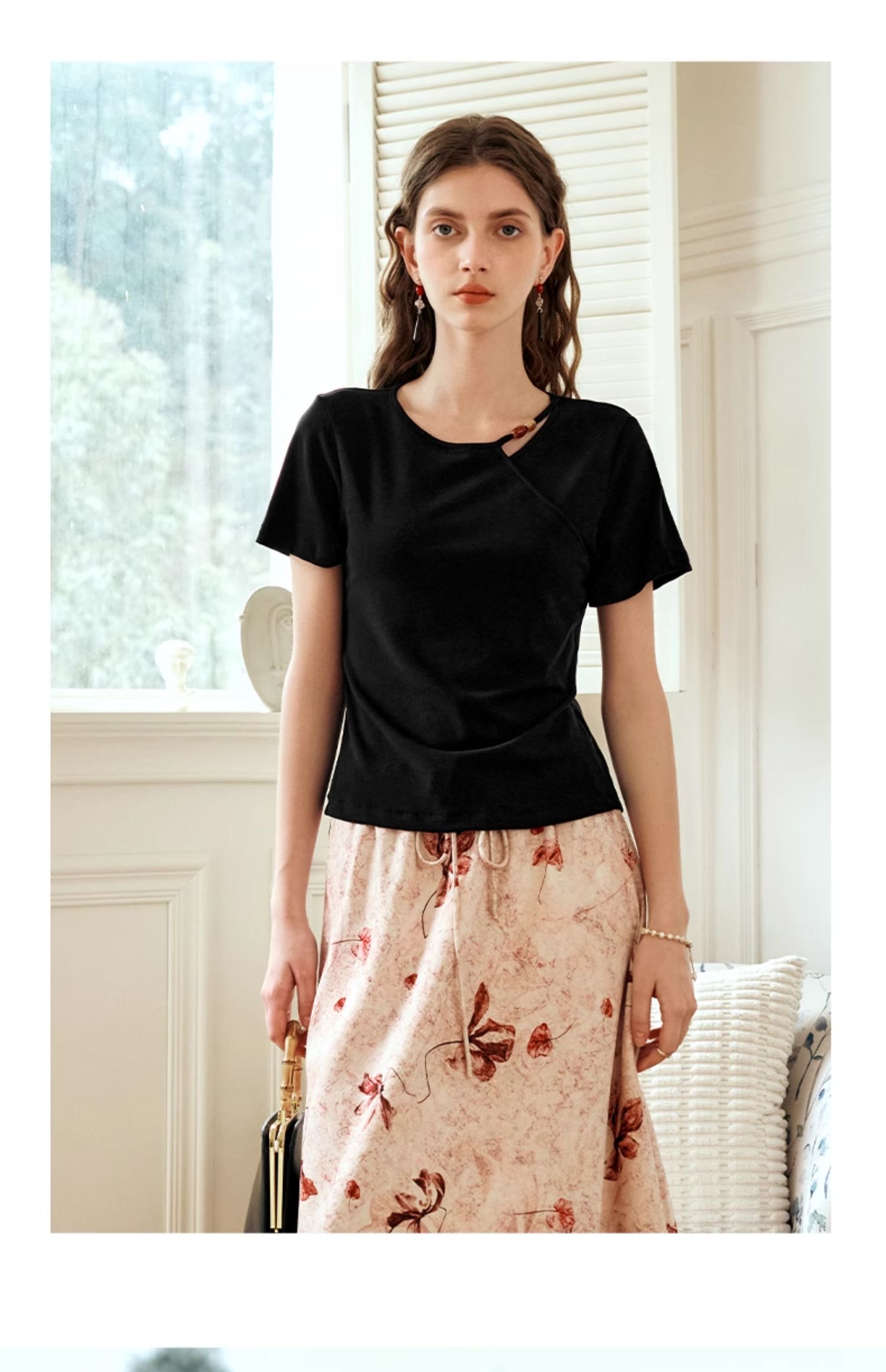 OLrain欧芮儿黑色短袖T恤女夏季2024新款简约通勤设计感针织上衣
