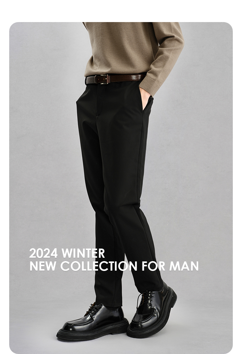 GXG男装 四面弹西裤黑色垂感休闲长裤 24年冬G24X024148
