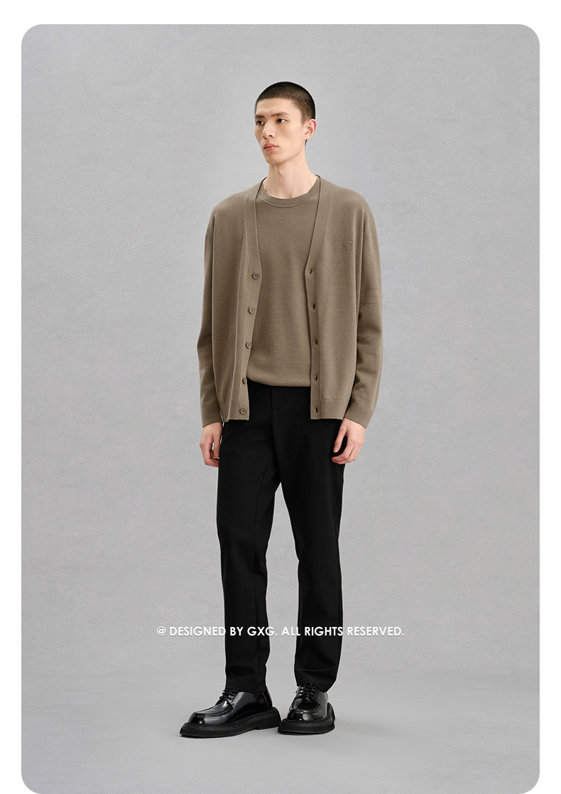 GXG男装 棕色肌理斜纹通勤短款大衣 24冬热卖G24X064027