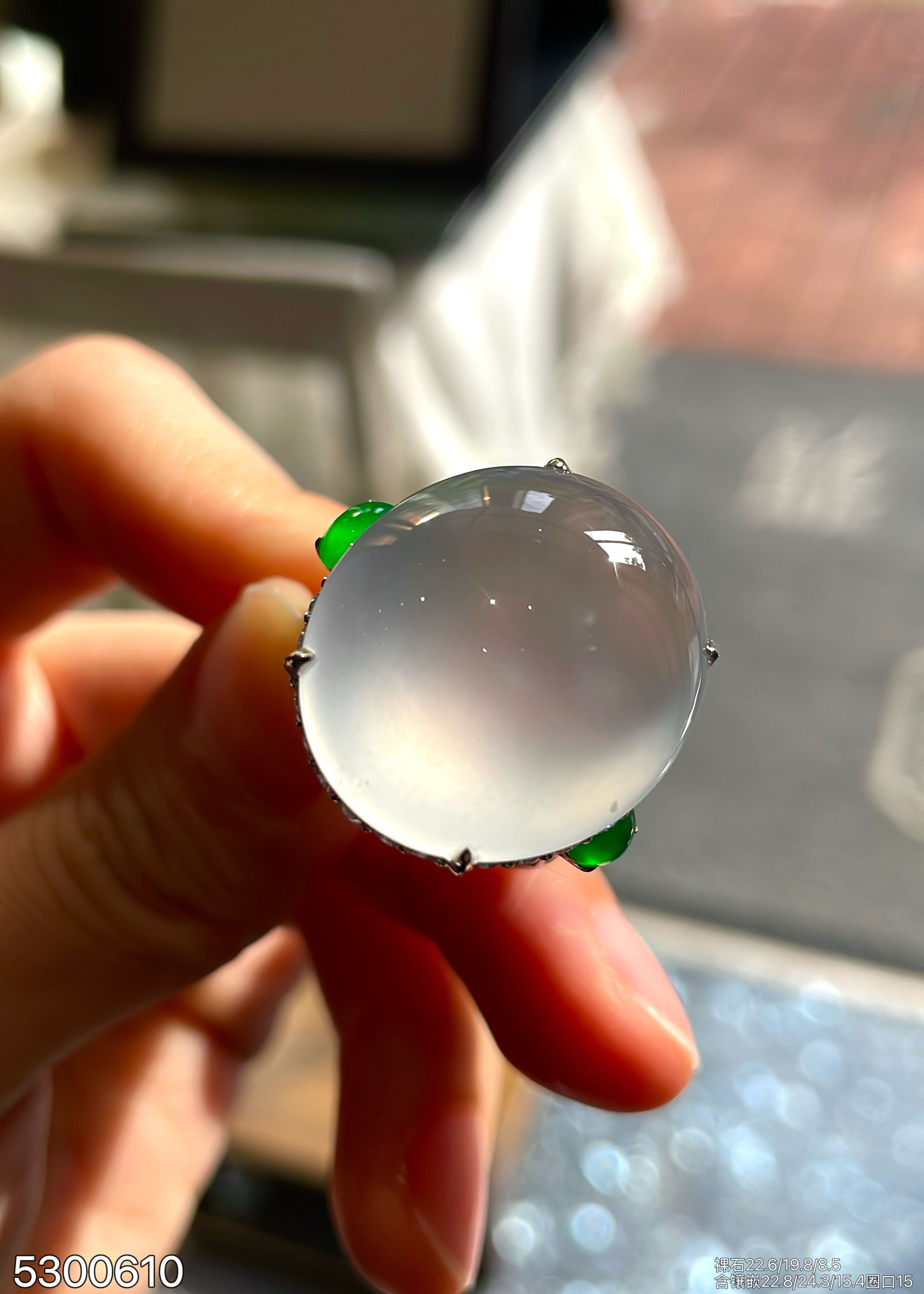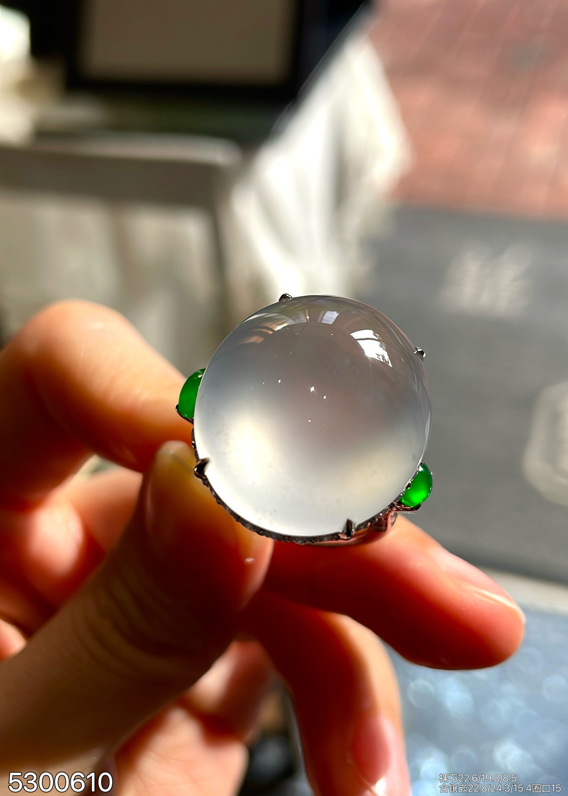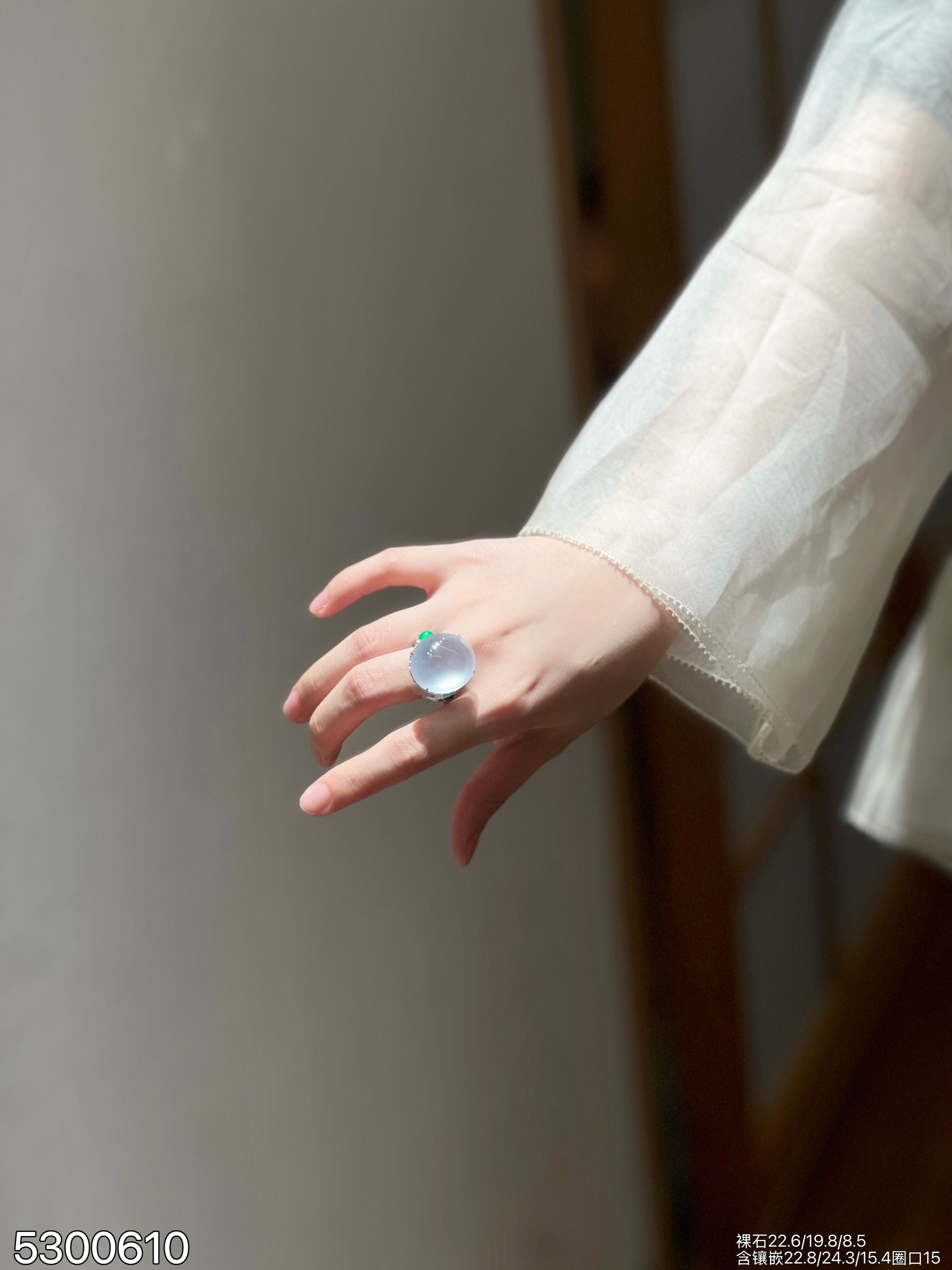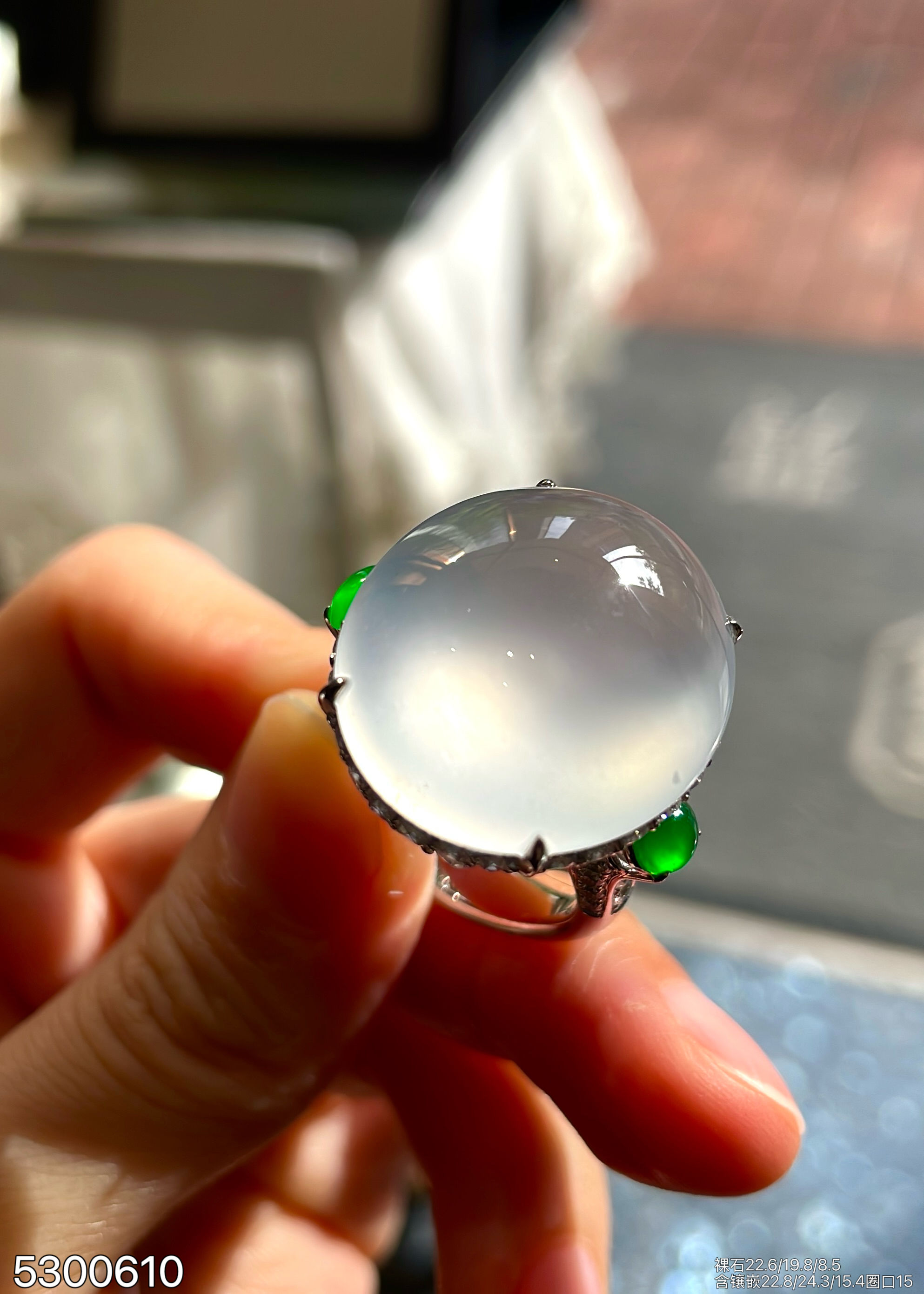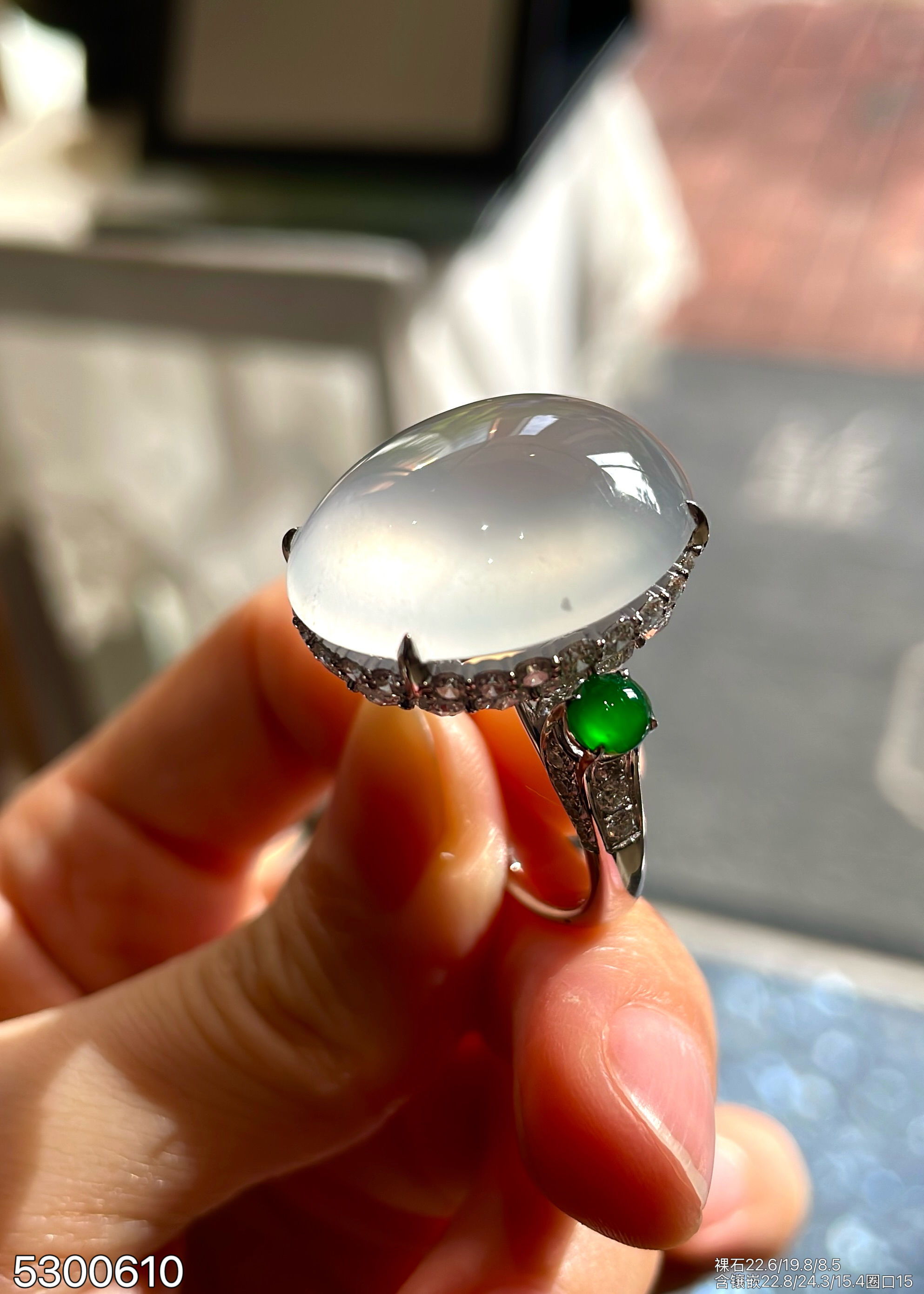 玻璃种蛋面戒指【5300610】具体价格微信咨询