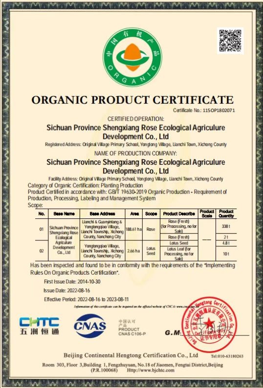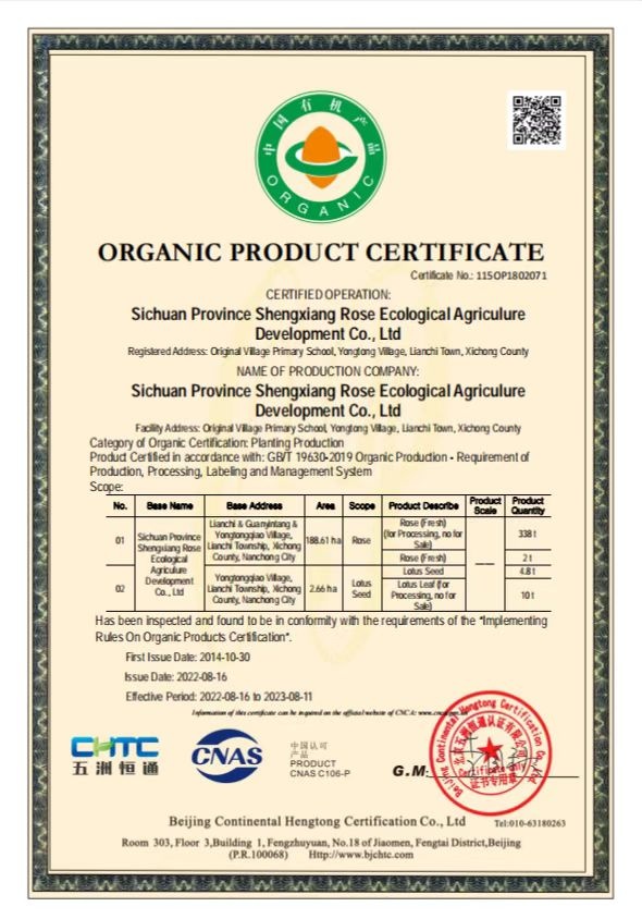 整个园区共种植3000余亩可食用有机玫瑰花,坐落于4A级景区“张澜故里”。四月中旬,位于张澜故里景区的有机重瓣红玫瑰即将大面积绽放,为了保留玫瑰花的精油、芳香物质、花青素等营养物质能最大程度保留,我们的花农需每天凌晨3-6点开始采摘。