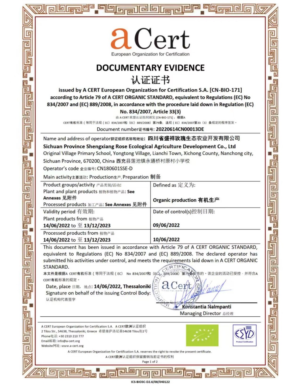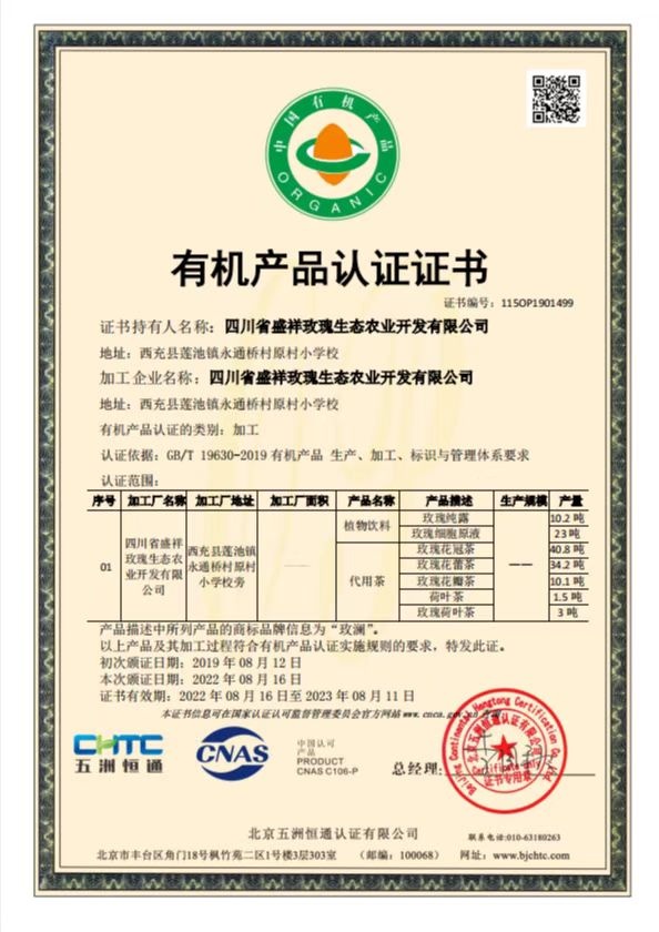 本产品从2015年至今起先后获得了中国有机认证和欧盟有机认证的双标认证。