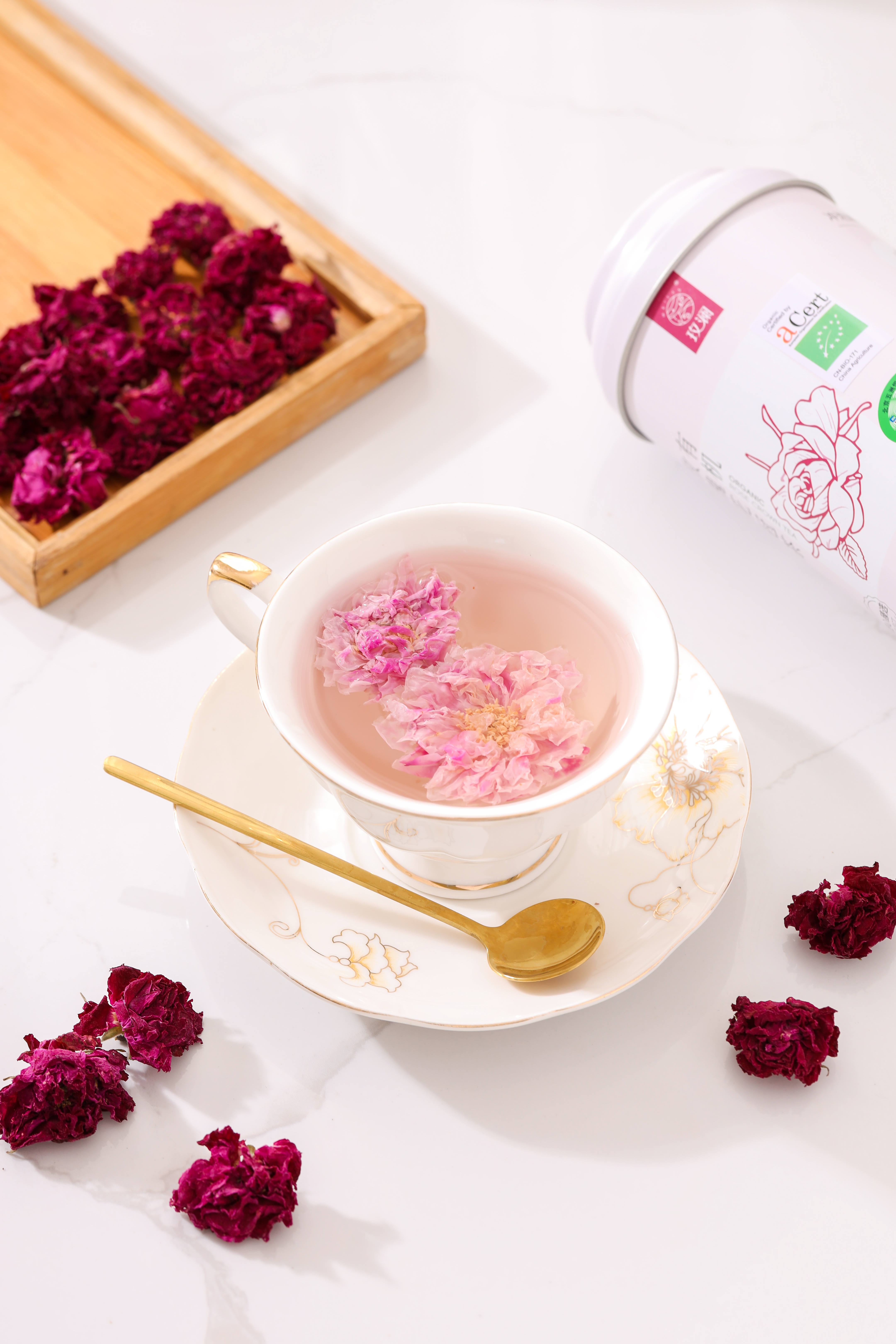 一花一世界,一茶一人生!来一杯有机玫瑰花茶,开启元气满满的一天。