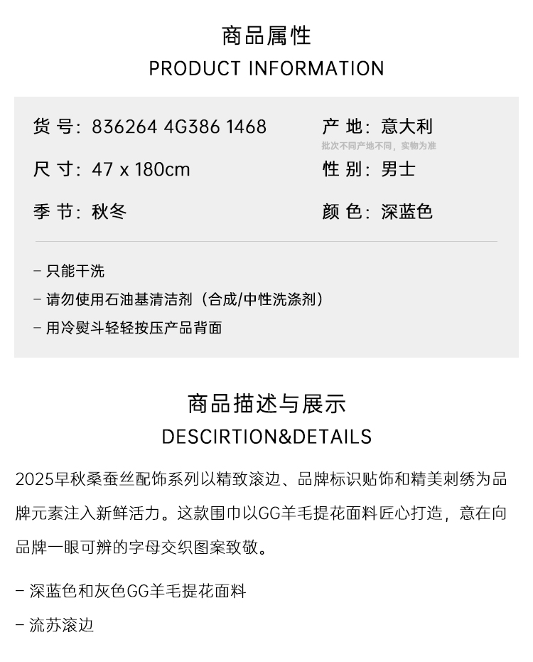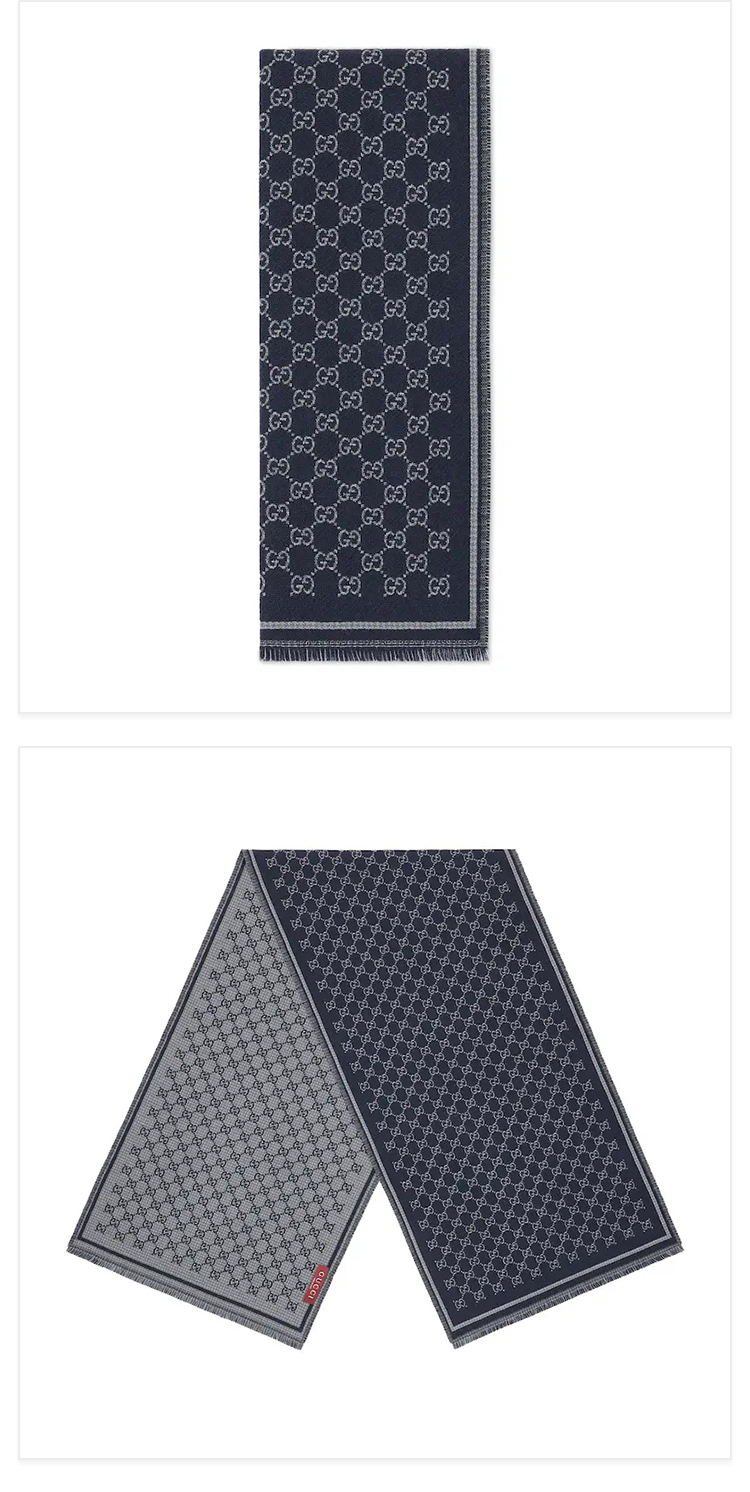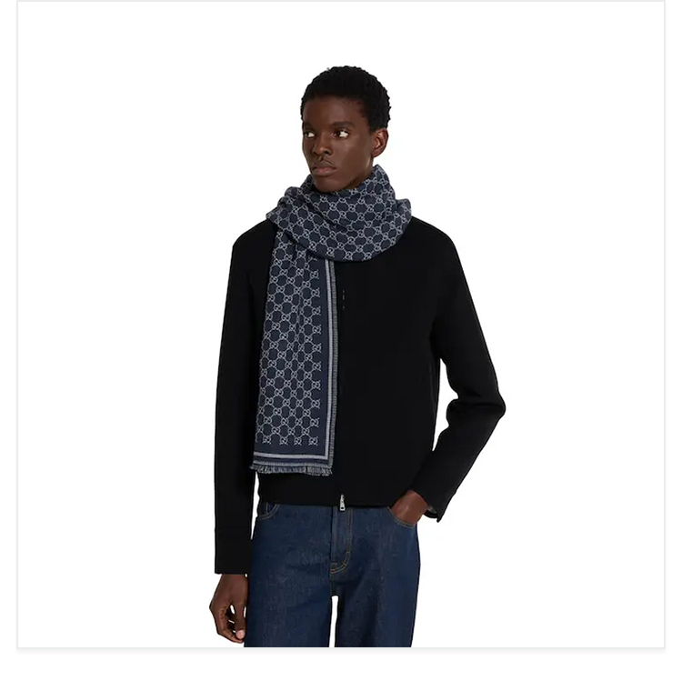GUCCI 古驰 男士GG羊毛提花围巾 深蓝色 836264 4G386 1468