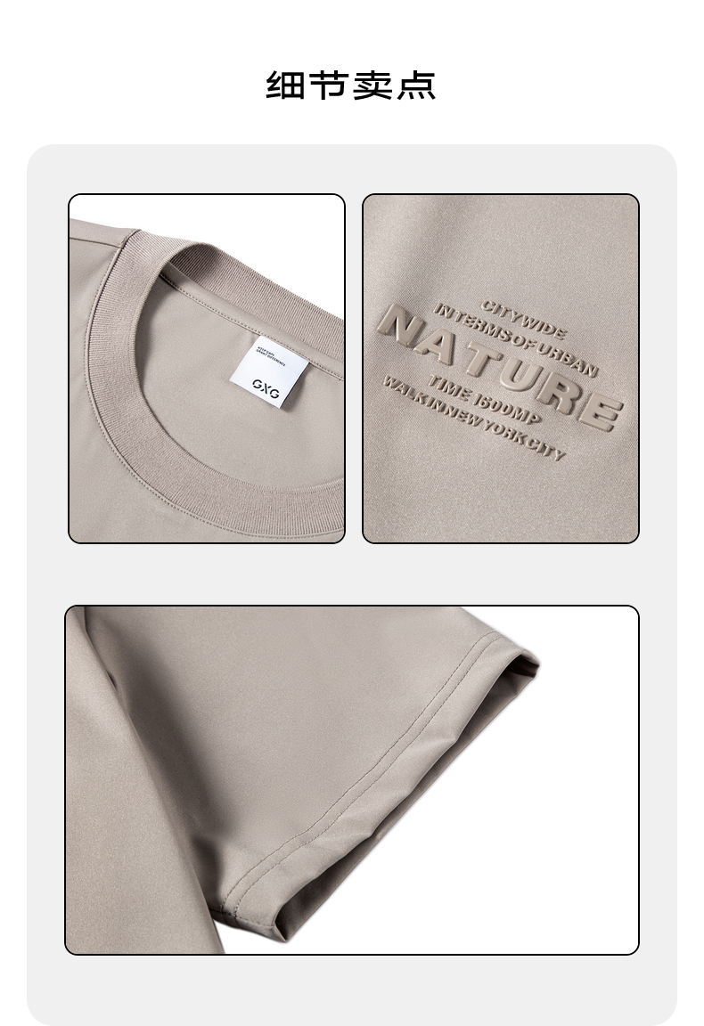 GXG男装 卡其色圆领字母短袖T恤 休闲简约夏季热卖G24X442071