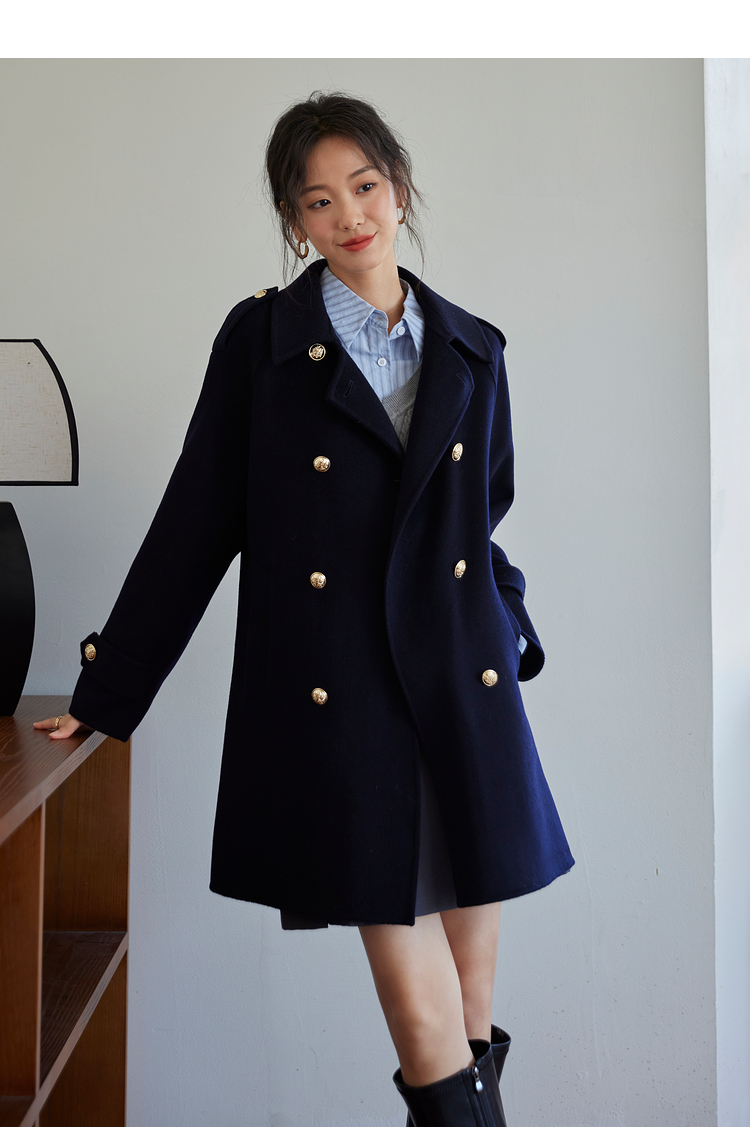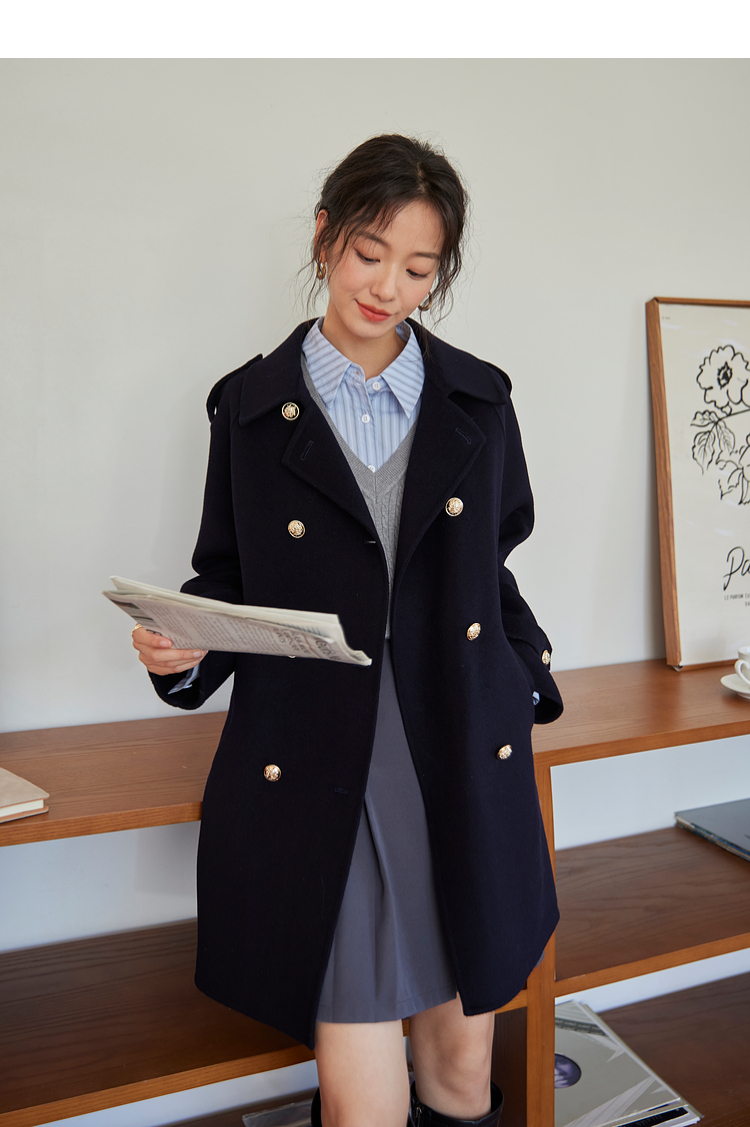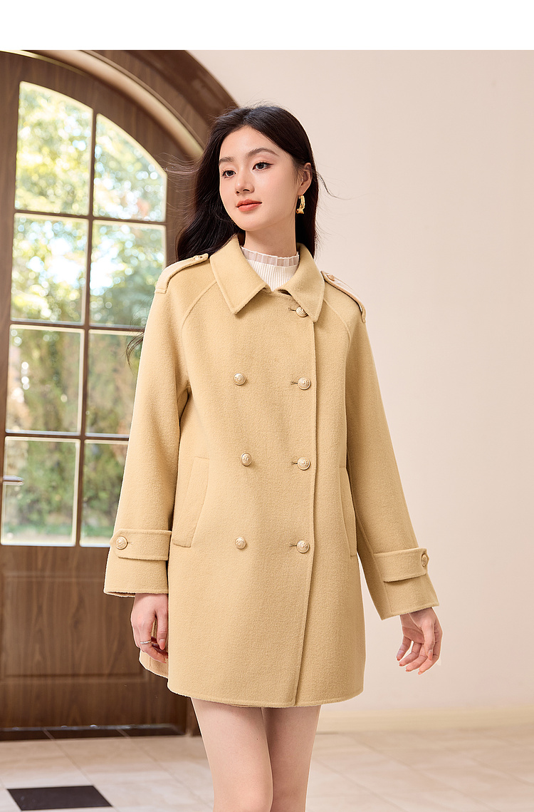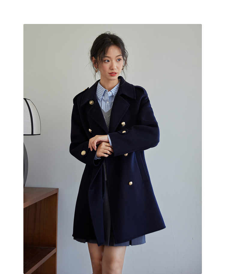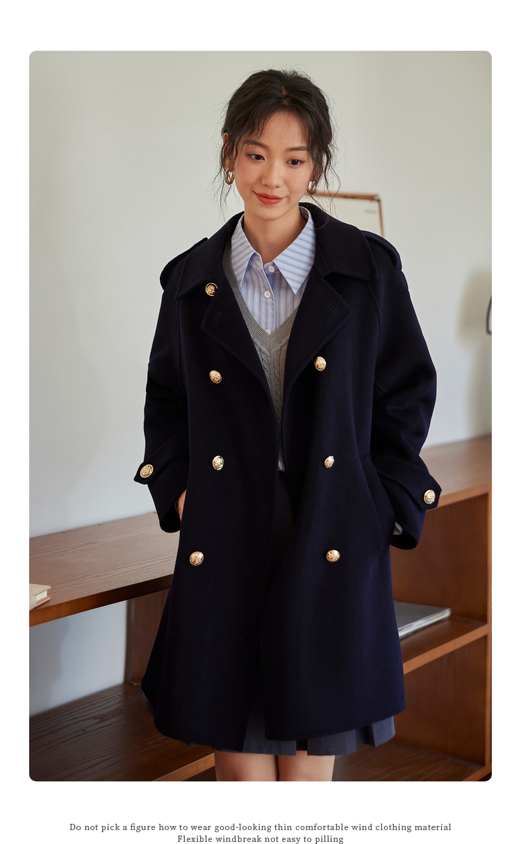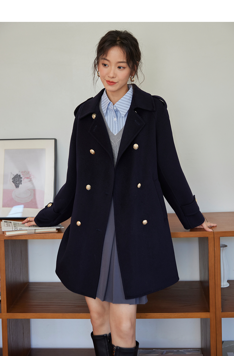 【五折购】熙世界学院风双面呢大衣中长款2025冬季新款红色全羊毛呢子外套