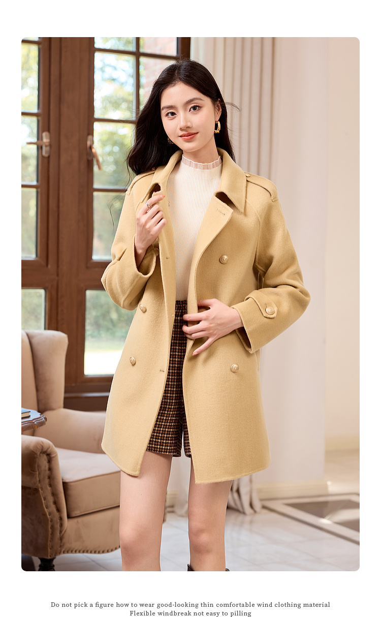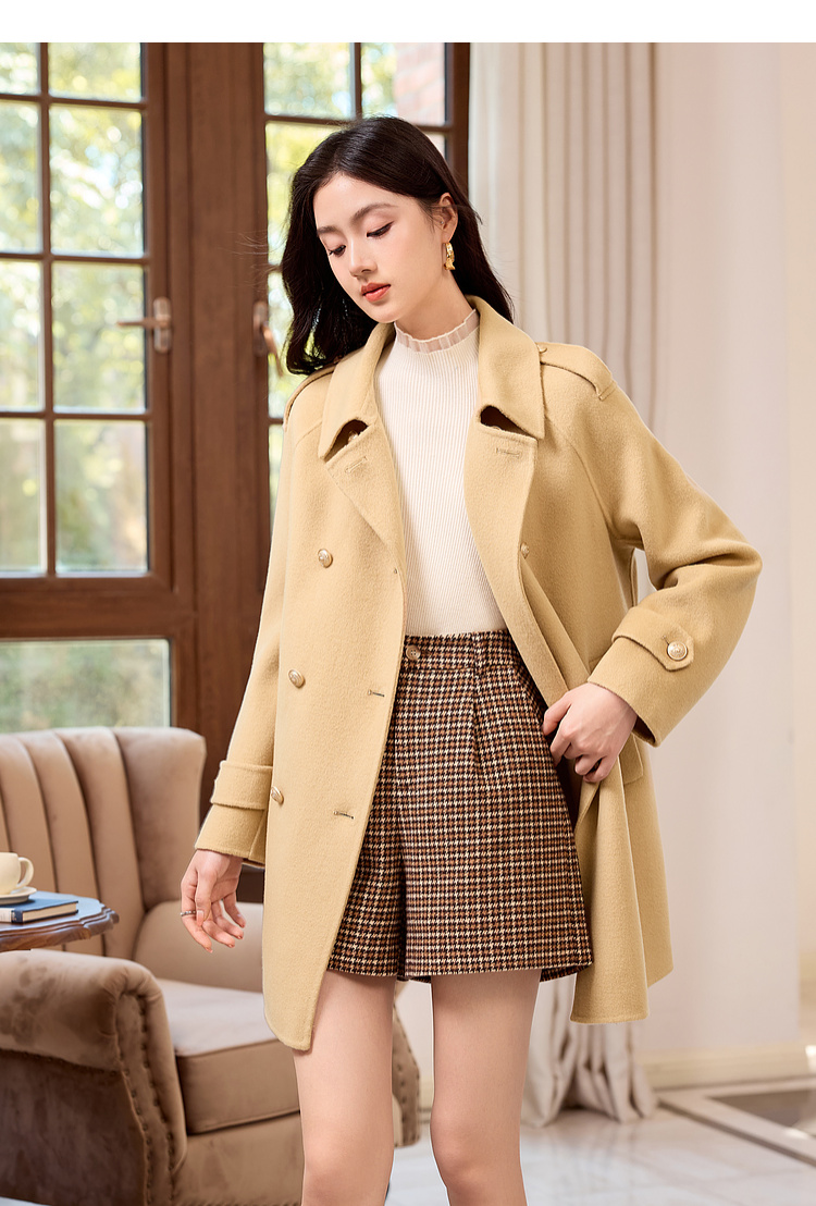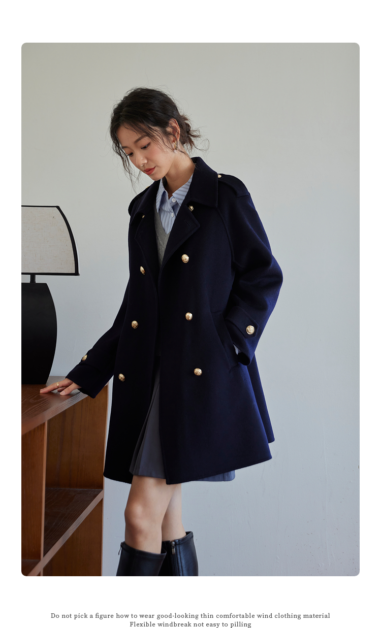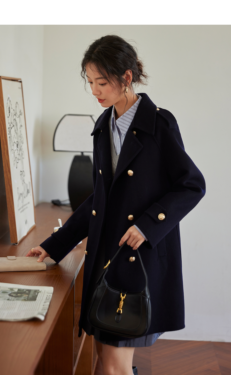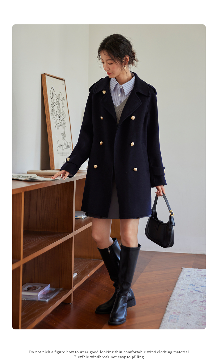 【五折购】熙世界学院风双面呢大衣中长款2025冬季新款红色全羊毛呢子外套