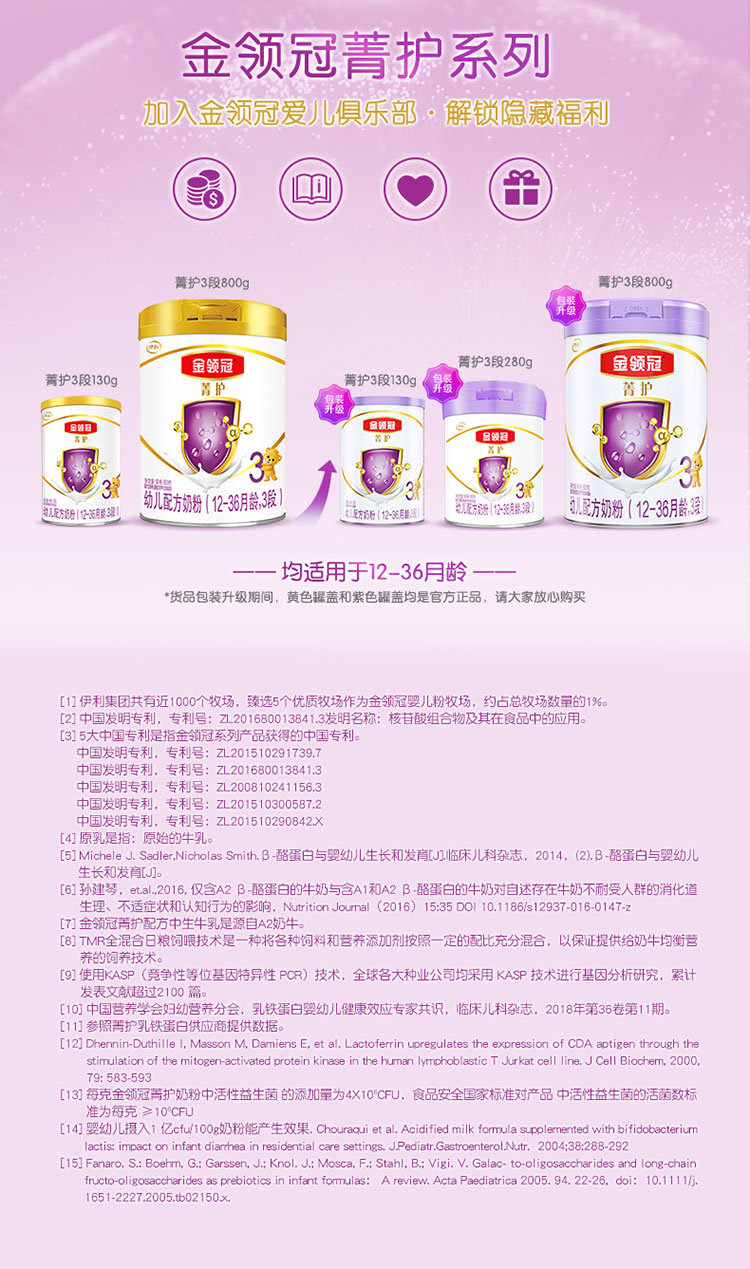金领冠菁护幼儿配方奶粉(听装)1×6×800g(新升级)