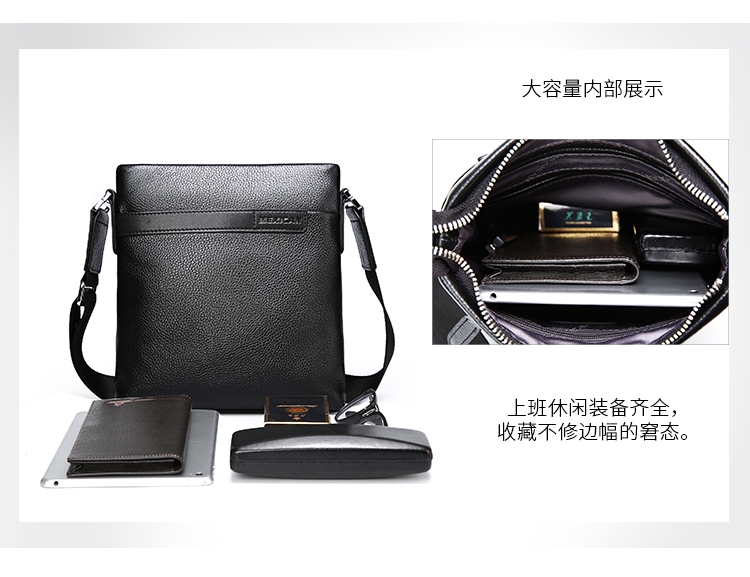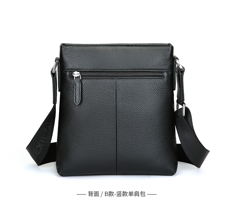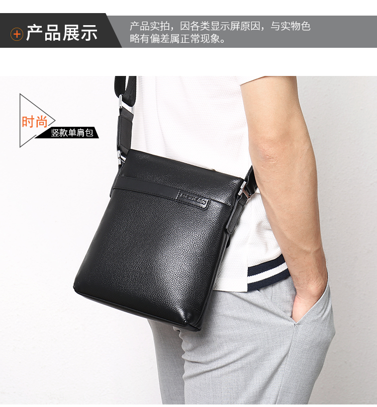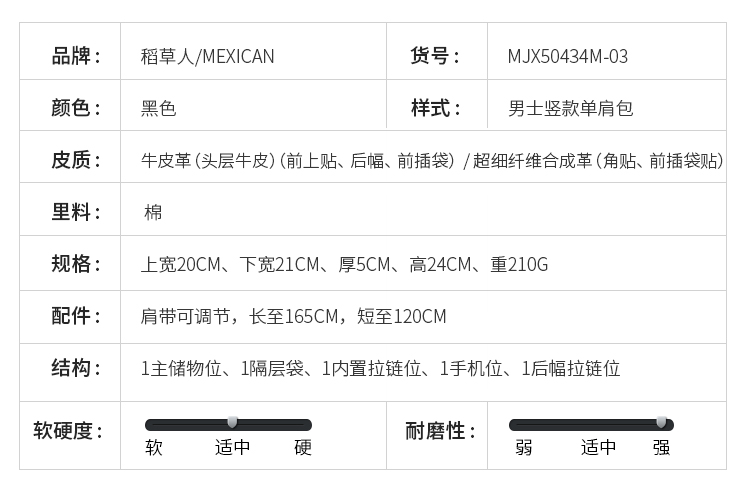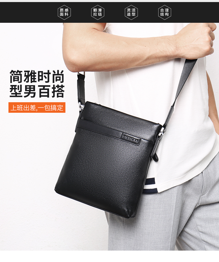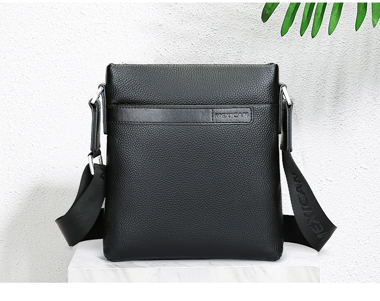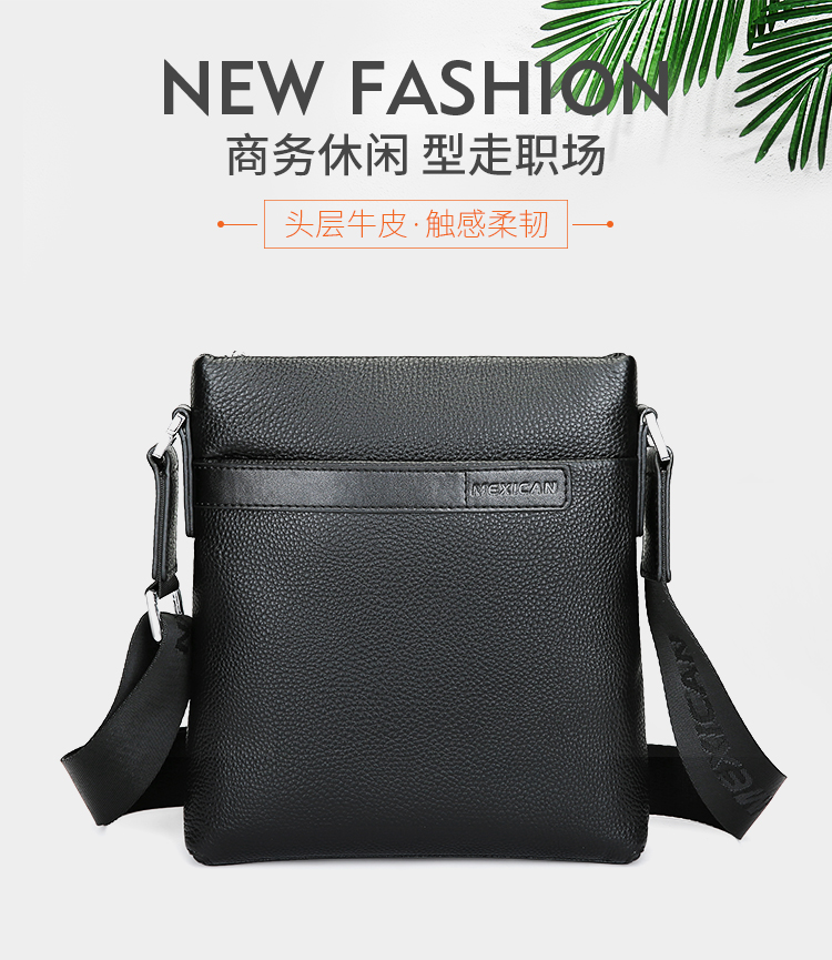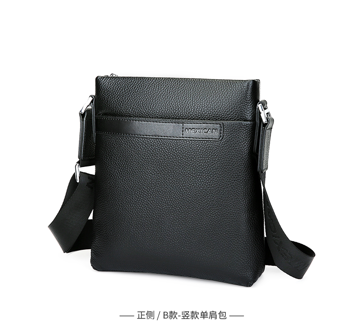 稻草人MEXICAN男士头层牛皮包包 时尚商务男包竖款单肩包男士斜挎包MJX50434M-03930黑色