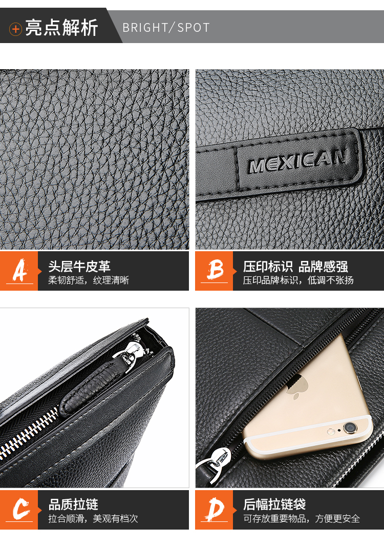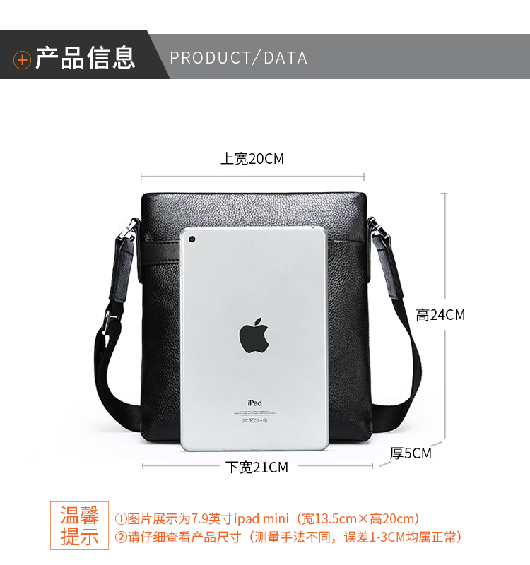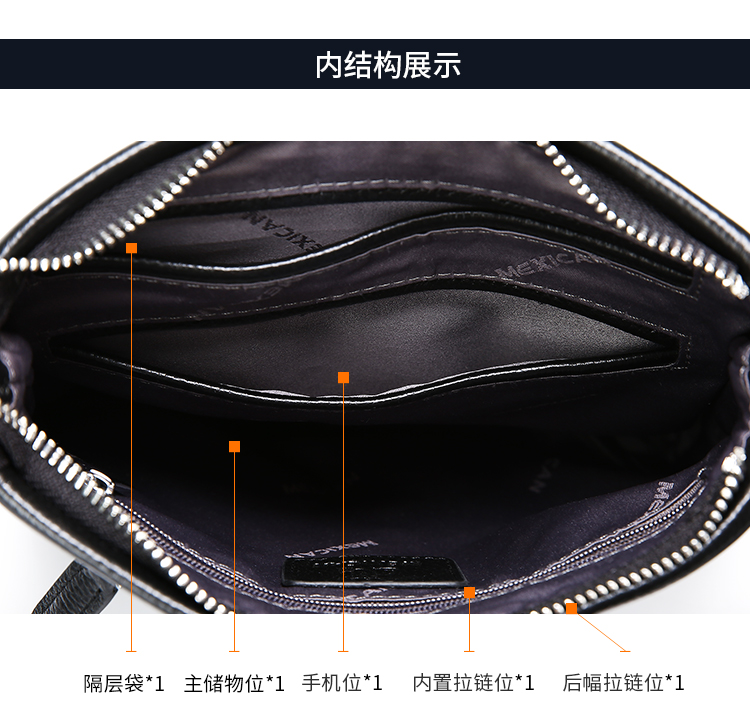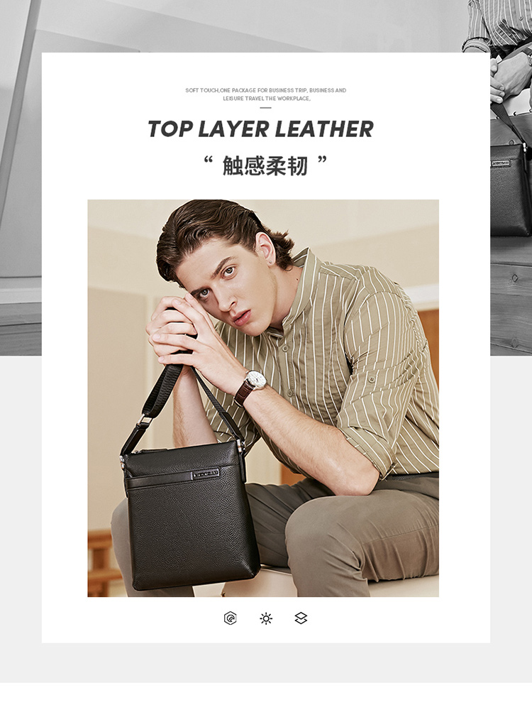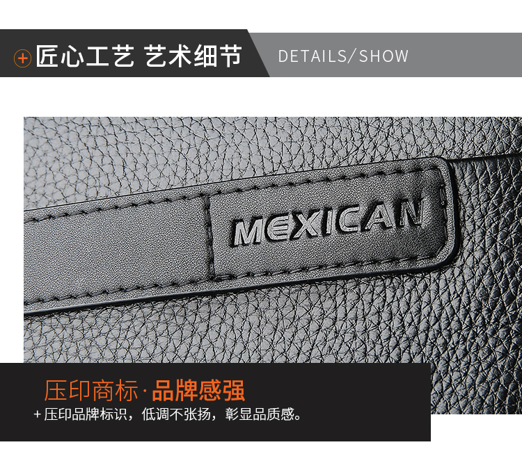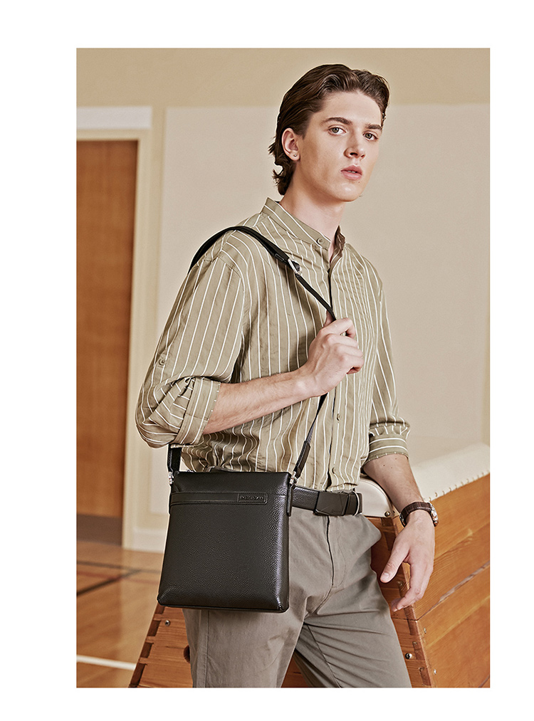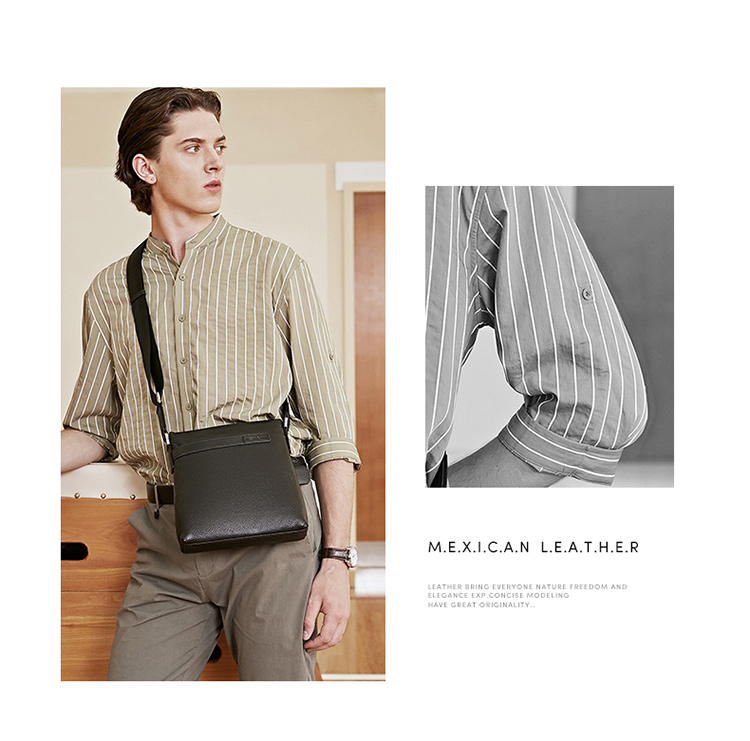 稻草人MEXICAN男士头层牛皮包包 时尚商务男包竖款单肩包男士斜挎包MJX50434M-03930黑色
