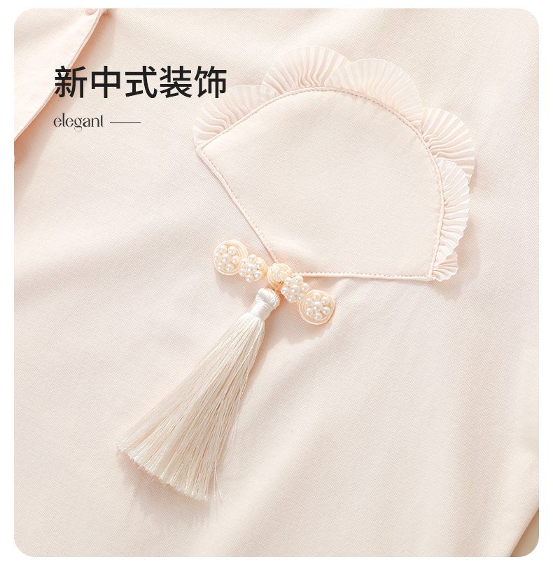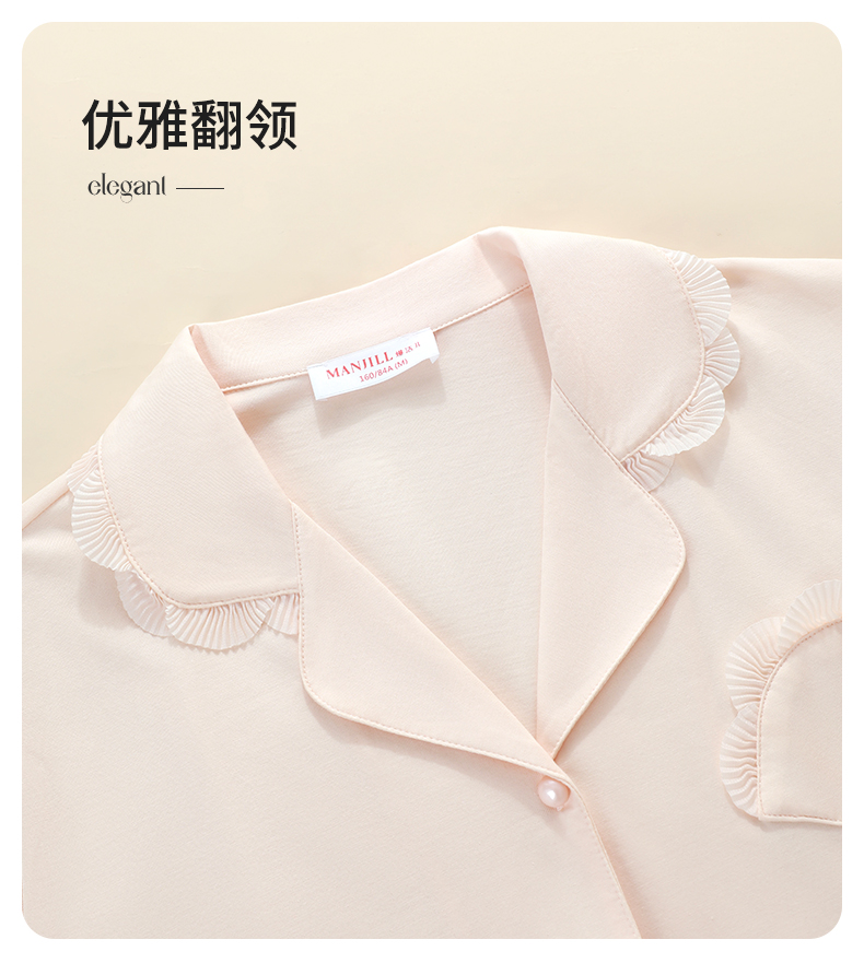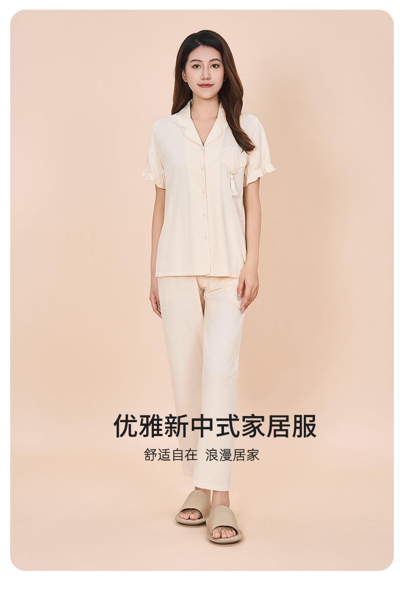 【商场同款】熳洁儿 新中式女士家居服棉莱卡开衫短袖长裤套装荷叶边袖口24203229