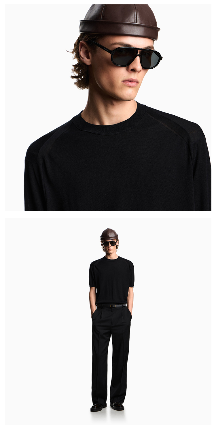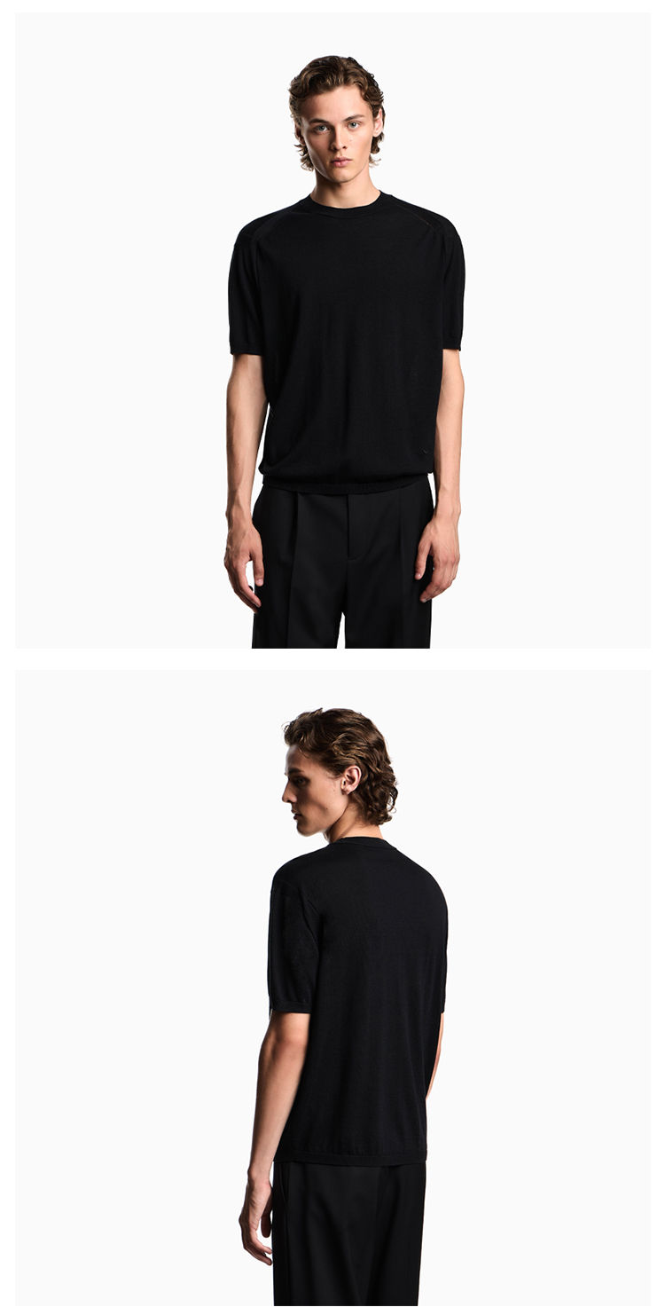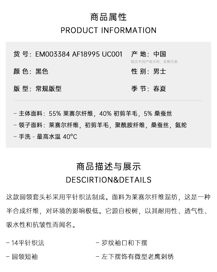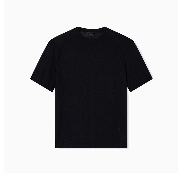 EMPORIO ARMANI 阿玛尼 男士羊毛混纺 ASV 平针织圆领短袖T恤 黑色 EM003384 AF18995 UC001