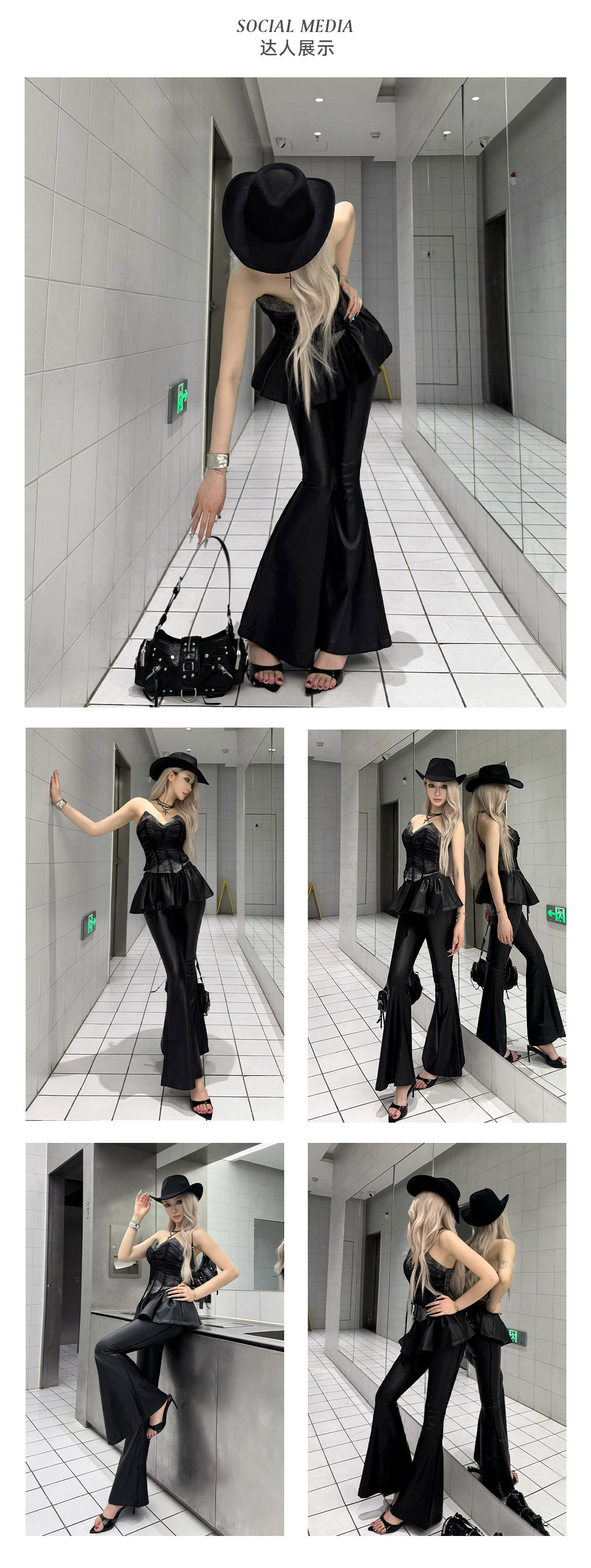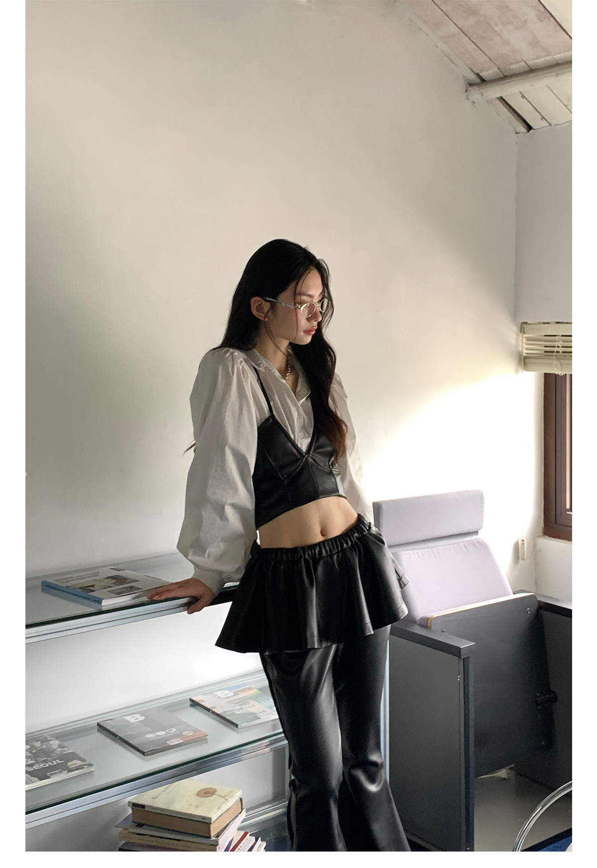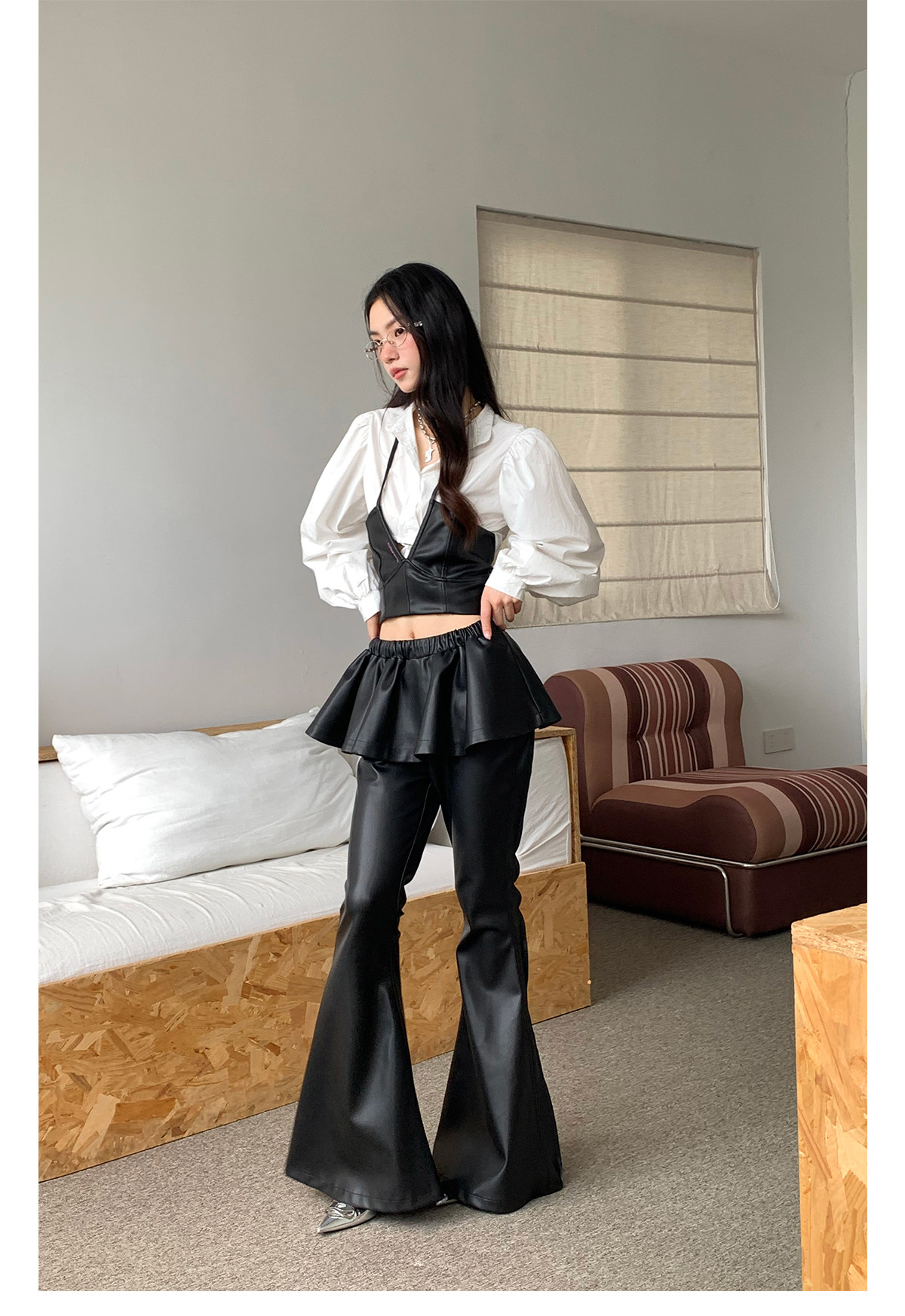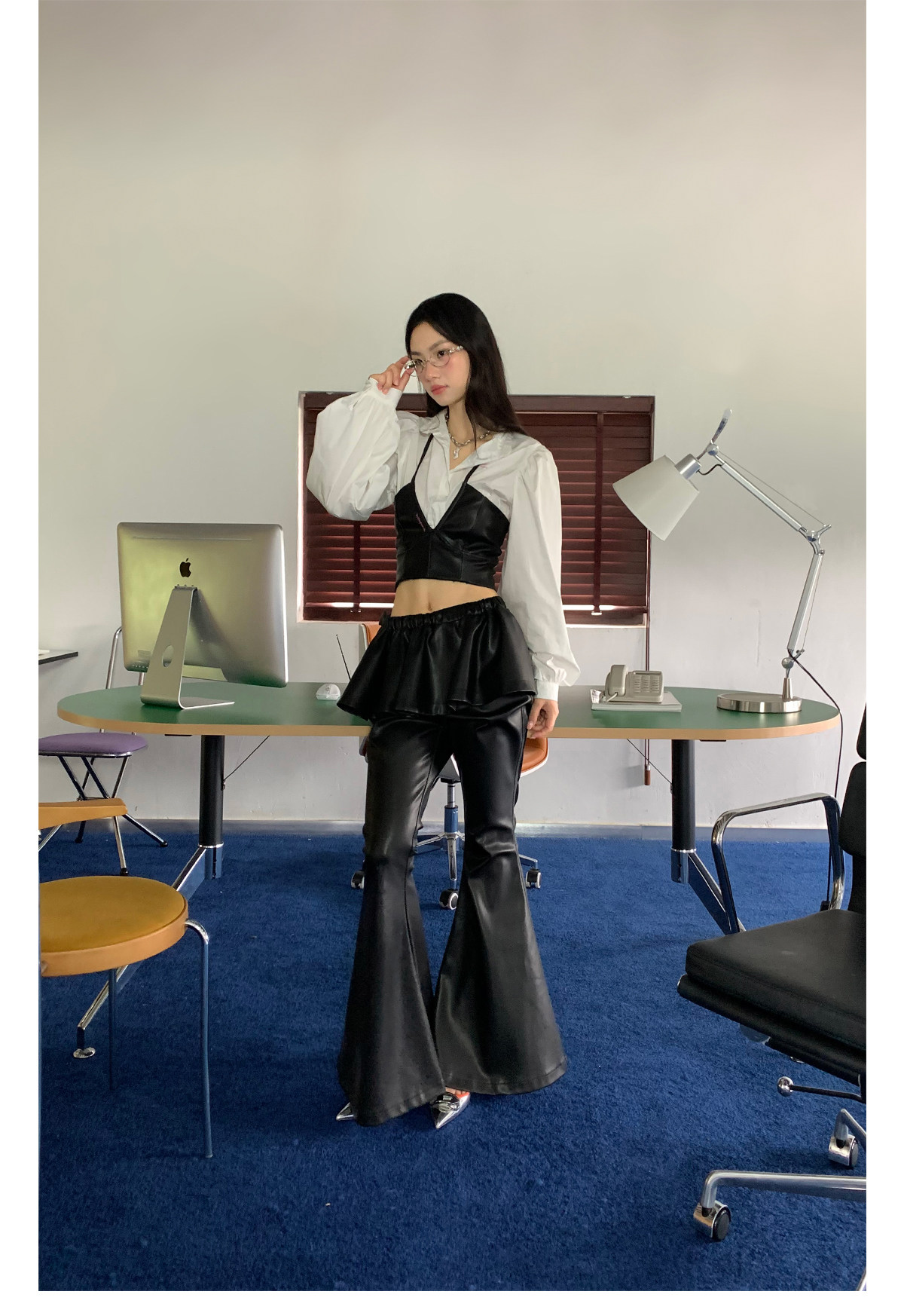 FTT FlyTheTruth『溏心黑巧』 设计感PU皮荷叶裙裤秋休闲喇叭裤