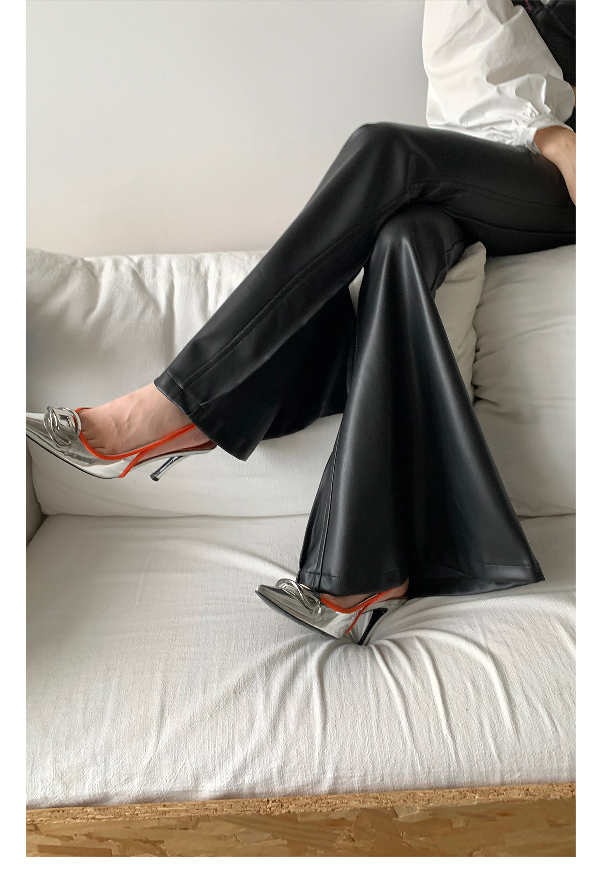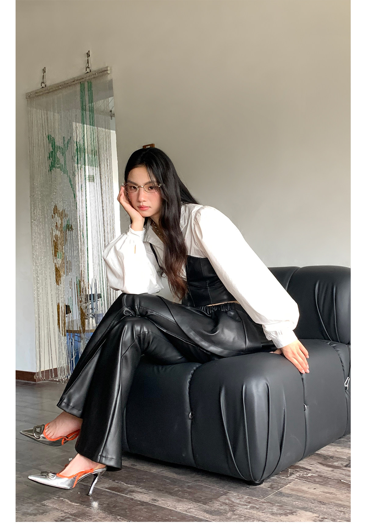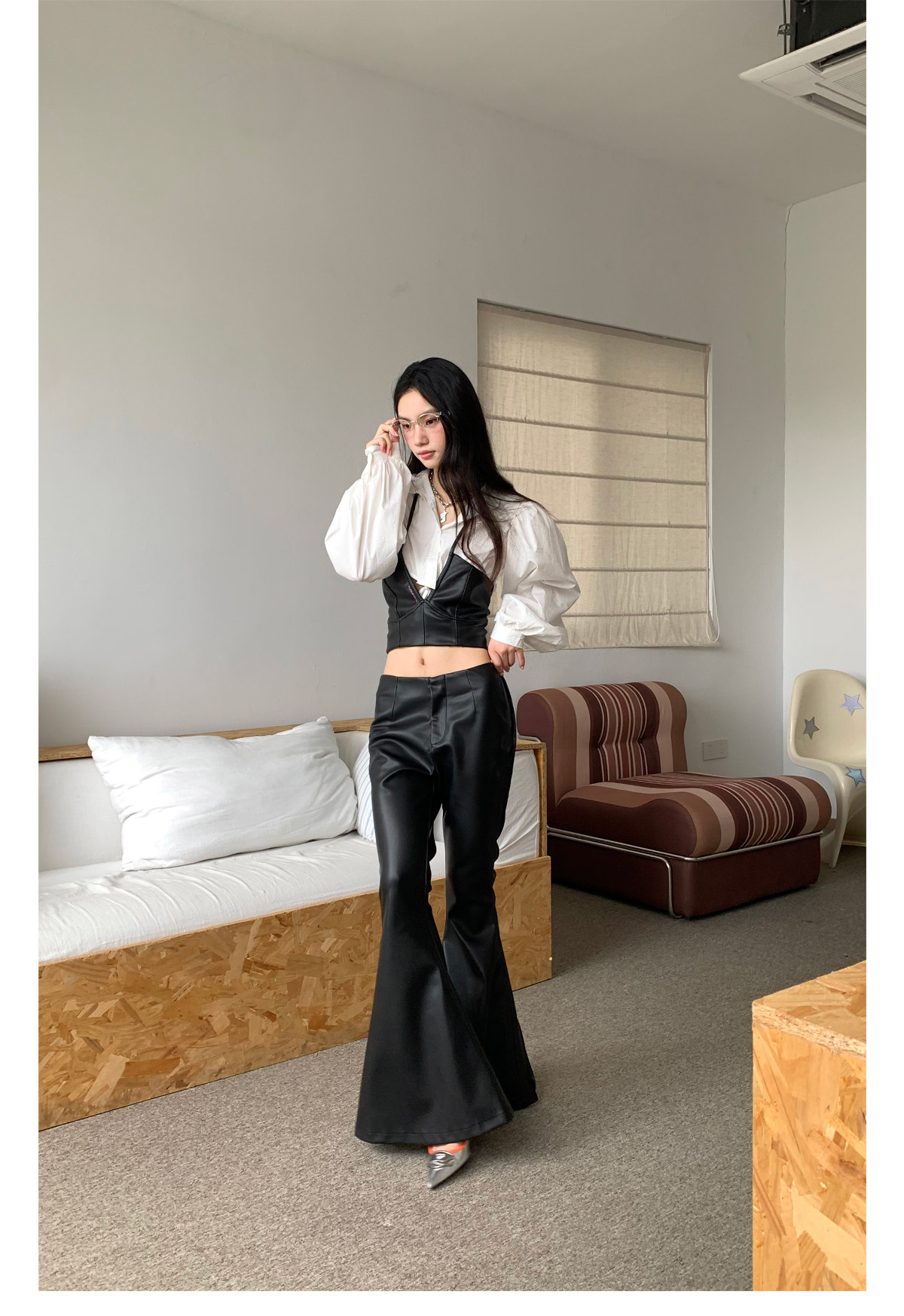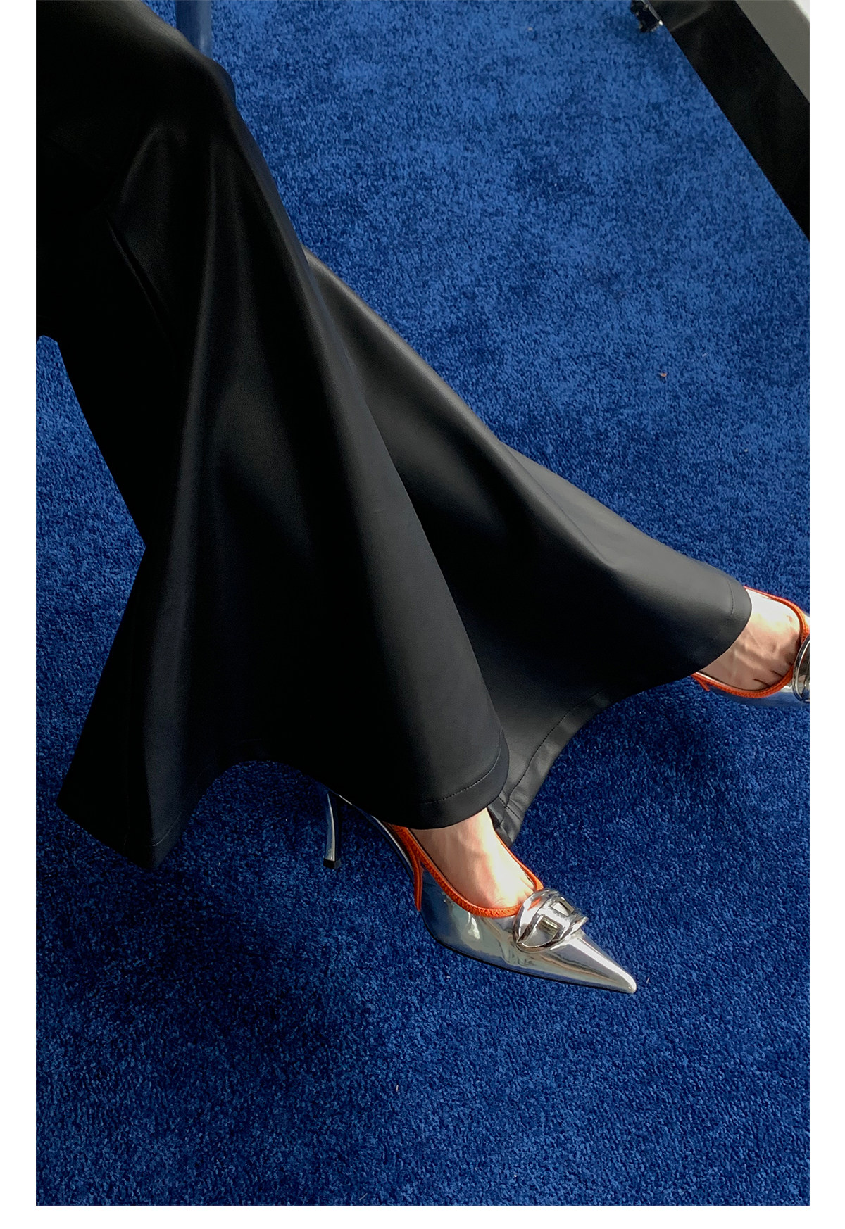 FTT FlyTheTruth『溏心黑巧』 设计感PU皮荷叶裙裤秋休闲喇叭裤