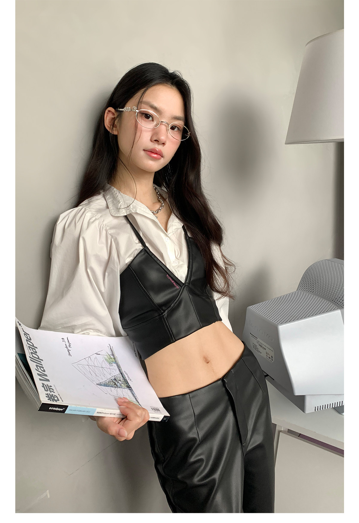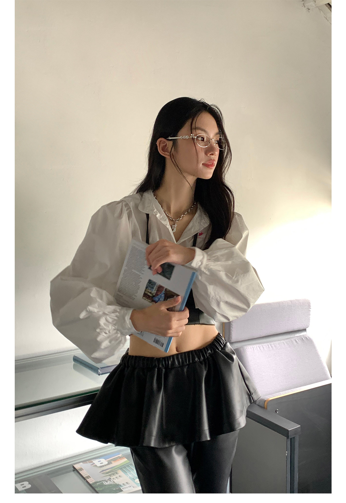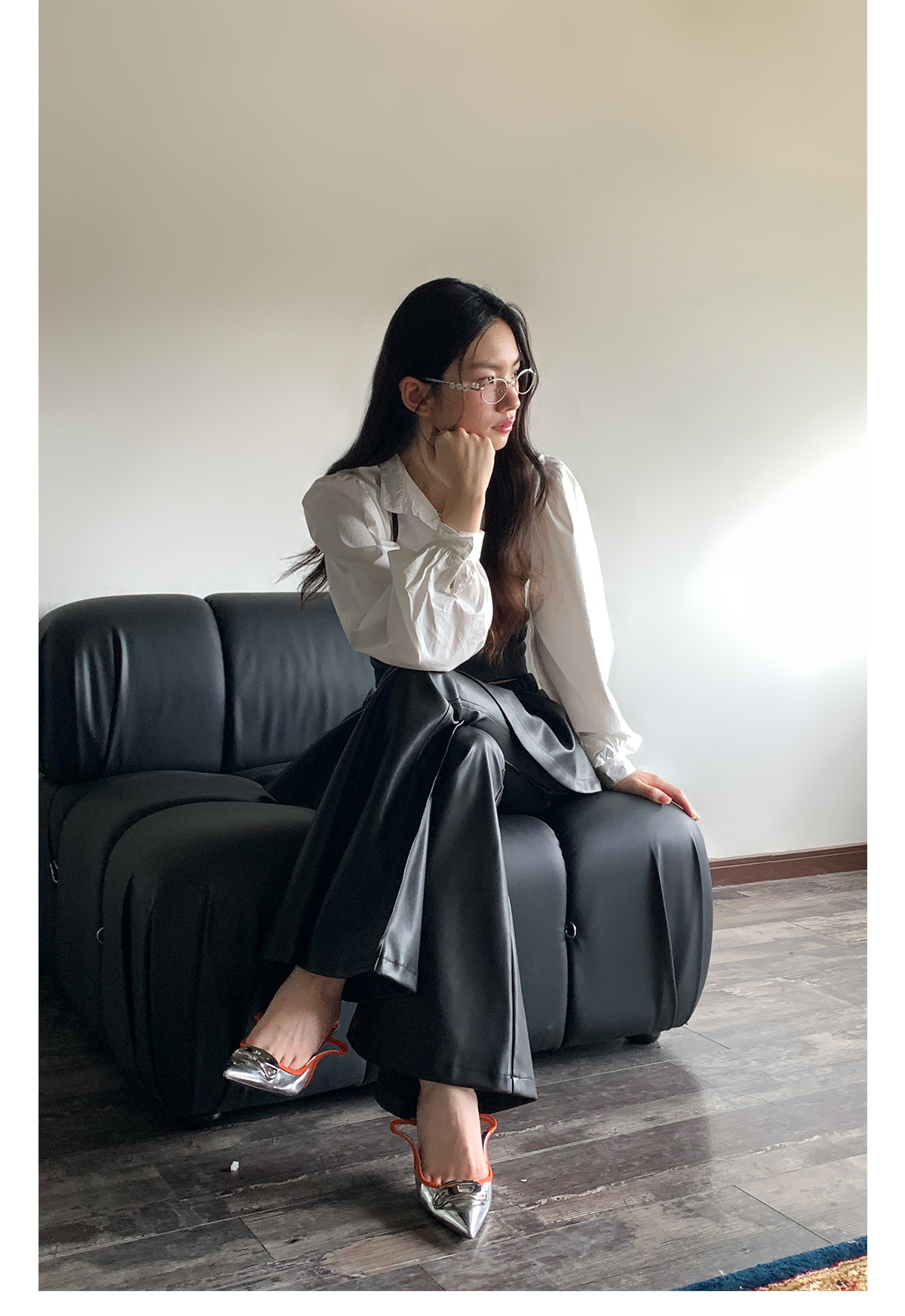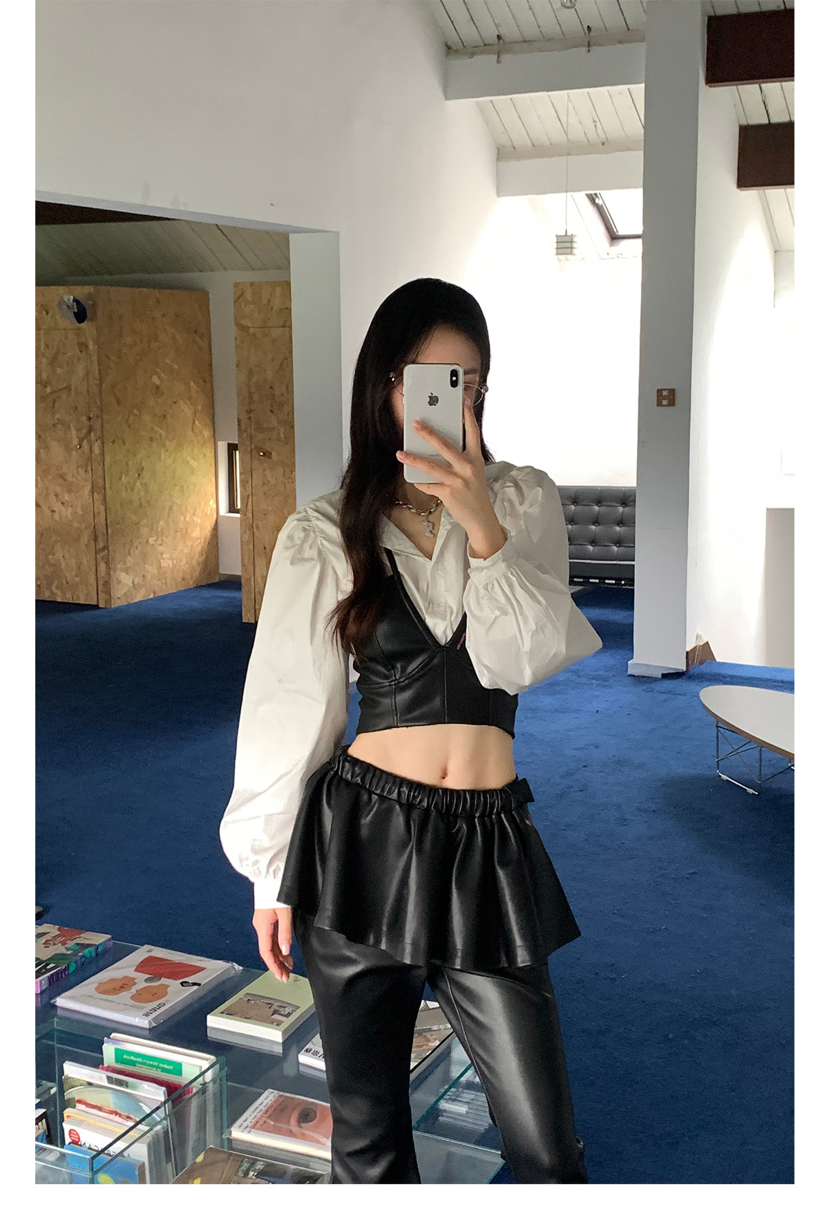 FTT FlyTheTruth『溏心黑巧』 设计感PU皮荷叶裙裤秋休闲喇叭裤