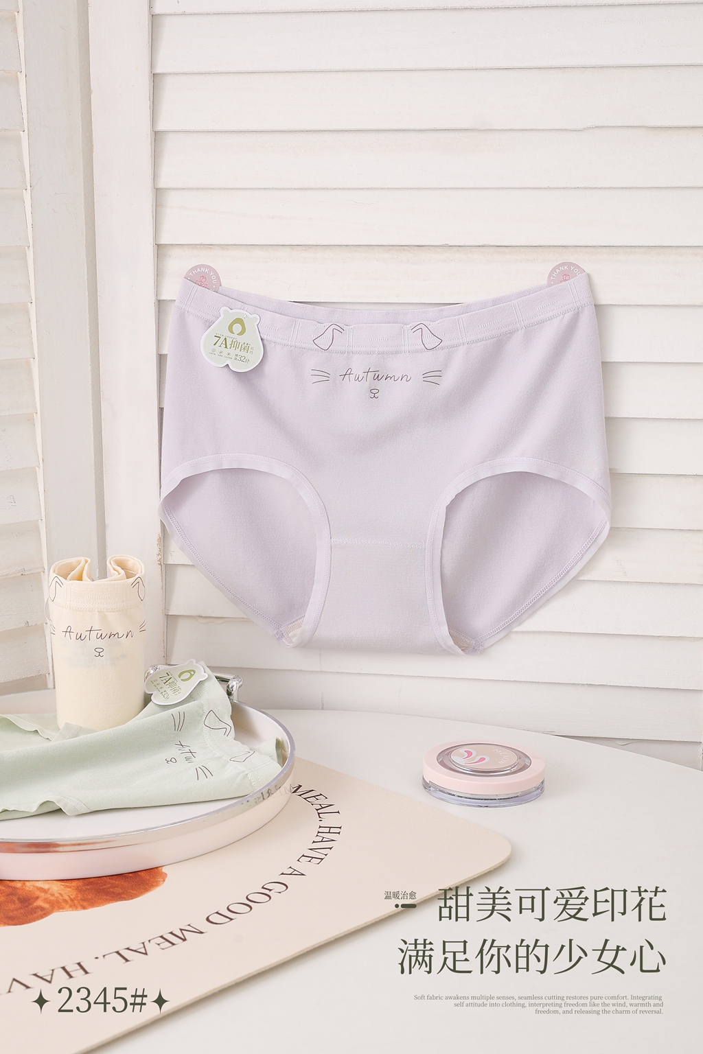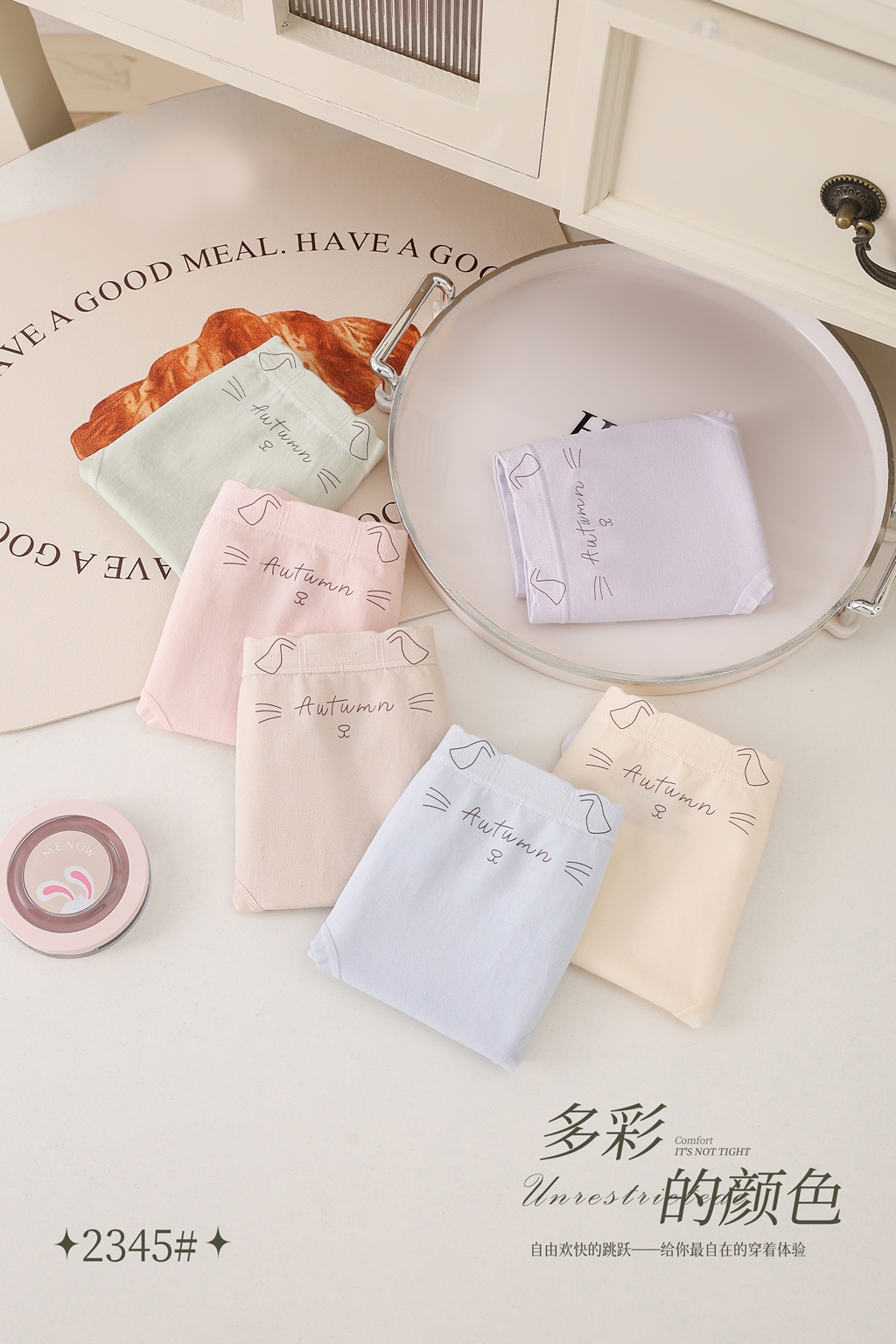 女士小猫印花卡通无缝内裤2345