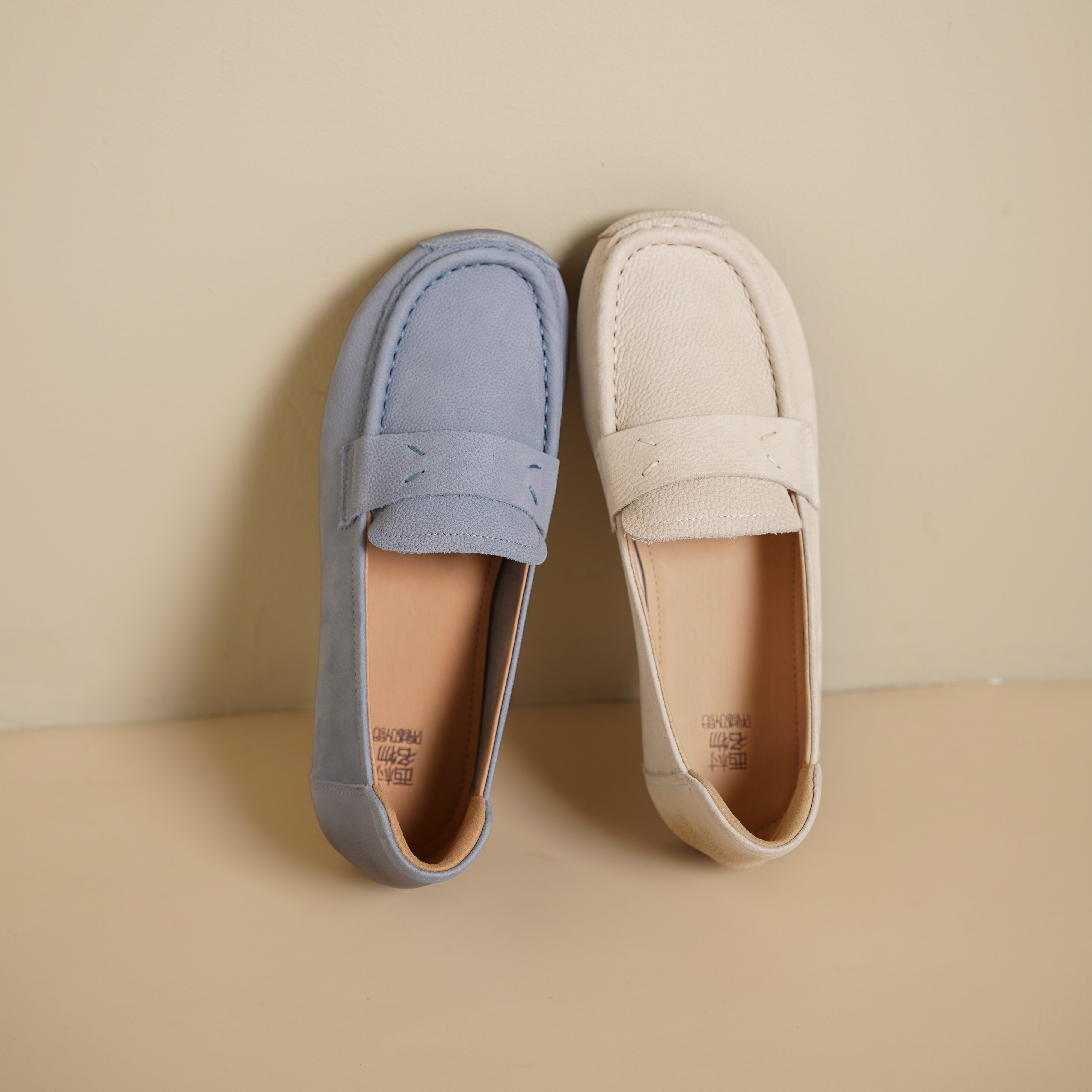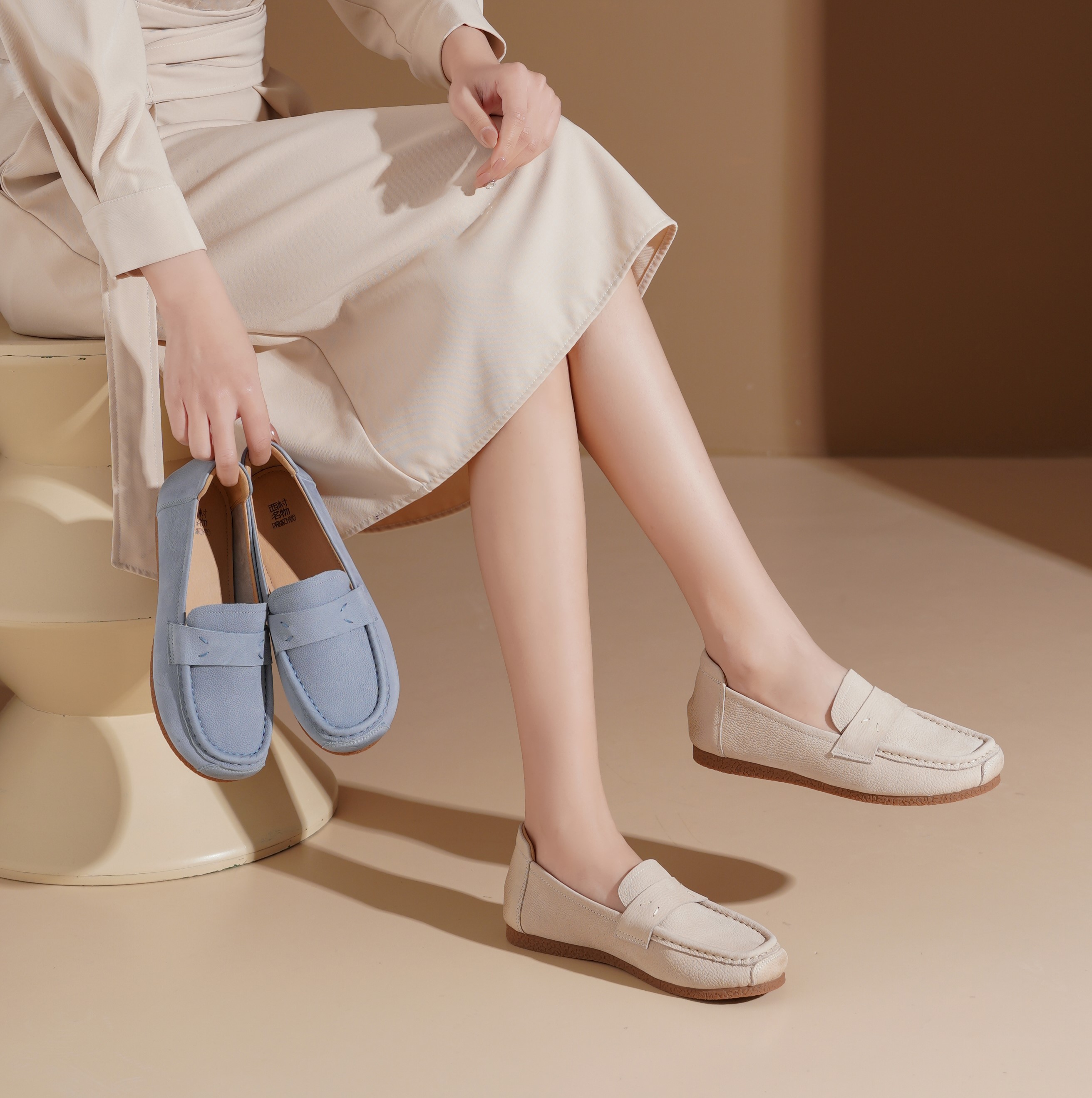西村名物2025年春季新款小圆头低平跟舒适浅口单鞋豆豆鞋X25AM14561