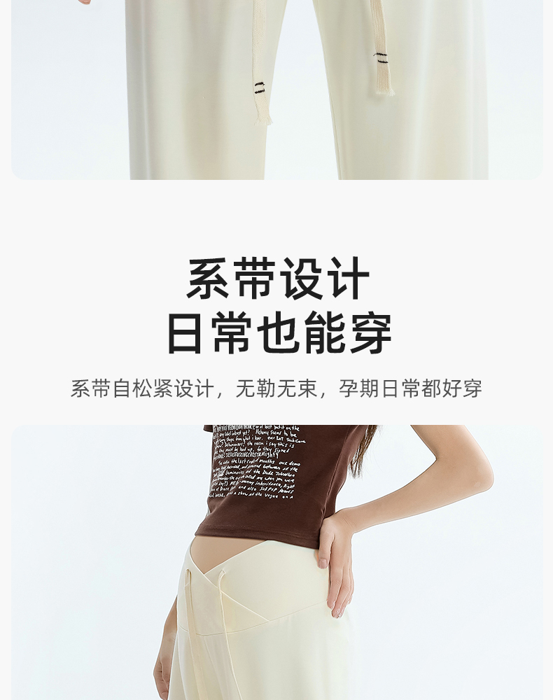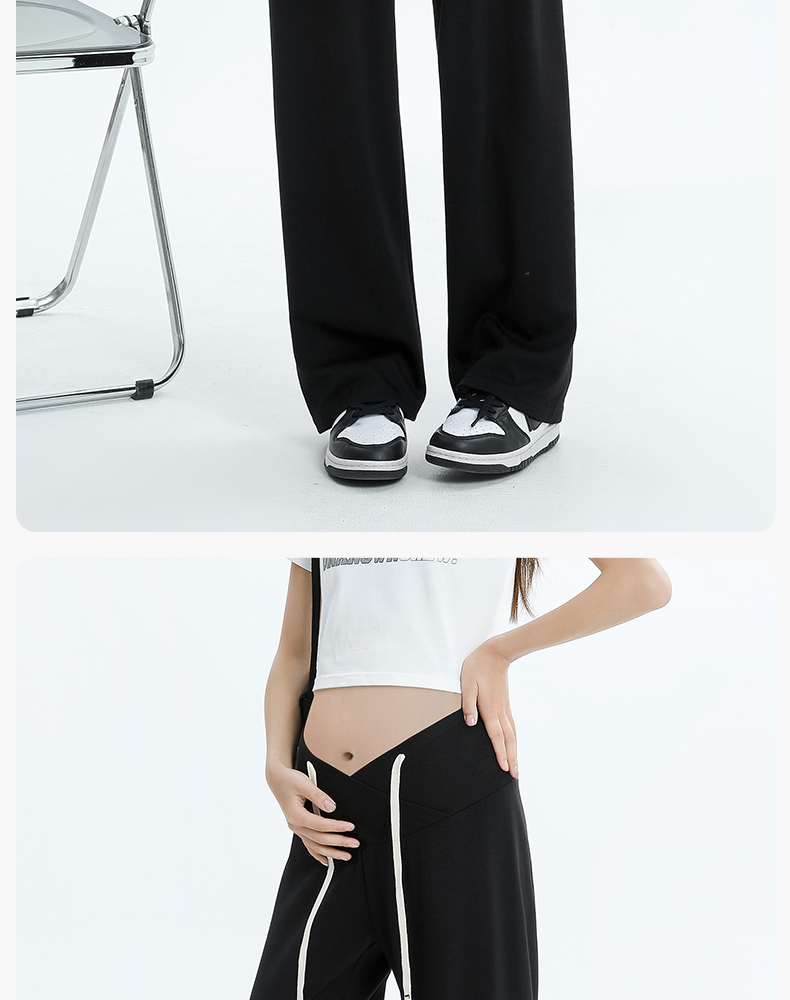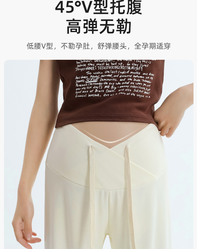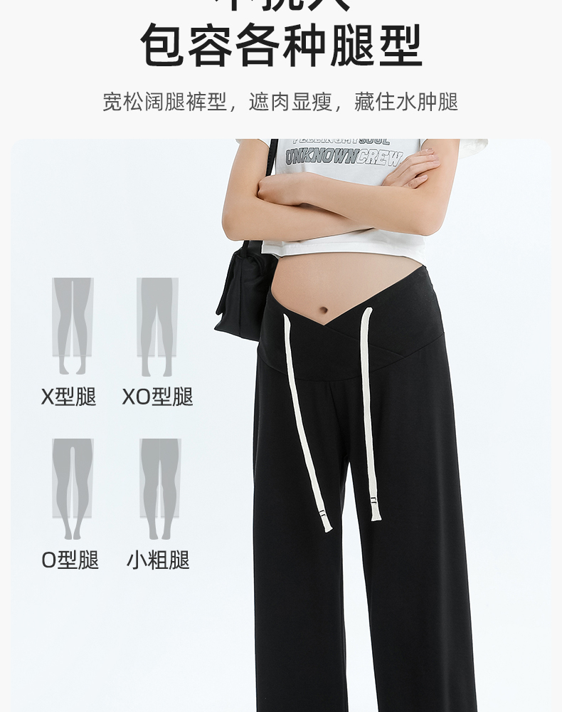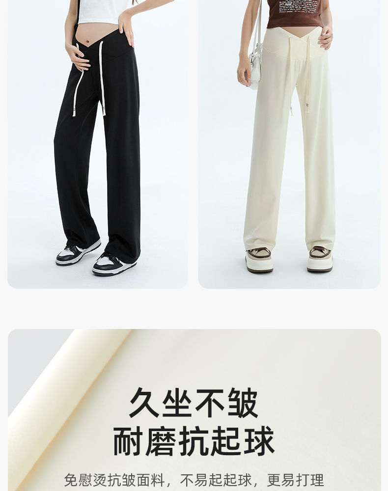 孕妇裤外穿V型叉腰小个子抽绳直筒阔腿裤夏季薄款孕早期