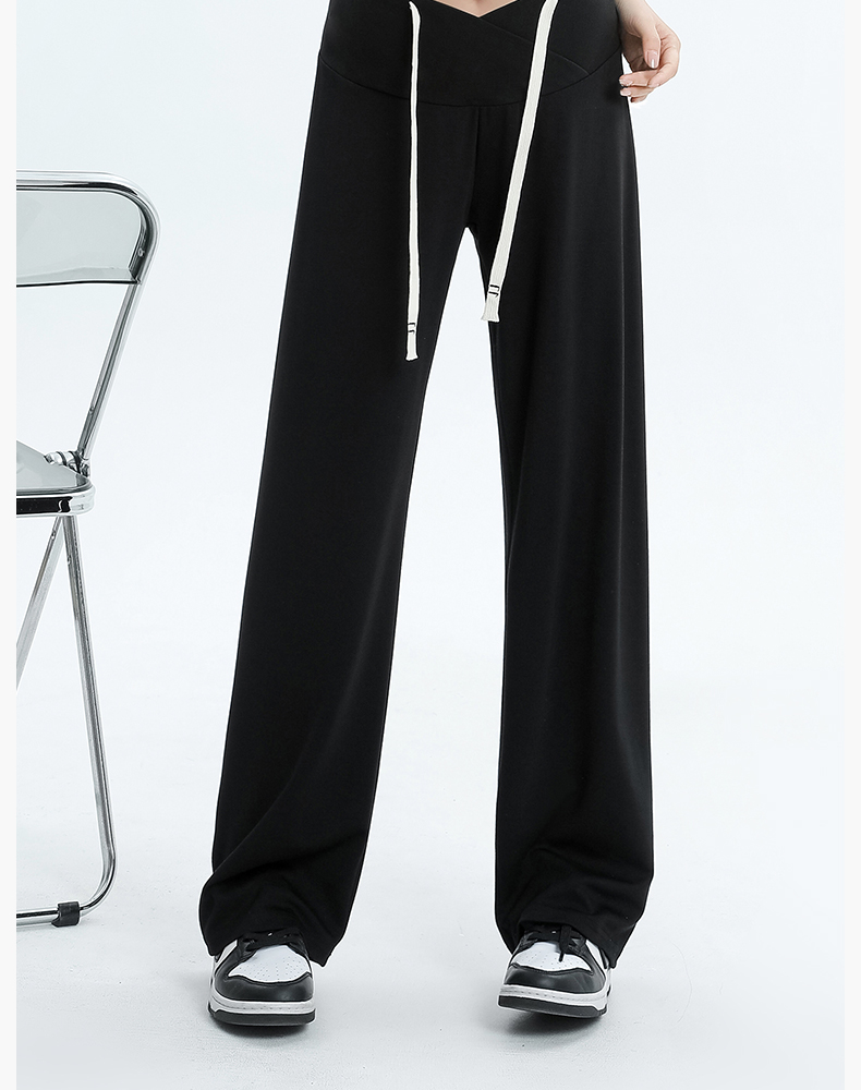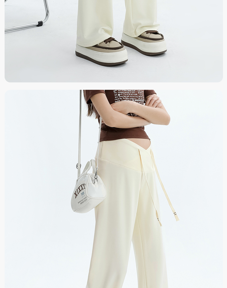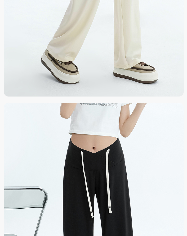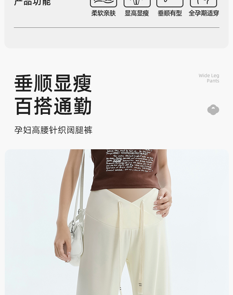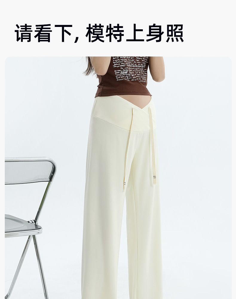 孕妇裤外穿V型叉腰小个子抽绳直筒阔腿裤夏季薄款孕早期