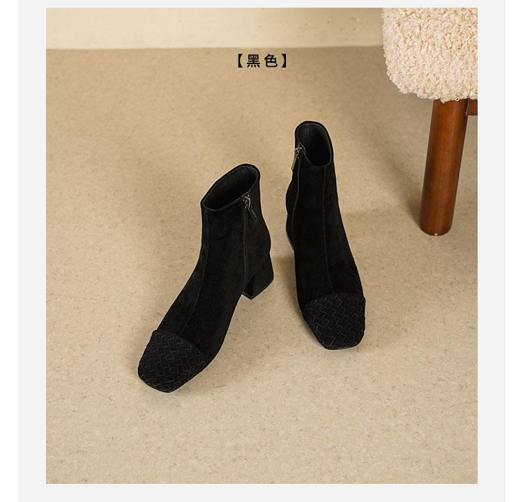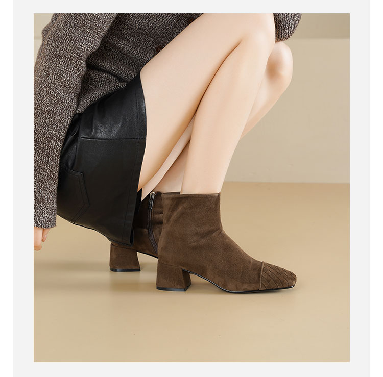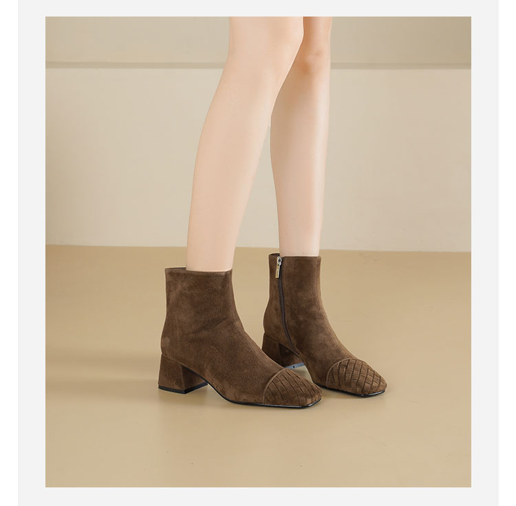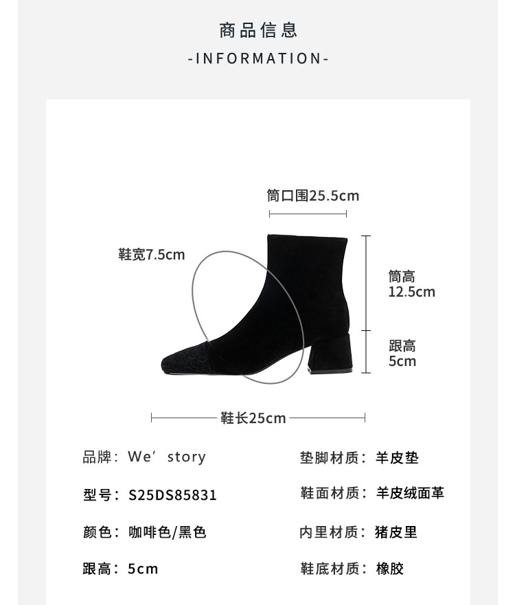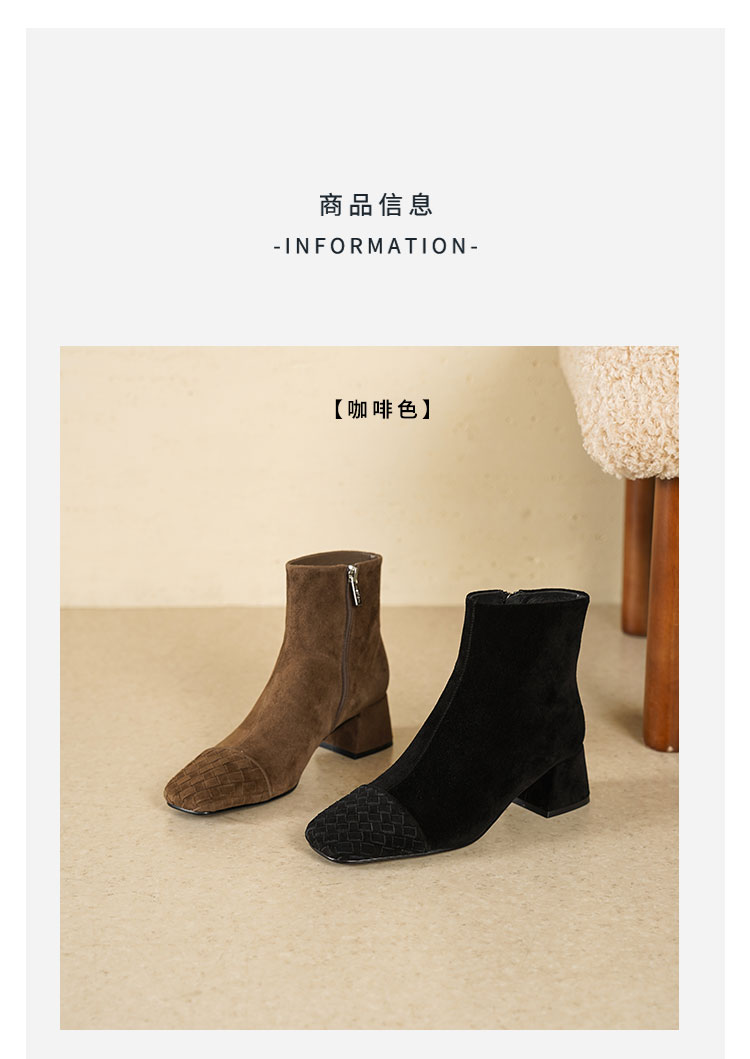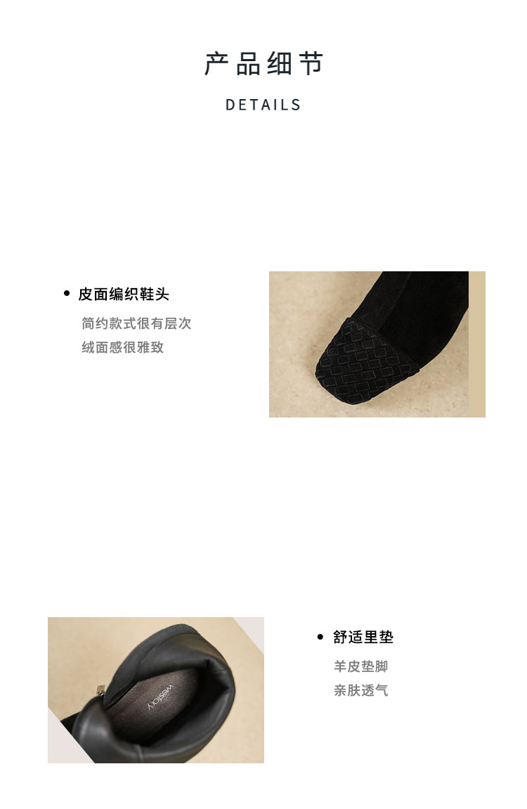 Westory2025年冬季羊京编织方头中跟百搭老钱风短靴S25DS85831