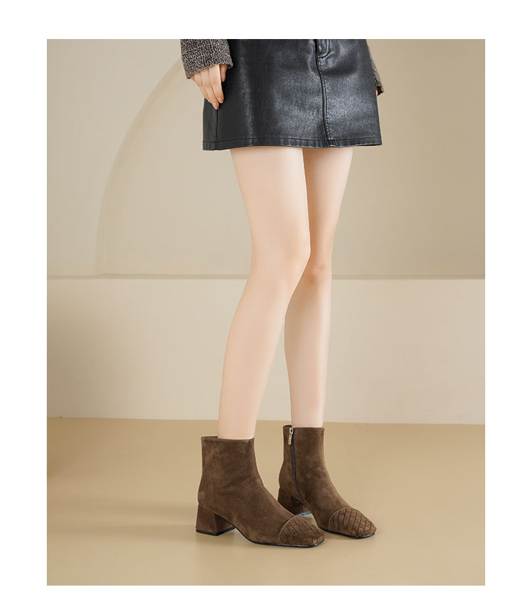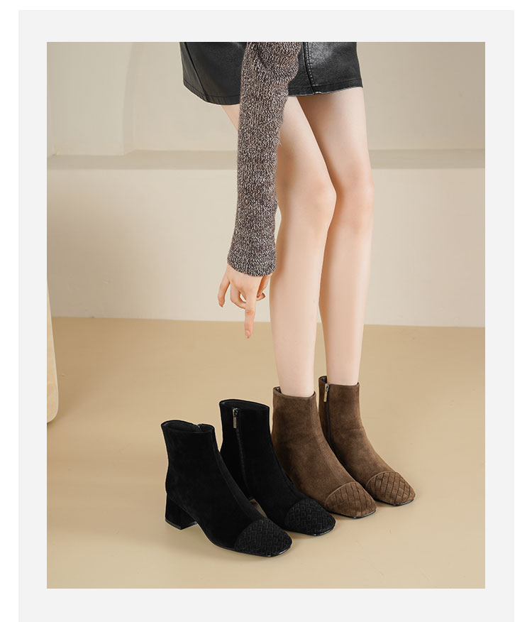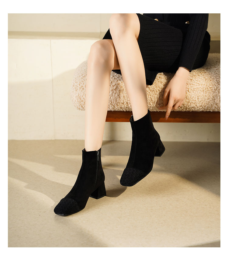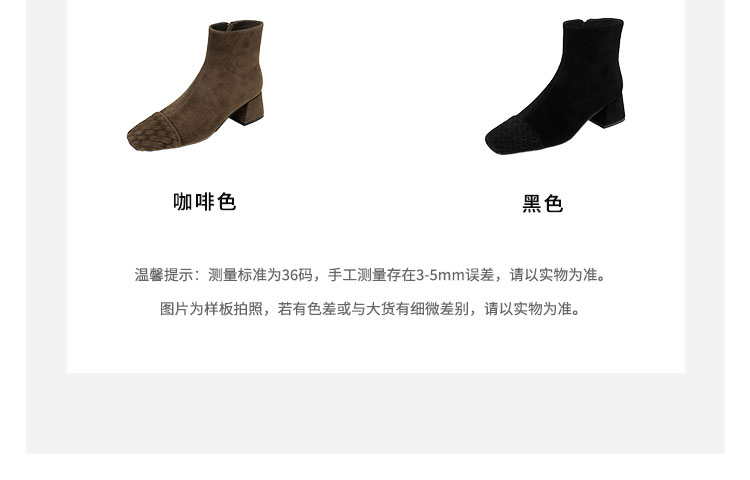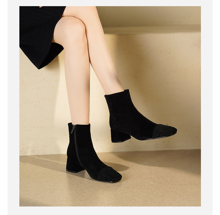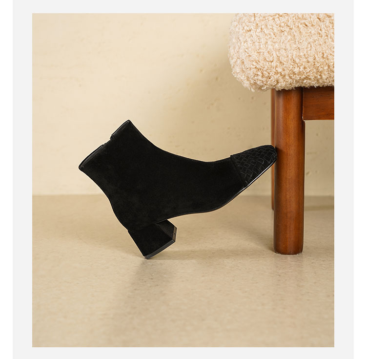 Westory2025年冬季羊京编织方头中跟百搭老钱风短靴S25DS85831