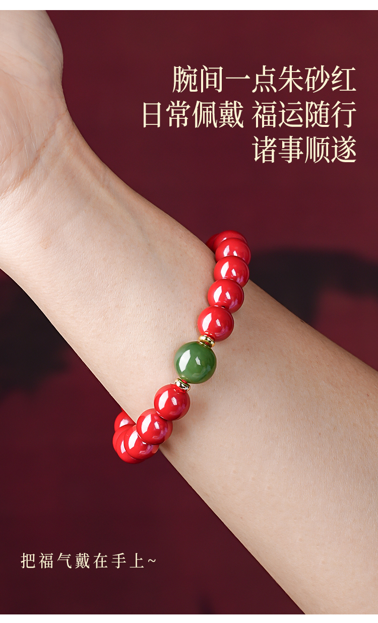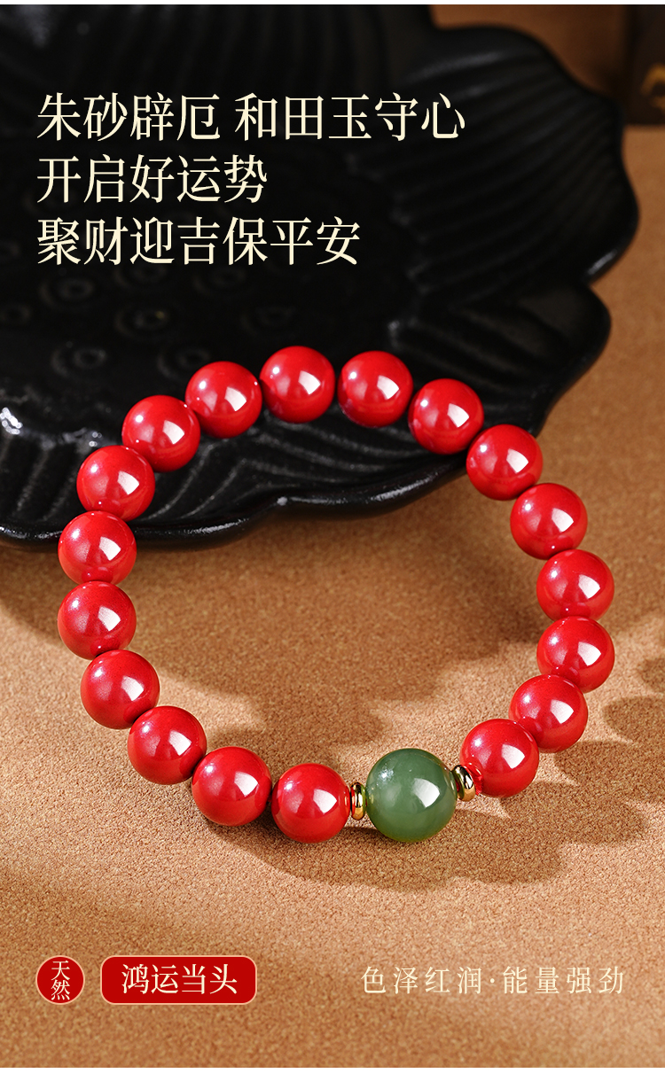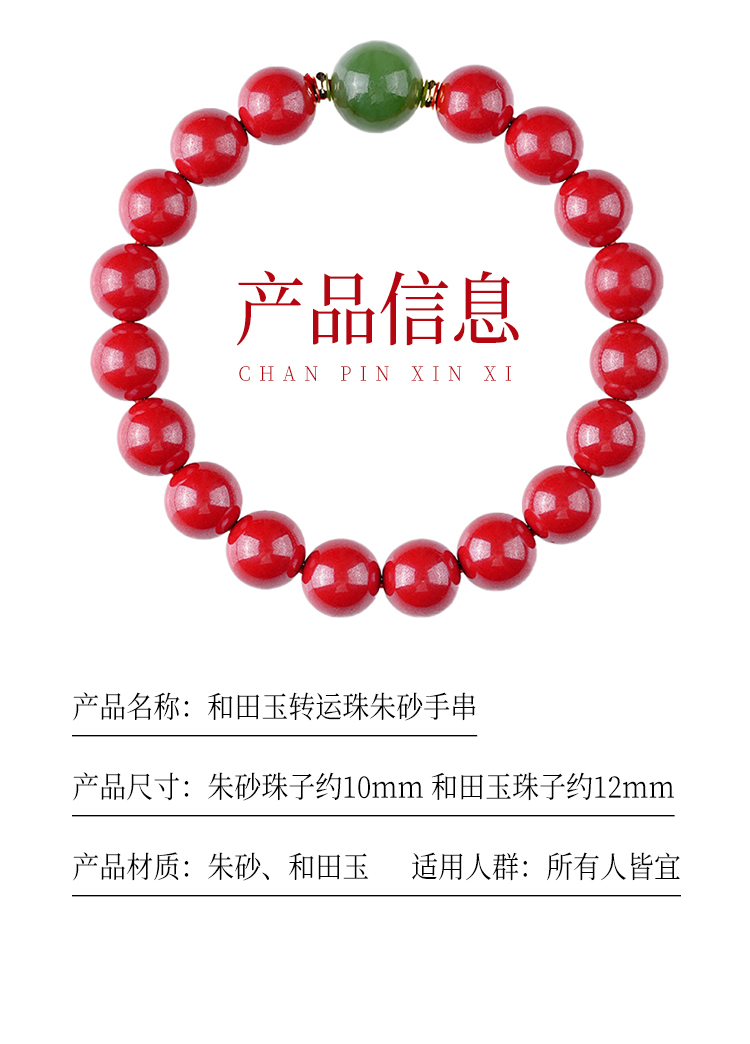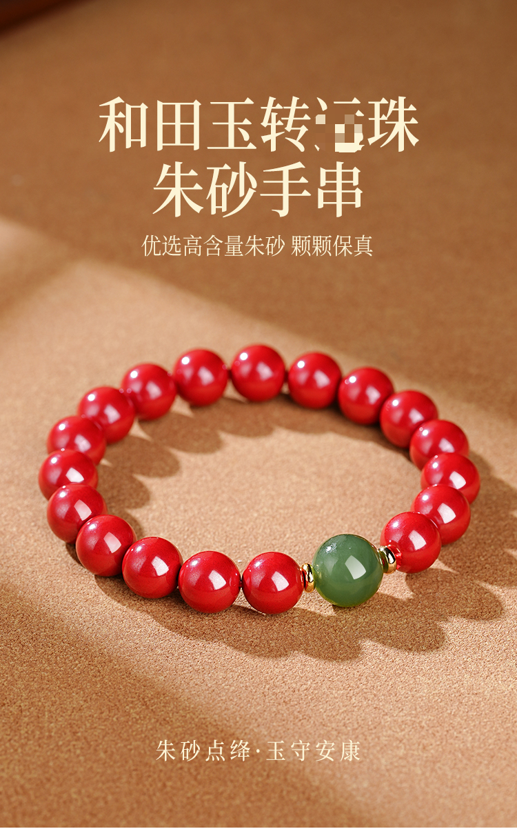 天然朱砂和田玉手串转yun珠手链本命手串饰品