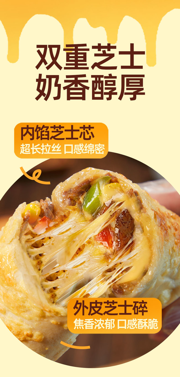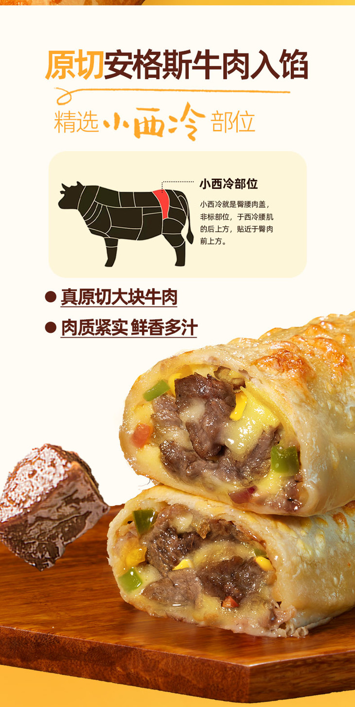 轻咬一口,看得见的芝士拉丝,牛肉汁水和清爽的蔬菜充满口腔;