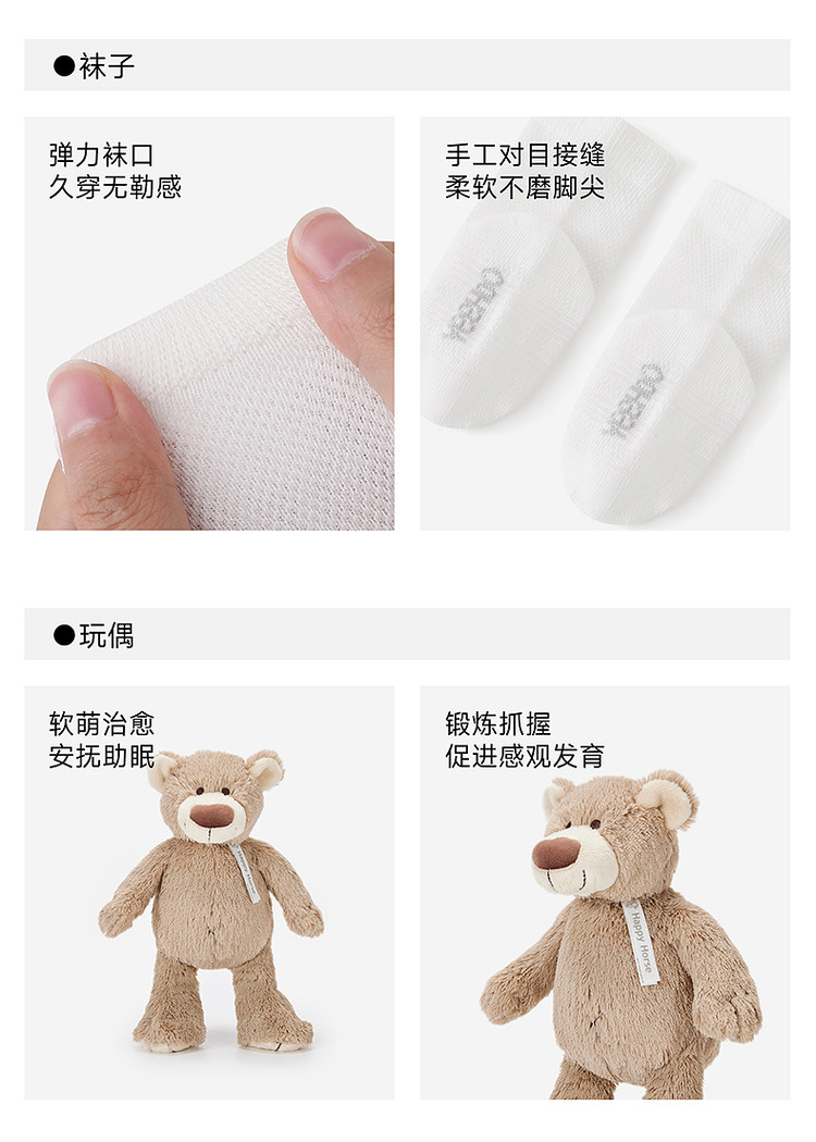 英氏新生婴儿袜子宝宝防滑袜四季薄款A级防菌3双装188A6832 188A6834