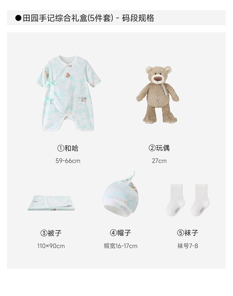 英氏婴儿礼盒新生儿见面礼春秋新款抗菌防螨满月礼物YMLAJ0S003A