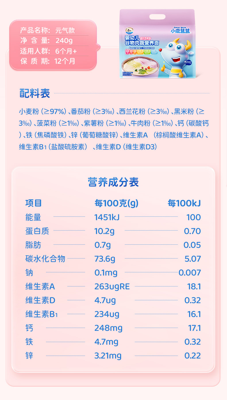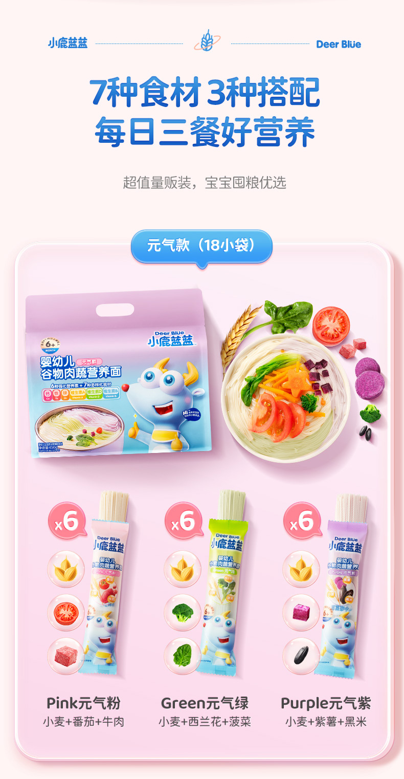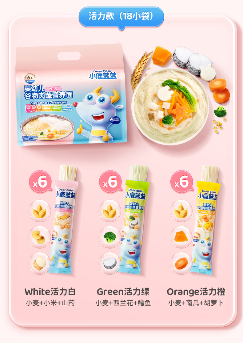 婴幼儿谷物肉蔬营养面 活力款/元气款 组合装(两大包共含36小袋)