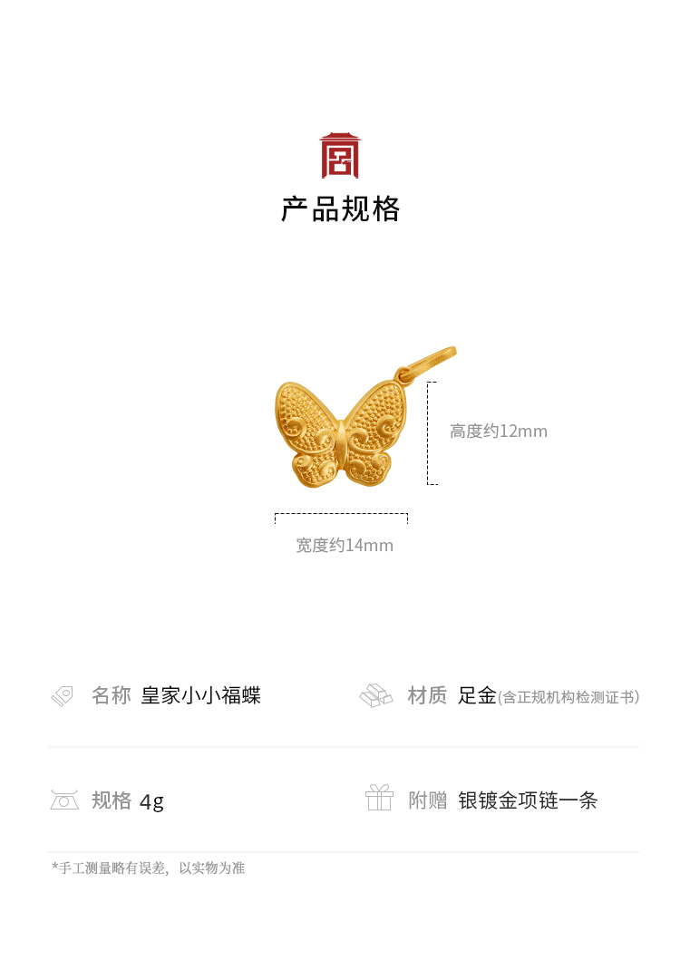 宫匠造办 皇家小小 福蝶黄金吊坠